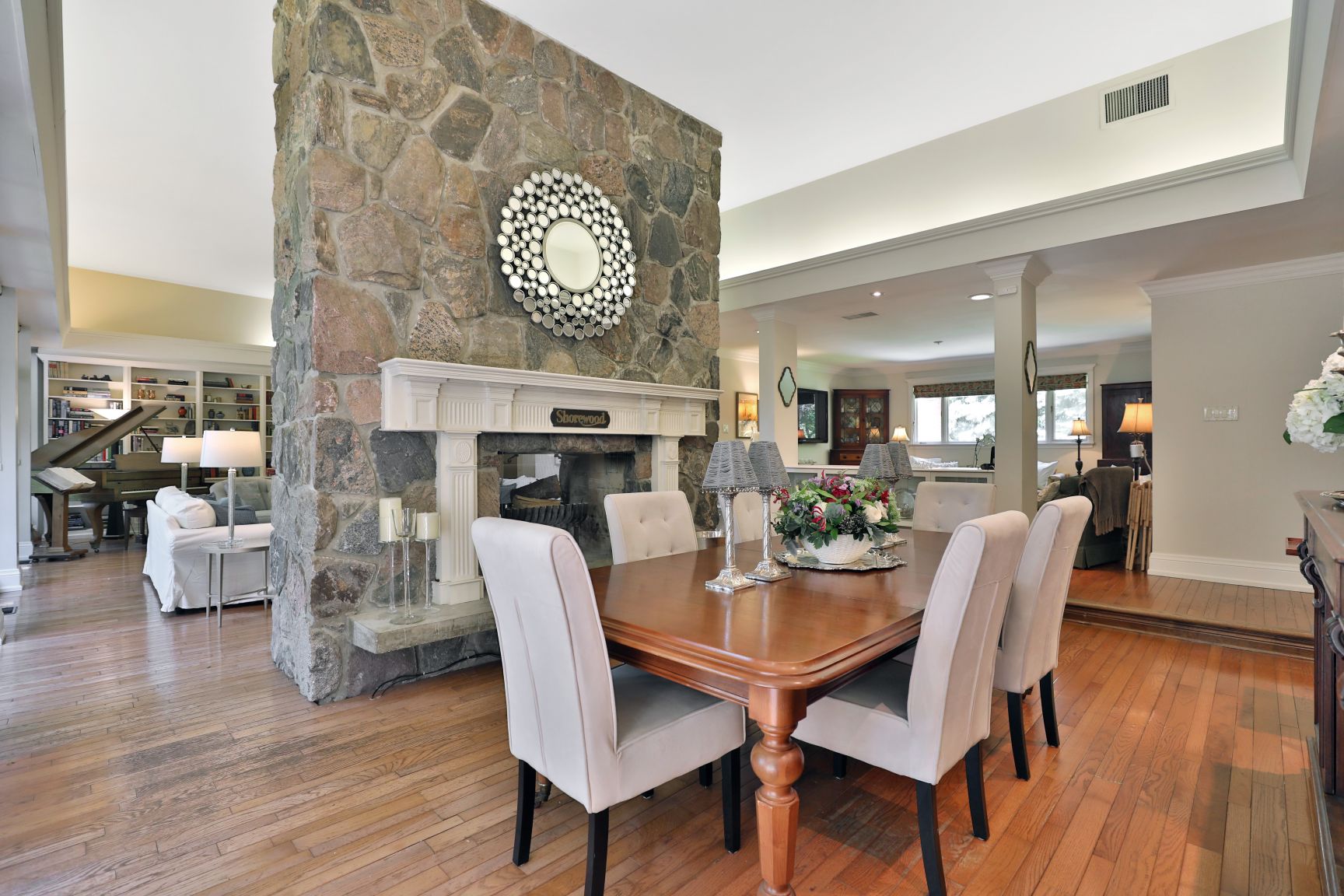 Vibrant home in The Villages of Shawnee Bend, alive with elegance, energy and excitement. Nearly 8,000 sq ft, 8 bedrooms/8 baths and the true beauty of this home which is the many different "living spots" to enjoy. Perfect for large families, multiple families, entertaining or that group that likes space and separation while still feeling connected by common elements.