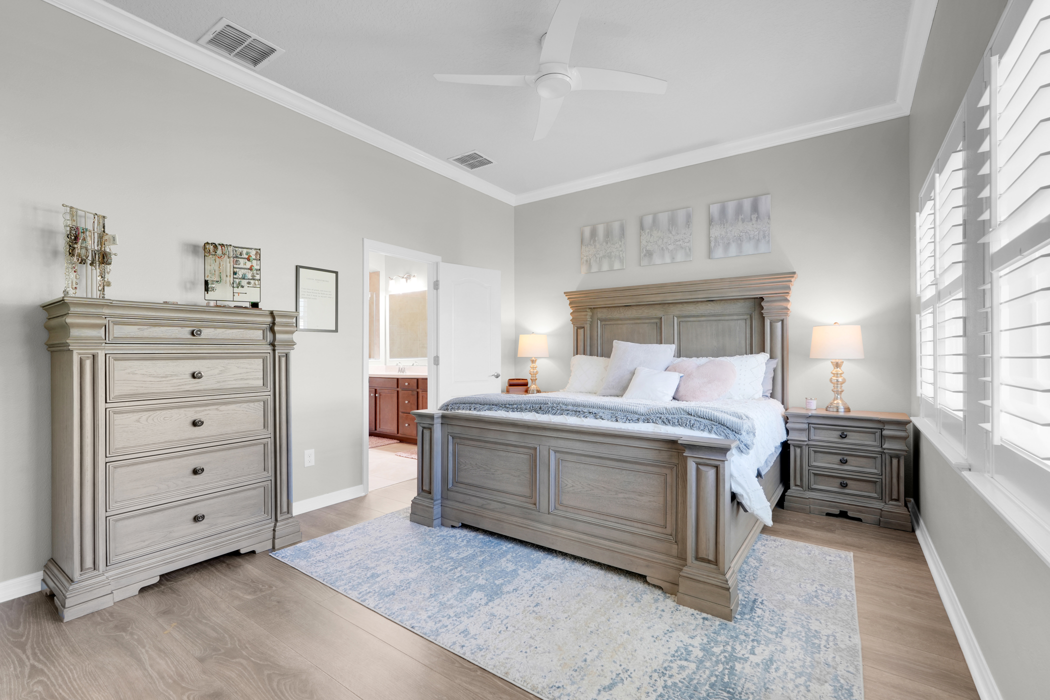 This impressive home boasts 3 bedrooms, 2 baths plus bonus room/ flex space and is located in the highly sought-after John’s Lake Landing community! This beautiful property featuring tall ceilings, architectural archways, plantation shutters and custom window treatments, wood laminate flooring, mud room space, and exterior paint completed in 2025.