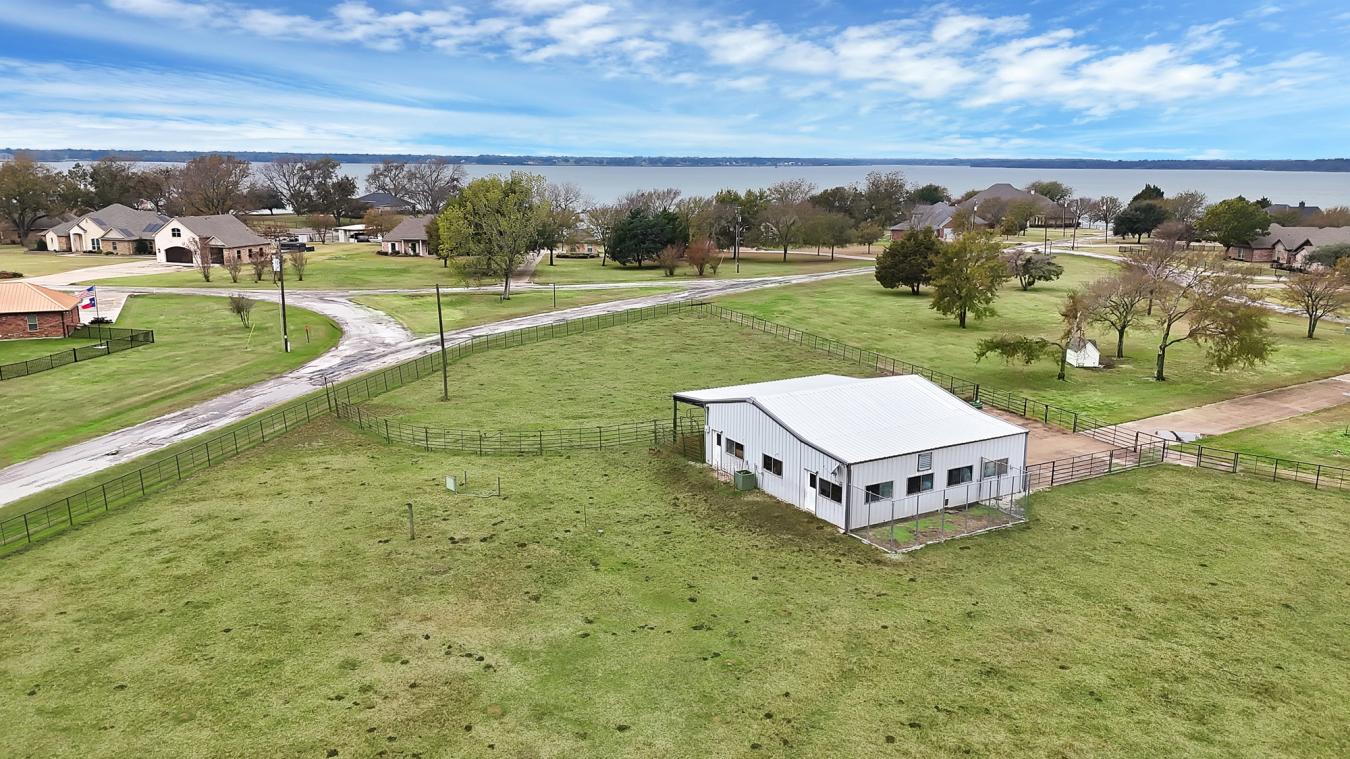 42 secluded acres, this exceptional lakefront property offers privacy, versatility, and deep water access designed for serious lake use. Long shoreline and large boat dock, with open-water frontage, rare opportunity to own a true recreational and legacy property. The land itself is highly usable and thoughtfully improved, featuring a spring-fed stock tank, an equipment barn, and ample room for additional development, recreation, or expansion. Whether used as a full-time residence, weekend retreat, or multi-generational compound, the setting delivers both functionality and natural beauty. The primary residence features 3 bedrooms and 3 bathrooms with an open-concept floorplan designed for comfort and entertaining. Two living areas provide flexibility for gatherings or quiet retreat, while the kitchen flows seamlessly into the main living space. Large windows bring in natural light and lake views throughout. Outdoor living is a highlight, with a large covered back porch and expansive patio areas, ideal for entertaining, relaxing, or enjoying sunset views over the water. A separate barndominium adds tremendous value and versatility. It includes multiple bedrooms, a comfortable living area, and a full kitchen, making it ideal for guests, extended family, or short-term stays. The structure also offers pull-through boat or RV storage, providing convenient, covered access for large recreational equipment. With deep water frontage, improved infrastructure, multiple living quarters, and abundant acreage, this property is uniquely suited for boating enthusiasts, outdoor recreation, or those seeking privacy without sacrificing functionality. Properties offering this combination of land, water access, and improvements are rare. This property presents a unique development opportunity. The size and layout offer flexibility for future expansion, additional residences, or a private compound. Deep water access and improved infrastructure enhance long-term value.