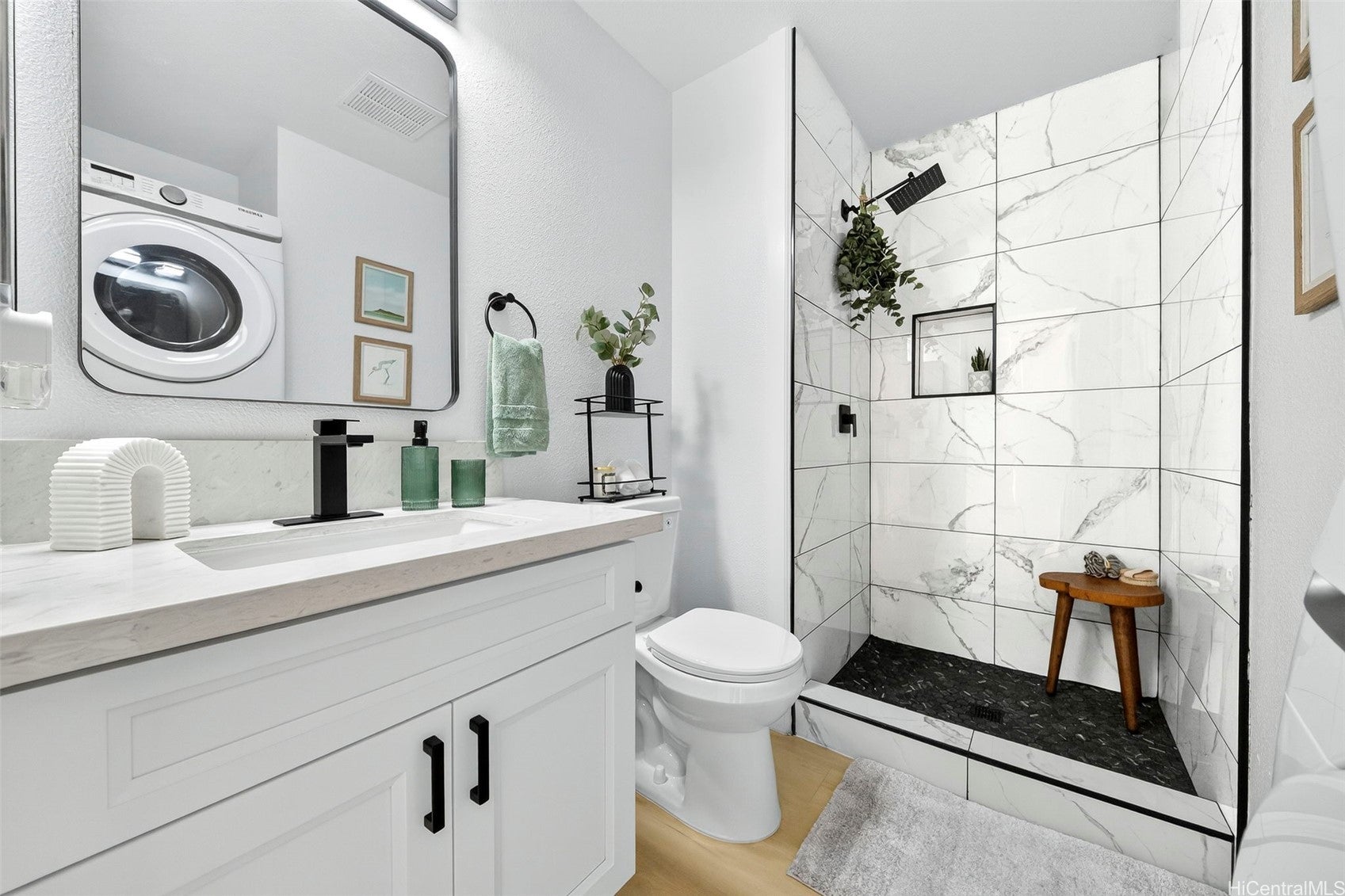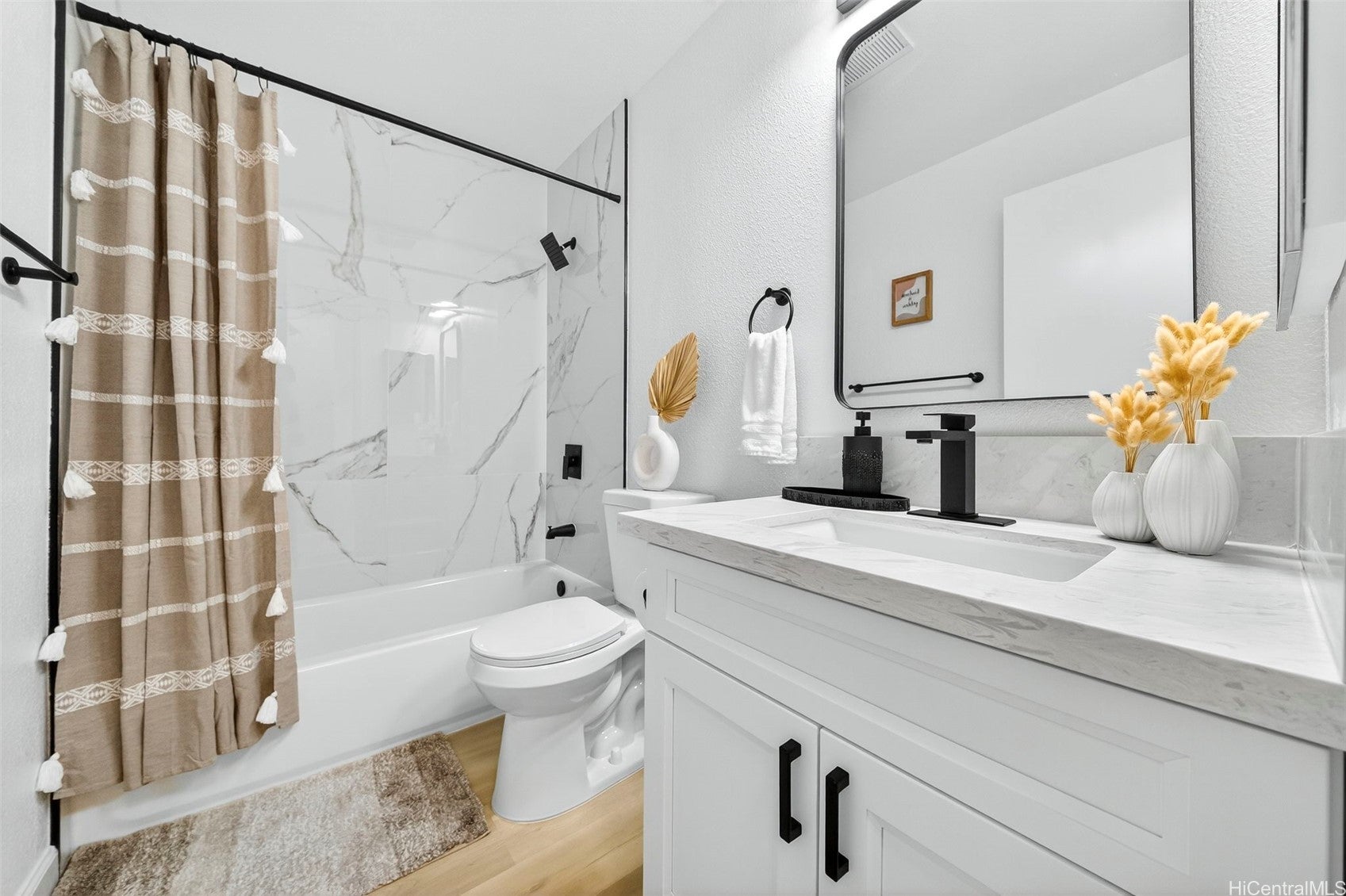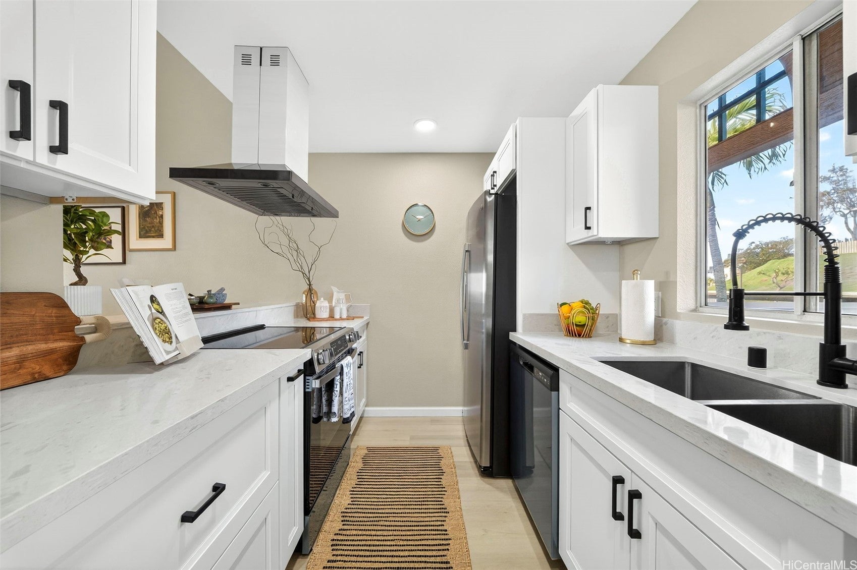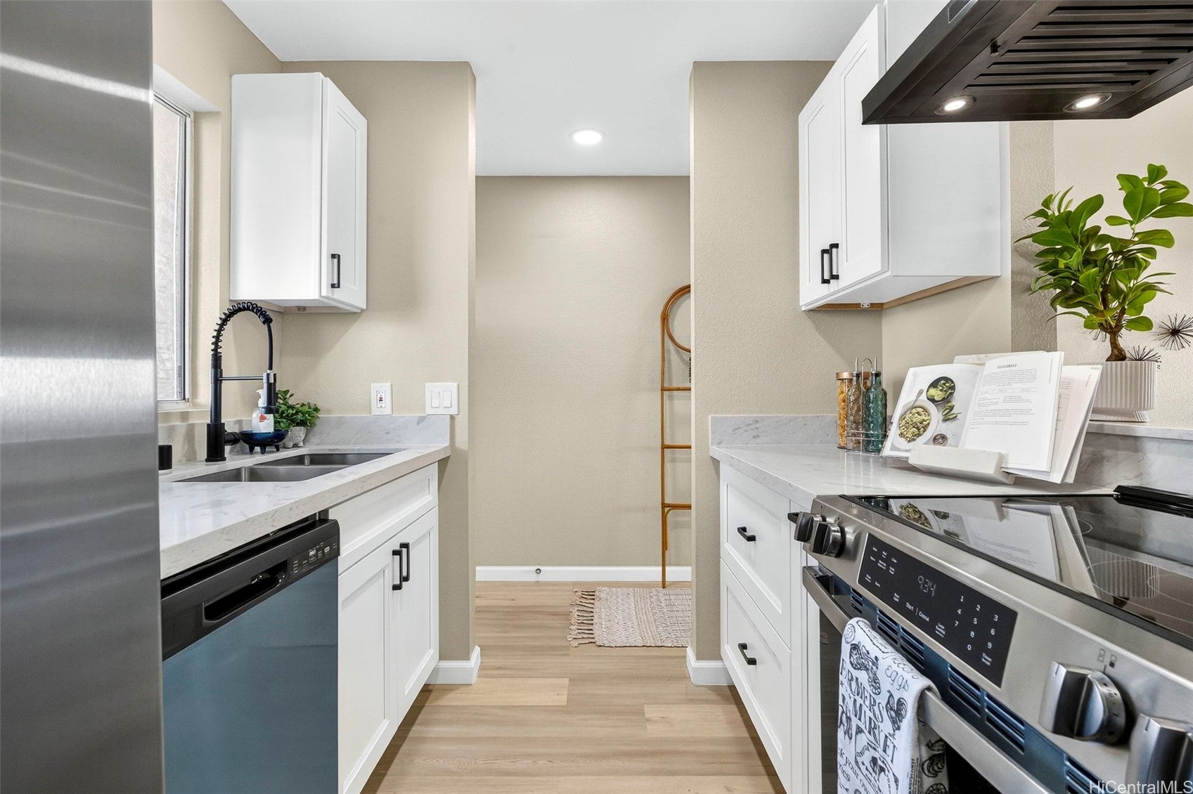 Move-in ready and fully renovated 2-bedroom, 2-bath home in Westview at Makakilo Phase 2 with ocean and mountain views! This beautifully updated unit features luxury vinyl flooring throughout, fresh paint, and all new light fixtures for a bright, modern feel. The kitchen has been upgraded with soft-close shaker cabinets, quartz countertops, and brand-new appliances including a dishwasher.