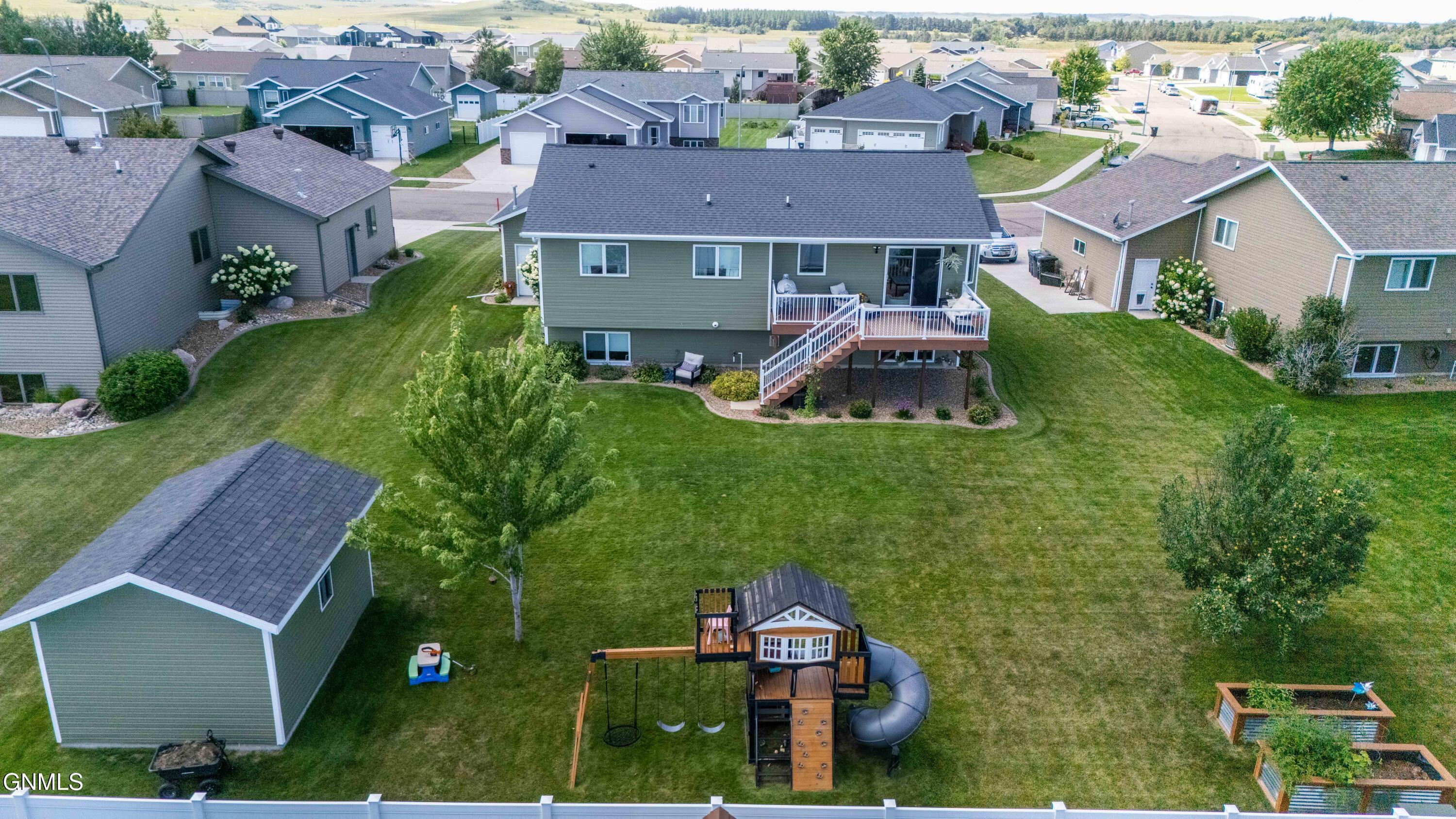 COME CHECK THE OPEN HOUSE- This Sunday 2/22/26 1:30 to 3:00 p.m. It's Free to See!Welcome to this gorgeous, turnkey 5-bedroom, 3-bath home located in Mandan's highly desirable Keidel Subdivision. This beautifully maintained property offers a fully finished interior and a landscaped exterior designed for comfort, convenience, and stunning views.🌳 Exterior HighlightsNestled in an established neighborhood, this home features:A partially fenced yard with meticulous landscapingA maintenance-free, east-facing deck--perfect for cool evening relaxationSprinkler system, storage shed, and breathtaking eastern viewsA triple heated garage with floor drain and water hookupsRain Bird sprinkler system and a wireless underground pet fence (with two collars included)🏡 Interior FeaturesStep inside the spacious foyer and into an inviting open-concept main floor with cathedral ceilings that create a bright, airy atmosphere. The layout flows seamlessly between the living room, dining area, and kitchen--perfect for everyday living or entertaining.Kitchen: All appliances includedMain Level: 3 bedrooms, including a luxurious Primary Ensuite with cathedral ceiling, walk-in closet, and private bathLower Level: A large family room with fireplace--ideal for cozy nights in--plus 2 more bedrooms with egress windows, a full bath with custom vanity and tile flooring, and a convenient laundry/utility roomDaylight windows throughout enhance the open feel and bring in natural light year-roundBuyer spoiler alert! Very low specials!This one-owner home, built by Boulder Homes, has been lovingly maintained and is ready for you to move right in.📞 Call your Realtor today to schedule a showing.