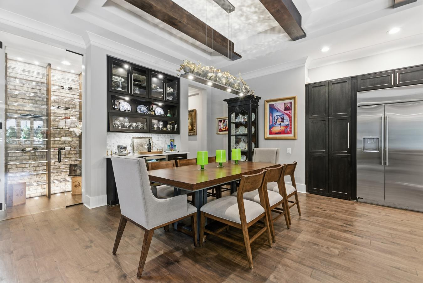 This isnt just a home its a cinematic experience. Tucked into one of Raleighs most exclusive enclaves: Montreux, this modern estate redefines luxury with bold design, curated finishes, and a backyard that feels like a private resort. From the moment you enter, light dances across soaring ceilings and custom textures, guiding you toward the heart of the home: a dramatic living space that spills effortlessly into the outdoors. Walls disappear with retractable glass, revealing The Waterfall Court a sculpted sanctuary of heated pool, fire features, butterfly garden, and checkerboard stonework. Whether its a garden party or a quiet evening under the stars, this space turns everyday moments into something magical. And just when you think youve seen it all step upstairs to The Sky Gallery. This extended second-floor balcony offers a sweeping view of the backyard oasis below, framed by treetops and twilight. Sunrise yoga, sunset cocktails, or stargazing with friends this elevated retreat is your personal perch above paradise. Inside, every detail tells a story: A chefs kitchen that doubles as a design statement, with reclaimed wood, hidden prep spaces, and gallery lighting A primary suite that feels like a five-star retreat, complete with spa bath, dressing lounge, and private garden access A wine room, tiered office, and entertainment zones that balance function with flair This home isnt just move-in ready its memory-ready. A rare blend of artistry, comfort, and soul.