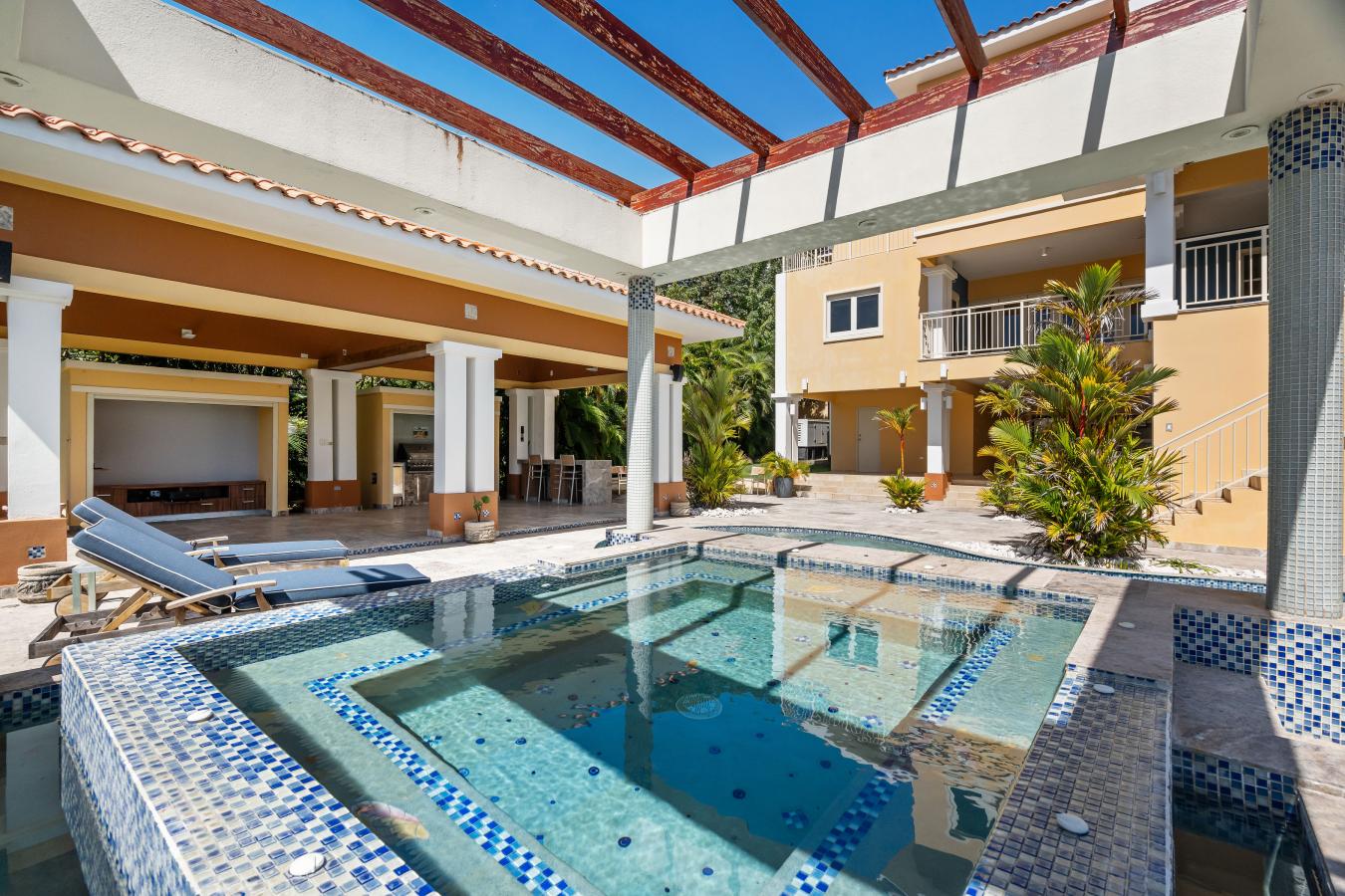 One or more photo(s) has been virtually staged. Welcome to your dream oasis in the heart of Palmas del Mar. This spectacular residence offers over 5,380 interior square feet and has been meticulously renovated to the highest standards, seamlessly blending luxury, comfort, and breathtaking ocean and marina views. Thoughtfully designed for elevated living and effortless entertaining, the home features five spacious bedrooms plus a dedicated office, expansive living areas, and a private movie theater ideal for relaxed evenings or entertaining guests. The fully renovated kitchen is both stylish and functional, serving as the heart of the home. Large windows and open spaces invite natural light throughout, allowing you to wake up to ocean views and enjoy unforgettable sunsets over the marina. Solar panels add efficiency and long-term value to this exceptional property. Located within the well-known Palmas del Mar community, residents enjoy access to world-class amenities including championship golf courses, marinas, pristine beaches, restaurants, shops, and more. Additional Features: Over 5,380 interior sq ft 5 bedrooms office (1 bedroom and bathroom on the first floor) Private movie theater Renovated kitchen Ocean and marina views Solar panels and 20k diesel generator Fire pit Garage plus driveway parking for 6 cars HOA: 1,300/year This is a rare opportunity to own a move-in-ready luxury residence in one of Puerto Ricos most desirable resort communities.
