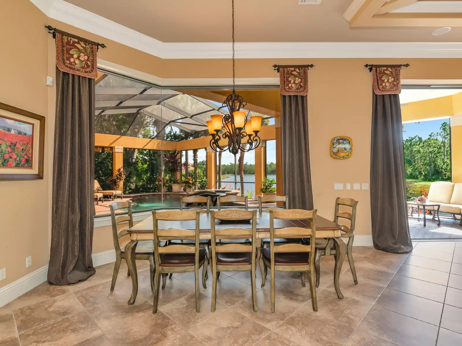 An incredible residence by John Cannon Homes situated on one of the rare, elongated lots in The Concession that offers stunning water views and picturesque preserve vistas. Your journey begins with the striking fountain entry and Cantara iron doors. We welcome you into a beautifully crafted interior. This space showcases high-end finishes, including intricate ceilings, crown moldings, designer lighting, French doors, hardwood floors, custom tiles, marble, and stone. This home is a true embodiment of elegance, with furniture-quality cabinetry, two distinct fireplaces, handcrafted built-ins and woodworking, ornate architectural details, Sonos Sound System, superb Windsor Pinnacle windows, and doors that artfully elevate its aesthetic appeal. It boasts impressive square footage and sophisticated formal dining and living spaces with ceiling-to-floor windows that overlook the pool and a lake view beyond. This residence has four bedrooms and five baths, along with an executive office and a spacious family room combined with a breakfast nook. Additionally, there is a welcoming bonus media room on the second floor, complete with a wet bar and an enclosed balcony, creating the perfect space for relaxation and entertainment. A gourmet kitchen is a true haven for culinary enthusiasts. This exceptional space features premium appliances: a professional-grade Wolf oven and gas range, a Sub-Zero refrigerator with a glass door, and a high-performance Bosch dishwasher. Between the kitchen and formal dining room, you'll find a Butler's Pantry, fully equipped to make entertaining a true delight. The impressive Owner’s Retreat has access to outdoor spaces, enhancing the connection with nature. This suite also has two handsomely designed walk-in closets and a luxurious primary bath. At its center, an exquisite garden tub stands out, complemented by a stunning three-piece shower that includes a rainfall showerhead and an aquarium glass panel overlooking the atrium. Imagine lounging by the heated pool or unwinding in the spa outdoors, all while enjoying breathtaking views of a sprawling lake. An outdoor kitchen area is nothing short of spectacular, perfect for entertaining. Nestled within a secure, gated community, The Concession spans over 1,200 acres. It features a privileged number of private homesites that highlight the charm of historic Florida, creating a perfect blend of tranquility and safety. The Concession Golf Club is a premier destination with courses designed by Jack Nicklaus in partnership with Tony Jacklin, including an 18-hole championship course, a 9-hole par-three course, and a lighted putting course. The club also boasts impressive practice facilities, featuring a driving range, as well as large putting and chipping greens. Additional amenities comprise a pro shop, guest lodging, The Bistro with a diverse dining experience offering 365 wines, and monthly social events, alongside a Saturday morning market. There are both Social and Golf Membership options. For details on availability, please contact the Membership Director. Residents can also enjoy the vibrant shops, delightful restaurants, and entertainment at UTC, Benderson Park, Lakewood Ranch Main Street, and Waterside with just a quick drive. Additionally, they have access to enriching cultural activities and the white-sand beaches of Sarasota. This area offers the perfect balance of peaceful living with convenient access to everything you love without the burden of CDD fees!