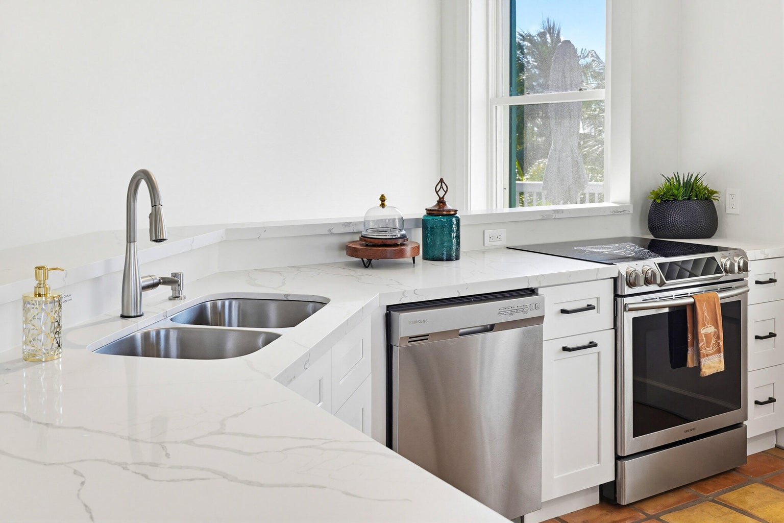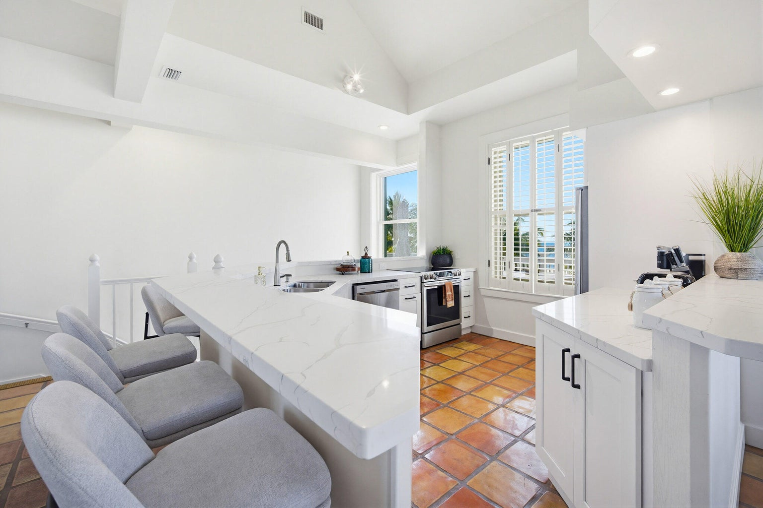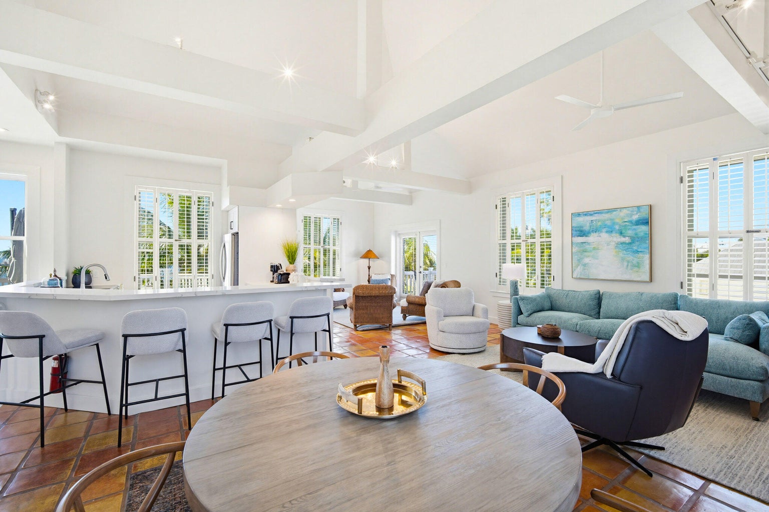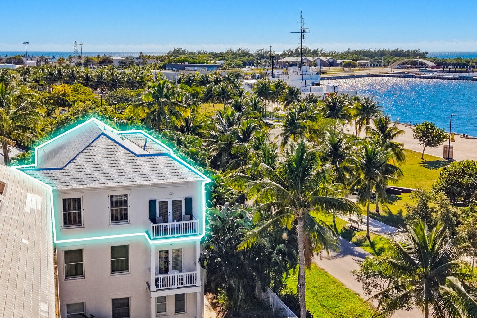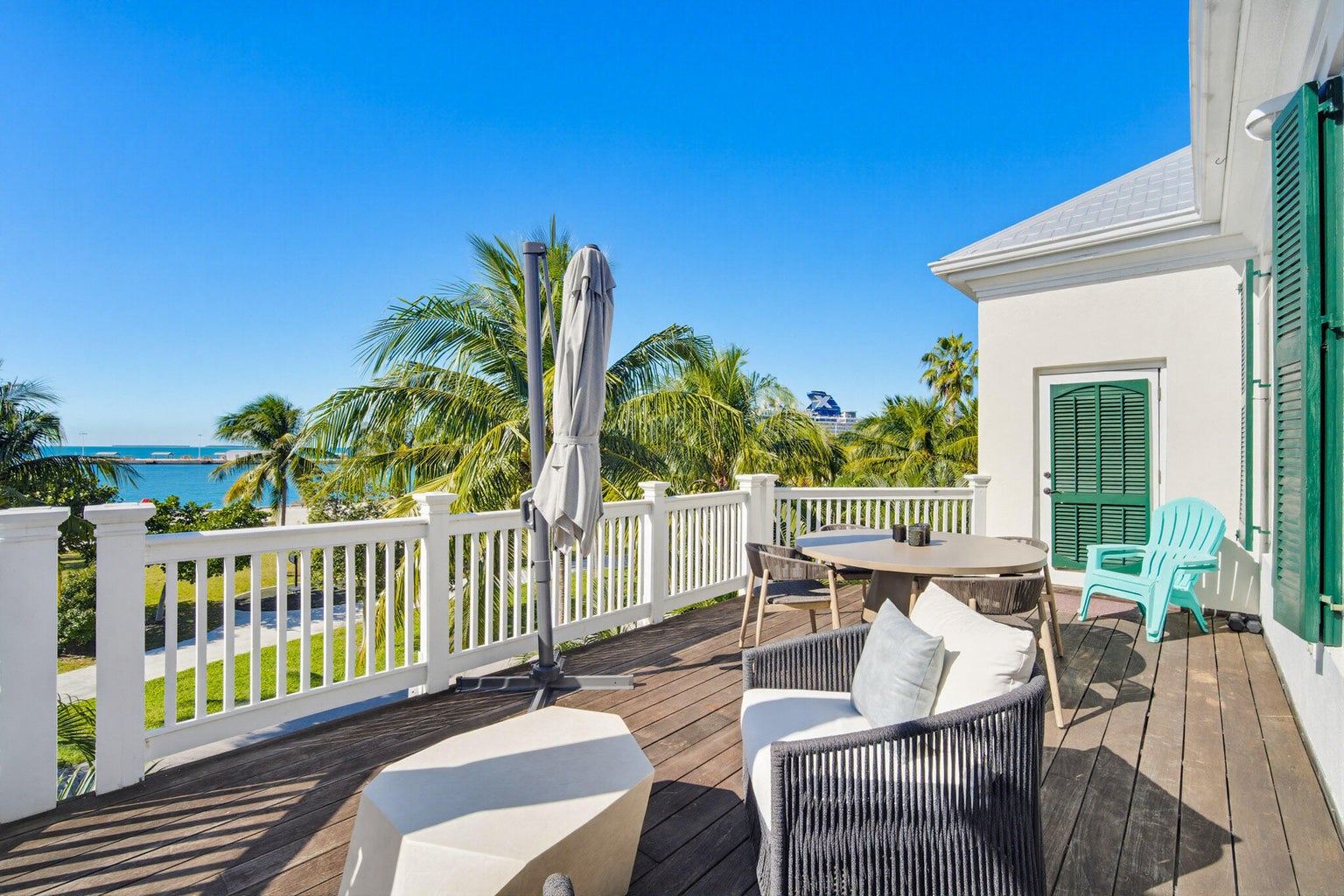 Beautifully updated and styled with plush new interior designed furnishings, 401 Emma Street Unit H is a vacation rental townhome that has BOTH Ocean and Harbor views in the heart of Truman Annex. Enjoy gorgeous sunset vistas of the Atlantic and the Gulf while also overlooking the the tropical and lush grounds of Truman Waterfront Park and Truman Harbor.