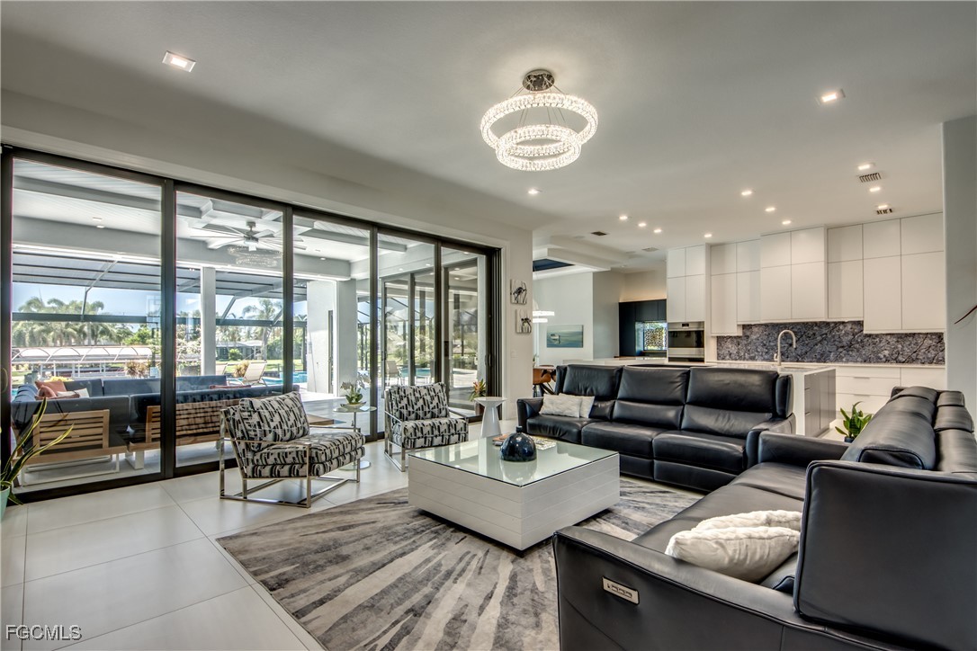 Discover an extraordinary residence that defines luxury living in one of Cape Coral's most sought-after locations. This spectacular 5-bedroom den 2-story Gulf Access property offers nearly 6,000 sq. ft. of meticulously designed living space, sold TURNKEY with exclusive high-end furnishings and curated art pieces.