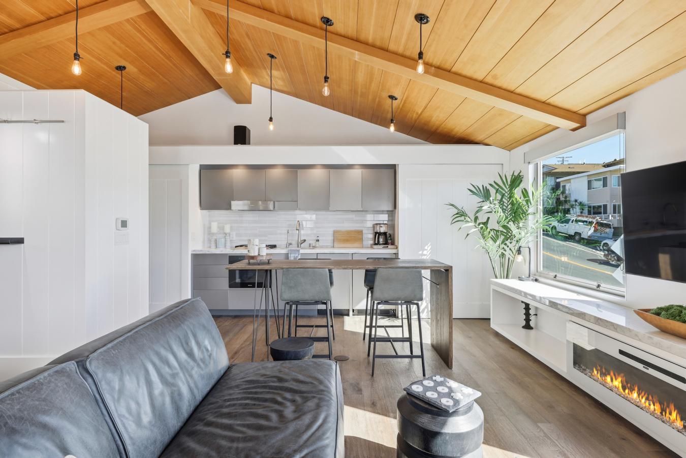 137 15th Street is located in one of Manhattan Beachs most desirable pockets - just six homes from The Strand in the 100 Block, and steps to Downtown dining, shops, and lifestyle. With a direct westerly ocean view-line, rare backyard space this close to the sand, and exceptional walkability - reflected in a 93 "Walkers Paradise" rating on Walk Score - this location captures the essence of Manhattan Beach living at a price point seldom seen so near the water. The property offers uncommon flexibility and long-term upside. Set on a 30 x 45 lot with an approximate 1,350 square foot developable footprint, it presents a compelling opportunity to live comfortably today while preserving future SFR development potential. Whether used as a primary residence, second "beach house", or income-producing property, the A location supports strong short-term rental demand and makes this an ideal candidate for a thoughtfully executed Airbnb or furnished coastal rental strategy. The existing home is turnkey and fully upgraded. The light-filled upper level features vaulted wood-beam ceilings, heated wood floors, and a welcoming living area centered around a fireplace. The updated kitchen is equipped with premium Miele appliances, pantry storage, and is designed to capture ocean breezes and natural light. Air conditioning adds year-round comfort, enhancing the homes livability. The layout is efficient and flexible. The upper level functions as a studio or one-bedroom-style living space with a bathroom, while the lower level offers a separate bedroom or office with an adjacent bath - ideal for guests, work-from-home, or additional privacy. Outdoors, a private backyard retreat with fire pit and outdoor shower creates a rare indoor-outdoor living experience this close to the beach. Additional features include a one-car garage with laundry, tankless water heater, and thoughtful upgrades throughout. This is a property that speaks to buyers seeking a foothold in an A Manhattan Beach location - whether an empty nester prioritizing walkability and lifestyle, a frequent visitor looking to offset ownership with rental income, or an investor drawn to location-driven demand and future potential. Few offerings combine this level of proximity, flexibility, and long-term value so close to the sand.