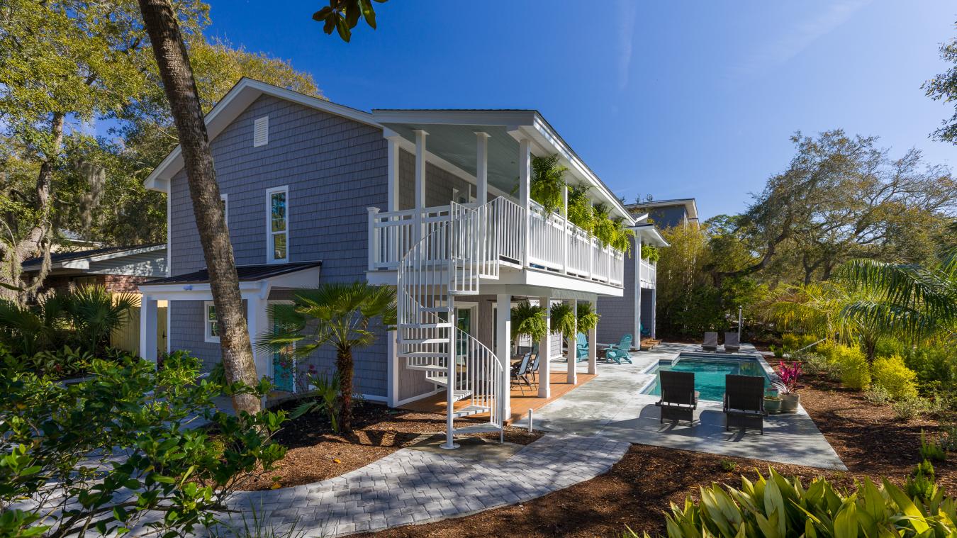 Hilton Head Islands ultimate second-row beach retreat-fully furnished and move-in ready! 7 Cassina Lane is a stunning 6BR/5BA coastal compound with a private pool, guest house, multiple balconies, ocean glimpses, and direct beach access just steps away. Thoughtfully renovated with coastal designer finishes, updated composite siding, roof, windows, new heated pool, doors, and lush landscaping.