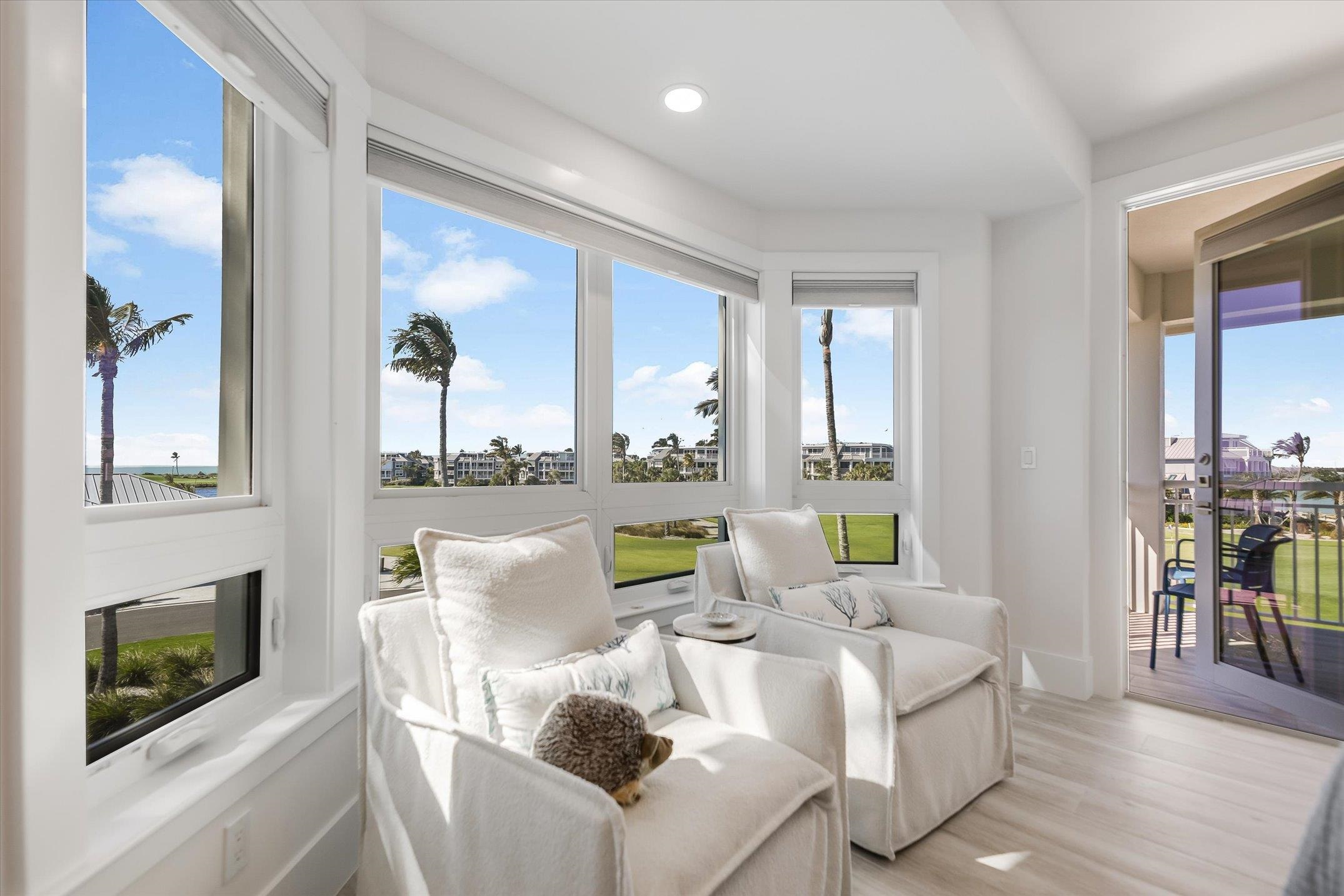 The island lifestyle youve been dreaming of awaits you at Seabreeze within the gated community of South Seas at the tip of Captiva Island. This is a rare opportunity to purchase a top floor, corner location boasting an inviting interior filled with sun-drenched natural light. Enjoy the sunny island breezes and expansive water views from the two spacious terraces with stunning sunrises in the morning and awe-inspiring sunsets in the evening. Truly an exclusive and private location with a total of 8 condominiums in the building. Recent interior improvements include new impact rated windows and sliding glass doors, wood plank tile flooring throughout, top of the line gorgeous custom cabinetry and modern quartz counters in the kitchen and bathrooms, an easy-feel breakfast bar, functional laundry center and storage area, soft window treatments, and professionally designed interior furnishings. This spacious three bedroom / three bath condominium has a breathtaking color palate of coastal blues, crisp whites and sandy neutrals. The primary bedroom overlooks the azure bay waters with access to the screened lanai and the primary bath has been redesigned with his and hers vanities along with a large walk-in shower. Guest suites and bathrooms have been thoughtfully created to offer a coastal experience comprised of golf course and water views. The association has recently installed new landscaping with tropical, flowering shrubs and lush palm trees, a weather- resistant standing seam metal roof, repainted the exterior of the building, refreshed the ground level owner storage closets and under building parking, created an area for socializing while you grill. This is the one of a kind vacation villa that you have been waiting for. Call for your private showing.
