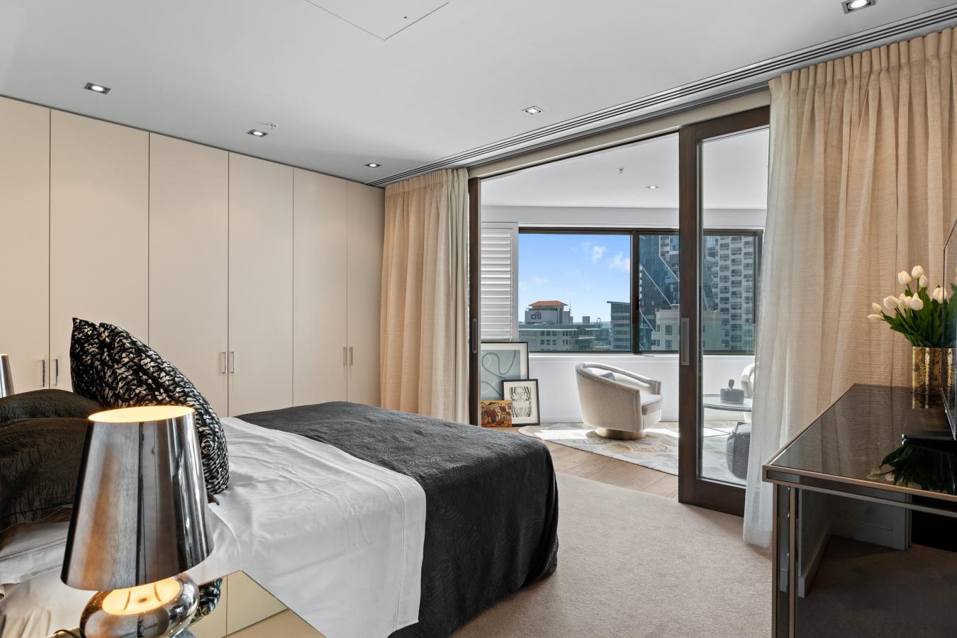 This is not just apartment living, it is a grand home in the sky. Spanning approximately 209m and capturing sweeping city views across the Auckland Harbour and Albert Park, this residence is truly something special. Entertain in style from the renovated chefs kitchen, complete with a full built-in pantry, double-door fridge, and a dedicated wine fridge. Thoughtfully designed throughout, the adjoining sunroom frames harbour views and invites natural light to flood the space for that morning sun soaked coffee. Fall in love with the expansive master suite, featuring full built-in wardrobes and a vast ensuite with separate bath and shower, all opening seamlessly onto the resort-style sunroom. Complementing this impressive layout is a separate home media room, ideal as a private cinema, office, or flexible fourth room to suit your lifestyle. A further bedroom enjoys its own ensuite, while the third bedroom is serviced by a full guest bathroom. With a separate laundry and clearly defined living spaces, this home offers both practicality and elegance in equal measure. Live in luxury with luxury amenities such as Infinity-edge pool, jacuzzi, sauna, exceptional gym, ice bath and relaxation lounge access with JW Marriott Hotel. Two secure car parks and two storage lockers complete the package. Pet friendly & on-site professional building management. Positioned within The Residences on Albert, you are placed in a prime central location with metro supermarkets, premium shopping precincts, and the Downtown Ferry and Train Terminal all just moments from your doorstep. Deadline Sale: 4th March 2026, 12:00pm (if not sold prior)