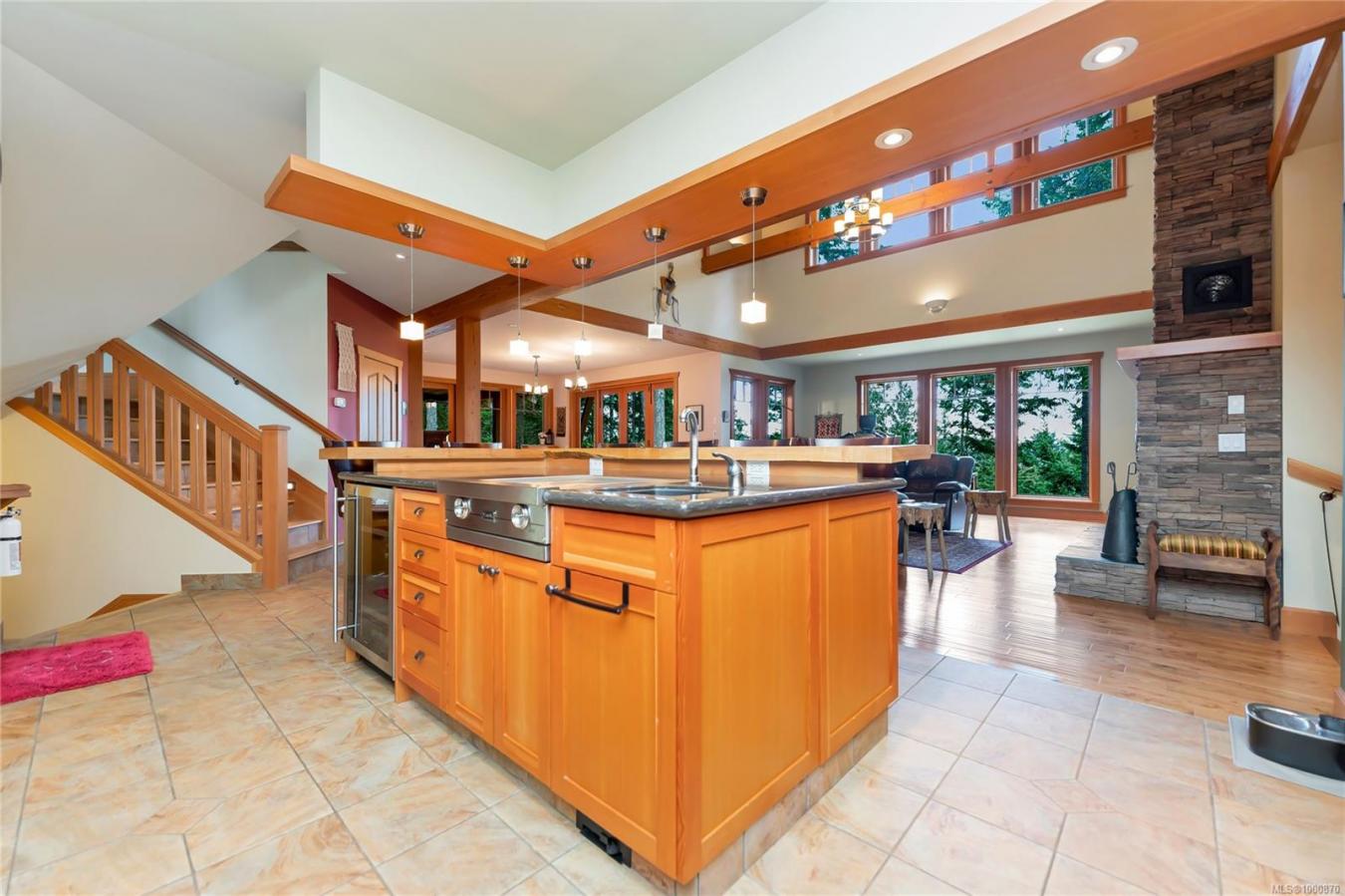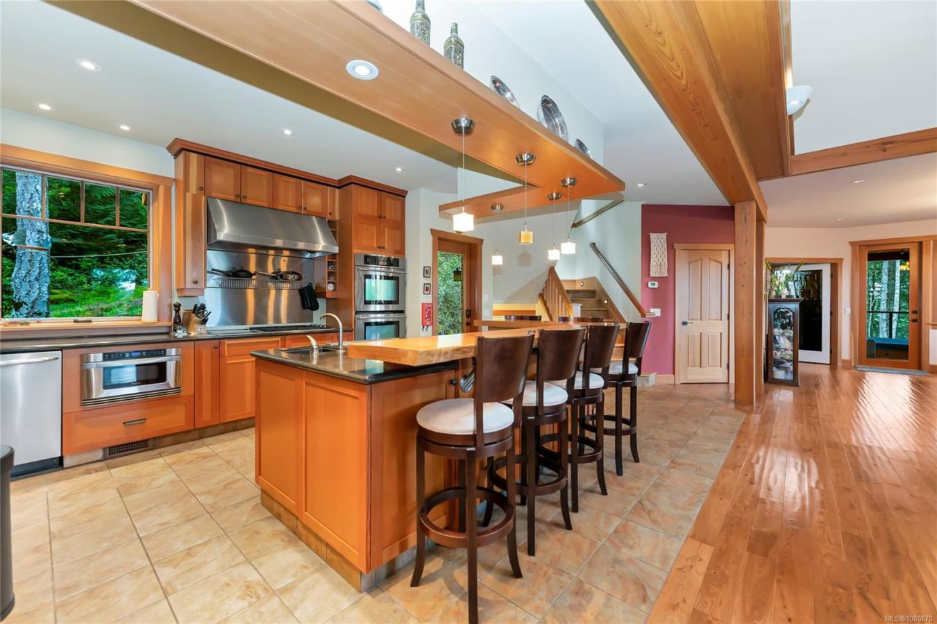 Sail to Salt Spring & park your boat at your own dock. Beautiful west coast build perched on 5 private acres designed by Everest MacDonald renowned for doctorate in Feng Shui interior. Chefs kitchen featuring gas Wolfe burner, 2 ovens w/ heating drawer, griddle on island & pantry w/ pass through.