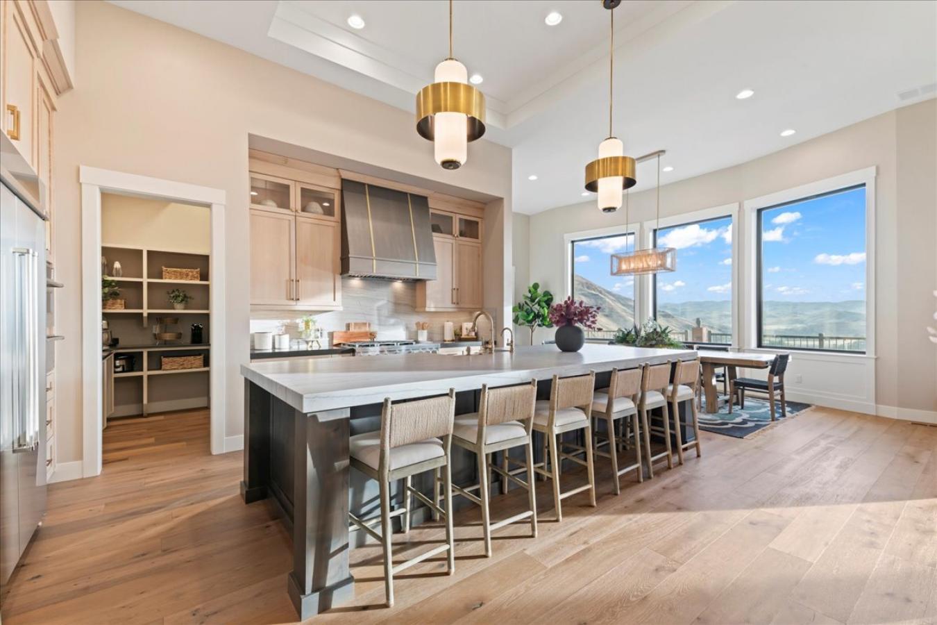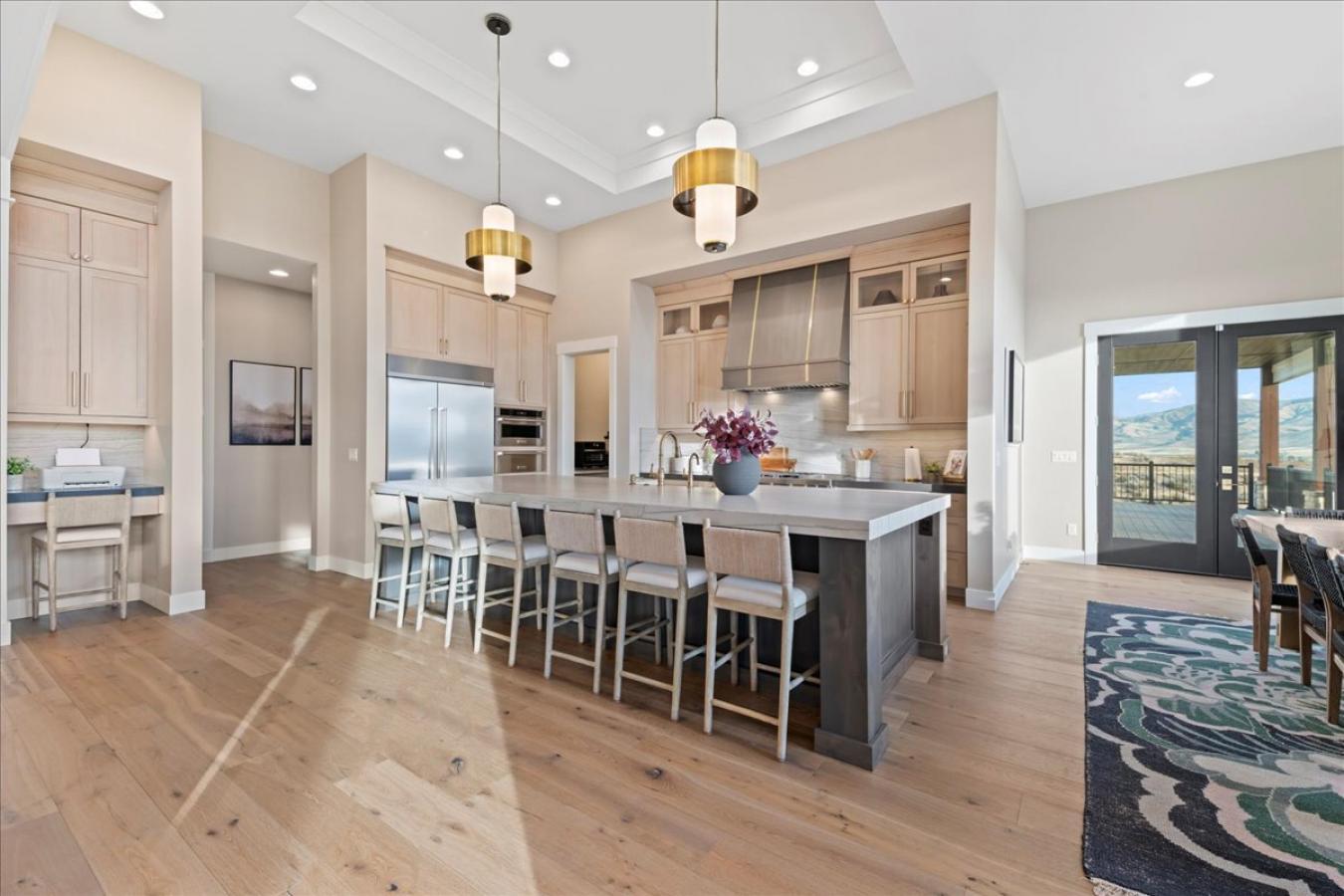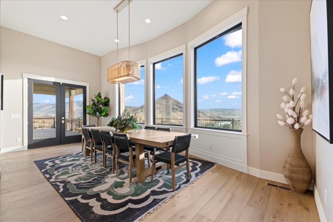 This extraordinary custom estate in Sweet, Idaho, offers a rare blend of refined design and breathtaking natural surroundings. With commanding 360 views of Regan Butte and the Payette River, plus private river access through Hunters Cove, the home was meticulously crafted to showcase elegance at every turn.