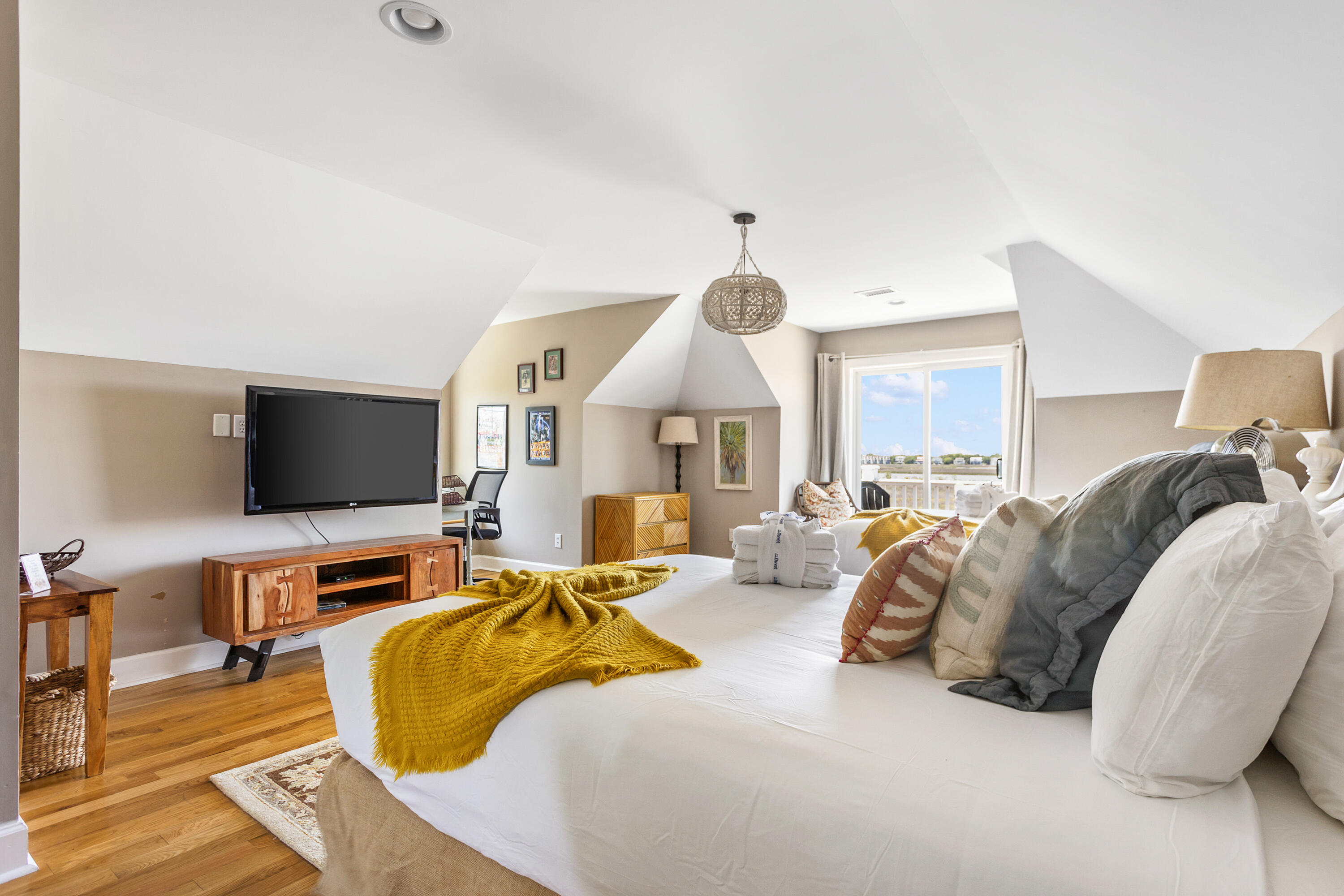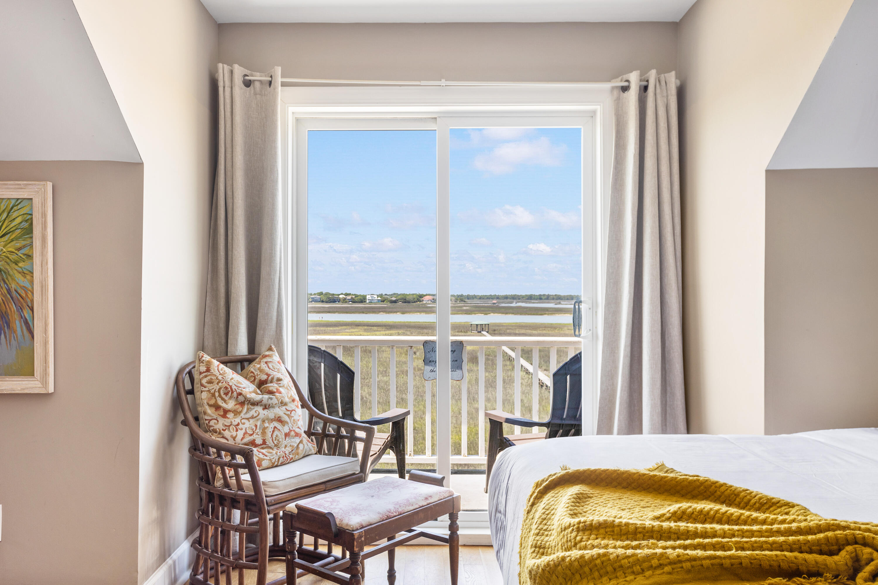 Driftwood on the RiverThis is a rare opportunity to own an exceptional home on a quiet street along the Folly River--just a short walk to the beach and only 51/2 blocks from Center Street. This stunning three-story residence is loaded with high-end upgrades, including hardwood floors throughout, extensive crown molding, and premium appliances. Designed with an inverted floor plan, the home showcases captivating views of the Folly River and marsh from every level.Regular sunsets of every shade are captivating.A shared dock provides access to a crabbing dock on a tidal creek, just moments from the Folly River--perfect for boating, kyaking, fishing, and enjoying the Lowcountry lifestyle.The first floor offers three bedrooms: two connected by a Jack-and-Jill bath, and a primary suite featuring an exquisite ensuite with a large Jacuzzi tub, double granite vanity, and a beautifully detailed tiled shower with a glass door.The gourmet kitchen is a chef's dream, complete with high-end appliances (6 burner Wolff stove), granite countertops, a large island, multiple sink stations, a pot filler, and a wine fridge. A convenient elevator runs from the 3-car garage to the main living level, making it effortless to bring groceries and belongings upstairs.Recent upgrades include a new roof, plunge pool overlooking the Folly River, an updated third-floor bathroom, a new Bosch refrigerator, a new A/C units, a screened porch on the main level, fresh interior paint, new laundry room cabinetry, and beach-inspired wall treatments throughout.The top floor offers incredible flexibilitycurrently furnished with two queen beds but ideal as a spacious game room or media room. It includes a full bathroom and a private deck with expansive river and marsh views.This property is currently on a professionally managed rental program with My Oceans, one of the top concierge services on Folly Beach.The owner is selling it as a fully furnished home, turnkey move-in with a just a few exceptions. Linens, bedding, and towels do not convey. Beds and pillows do convey.