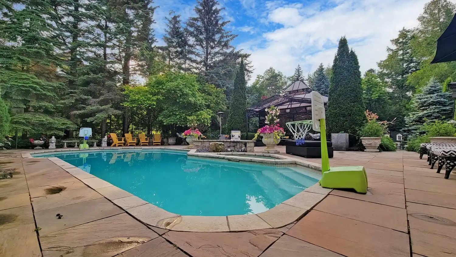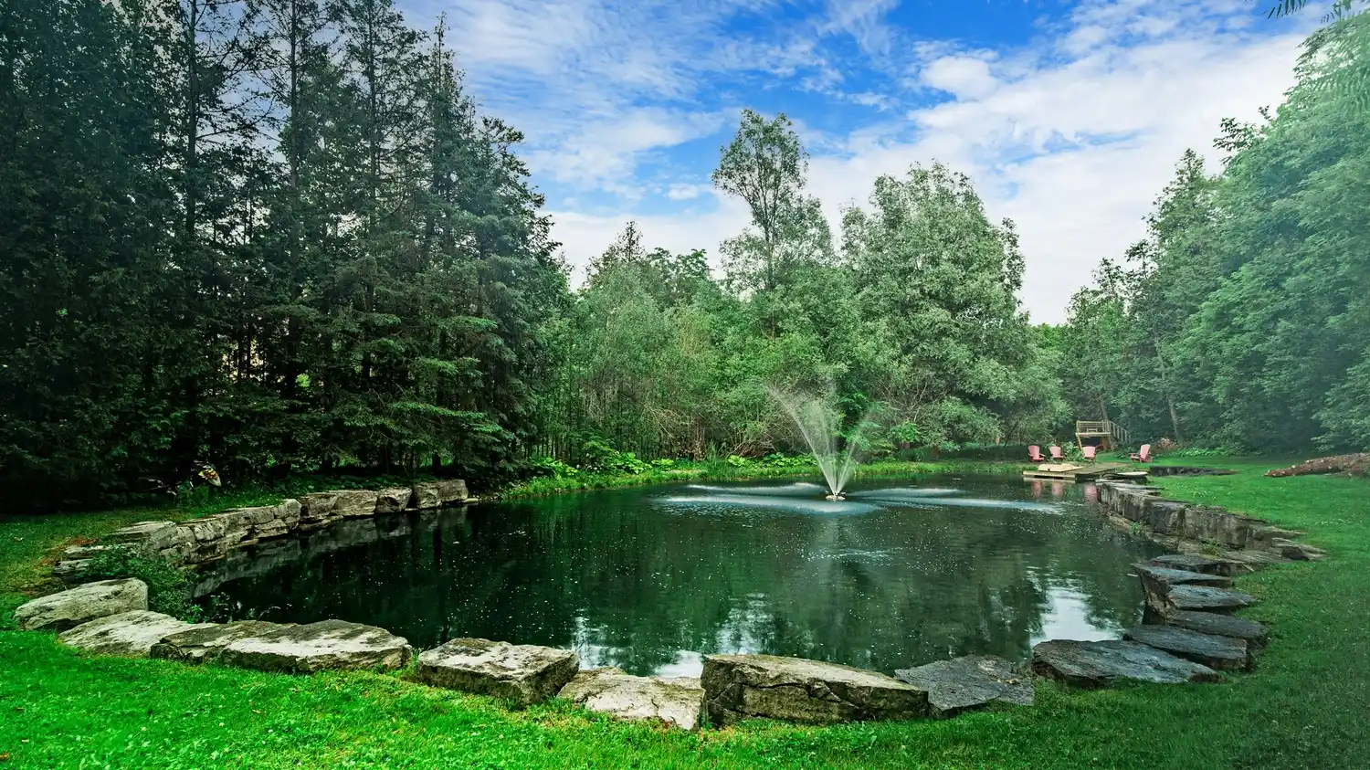 Live your ultimate lifestyle dreams in Vaughan on this rare custom built gem that was featured on the hit TV show Million Dollar Listing! Its situated on 2.11 acres of land with over 13,000 sq. ft. of living space. This Muskoka inspired, serene oasis features private forested walking trails, a fire pit built onto square cut Indiana flagstone, an in-ground pool, gazebo w/ 2 TVs, a childrens play area w/ a Lilliput childrens play house, & an expansive spring fed pond perfect for swimming ,paddle boarding, canoeing, a competitive game of hockey or leisurely skating! Upon entering this opulent estate property, youre welcomed by a grand main entrance & great room with custom painted 21-foot dome ceiling. The expansive kitchen has a walk-in fridge & commercial freezer; 4 dishwashers; walk in pantry in the dining room & much more. There are 10 washrooms & 8 bedrooms (including 2 primary bdrms) with each having private sitting areas, ensuite washrooms, & walk-in closets. Walk-out lower level w/ separate entrance has 2 bedroom apartment, kitchen, & multi-purpose, open concept recreational rooms, creating ample space for entertaining guests & ideal for multi-generational living. The attention to detail in every corner of this unique, timeless home is unparalleled - from custom windows, trims & doors, to walls adorned w/ Swarovski crystals - you must see in person to appreciate. Please Note: Modernized Photos are photoshopped and virtually renovated.