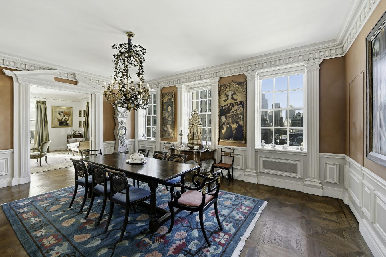 This exceptional and sun-drenched duplex residence occupies the top two floors of this iconic building. Entered from a semi-private landing, Apartment 11/12W immediately impresses with its sense of scale and architectural drama, highlighted by a curved wooden staircase rising toward a skylight more than 21 feet overhead. Off the foyer, the inviting library offers a warm retreat, featuring one of the apartments six working fireplaces, a wet bar, and an adjacent powder room. The grand living and dining rooms are designed for elegant living and entertaining, boasting 10-foot ceilings, exquisite crown moldings, two fireplaces, and sweeping west-facing views of Central Park. Flowing seamlessly from these formal spaces, the expansive chefs kitchen is outfitted with a Viking Professional range, modern appliances, and a large central island that provides ample workspace and an ideal setting for casual gatherings. Adjacent to the kitchen, a former staff room has been converted into a small bedroom with its own bath. The second level is devoted to the private quarters. The generously proportioned primary suite enjoys western exposures over the park and southern light, and features its own fireplace and a spa-like en- suite bathroom. The second bedroom-created by combining two rooms-also includes an en-suite bath, as does the third bedroom. Each bedroom enjoys views of Central Park and its own fireplace, complemented by abundant closet space throughout. A dedicated laundry room, converted from an additional staff room, is conveniently located on this level near the bedrooms. Completed in 1910, 563 Park Avenue is widely regarded as the first luxury apartment building on Park Avenue. Designed by architect Walter B. Chambers, the building was conceived so that all residences facing Park appear as duplexes, distinguished by alternating window heights and an array of wrought-iron and limestone balconies. A Neo-Renaissance jewel, the property showcases a richly detailed red-brick facade anchored by a dramatic three-story rusticated limestone base. With only two residences per floor and approximately 20 apartments total, this white-glove cooperative offers exceptional privacy and discretion. The building is wheelchair accessible, pets are permitted, a storage cage transfers with purchase, and a 2% flip tax applies.