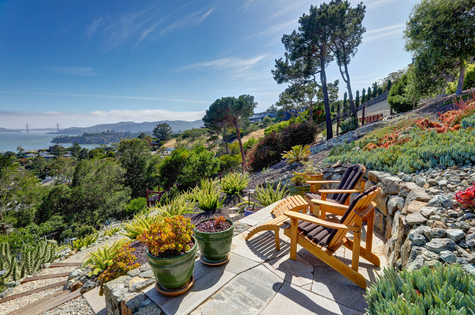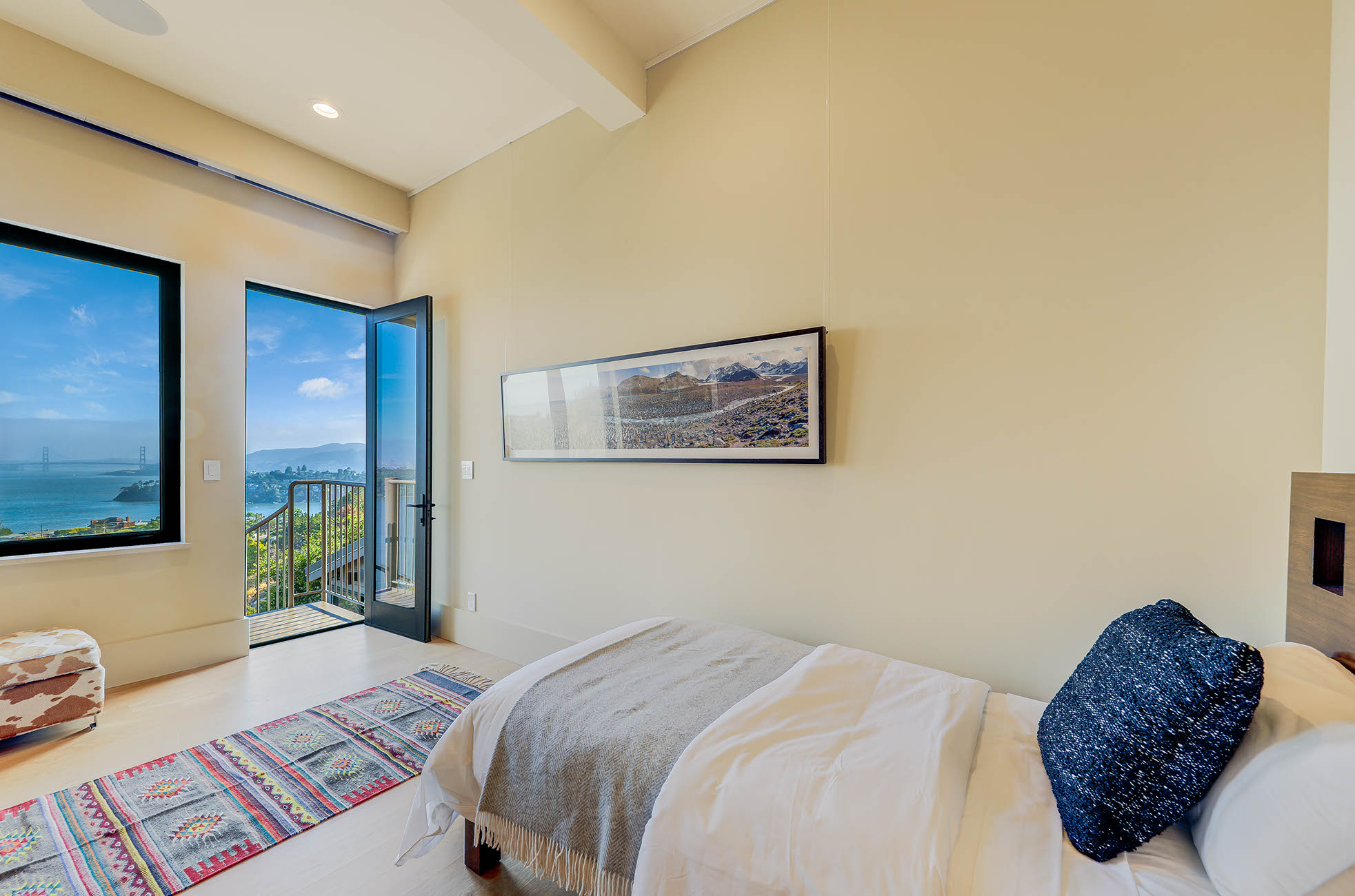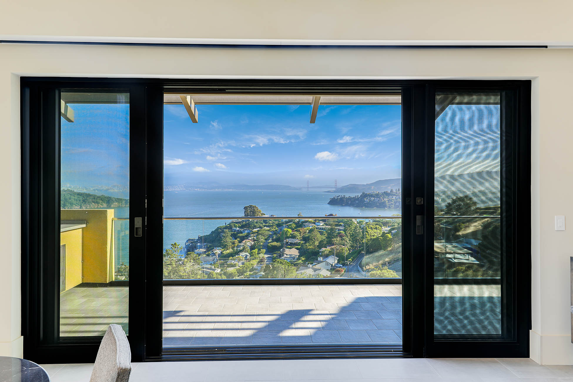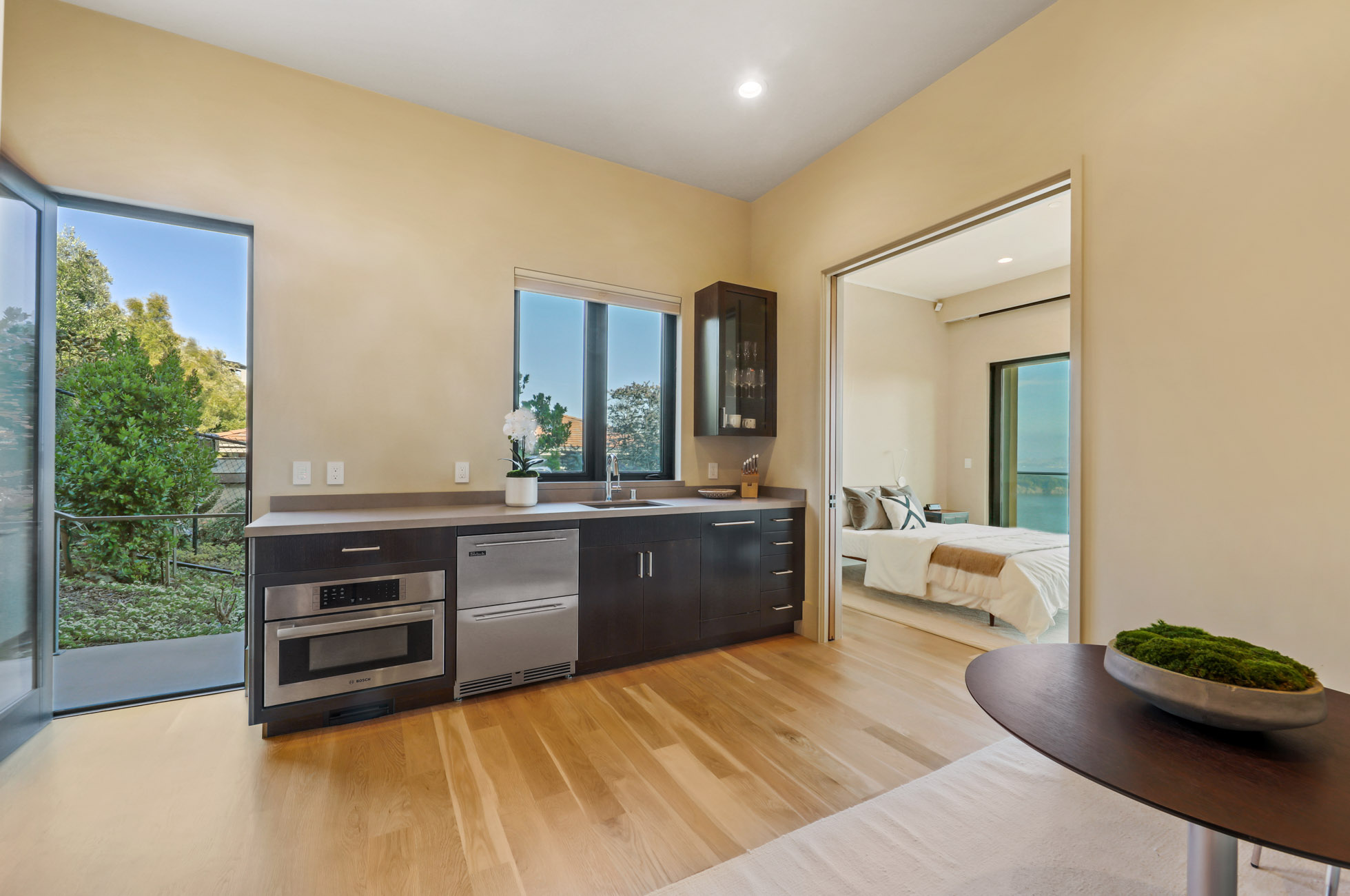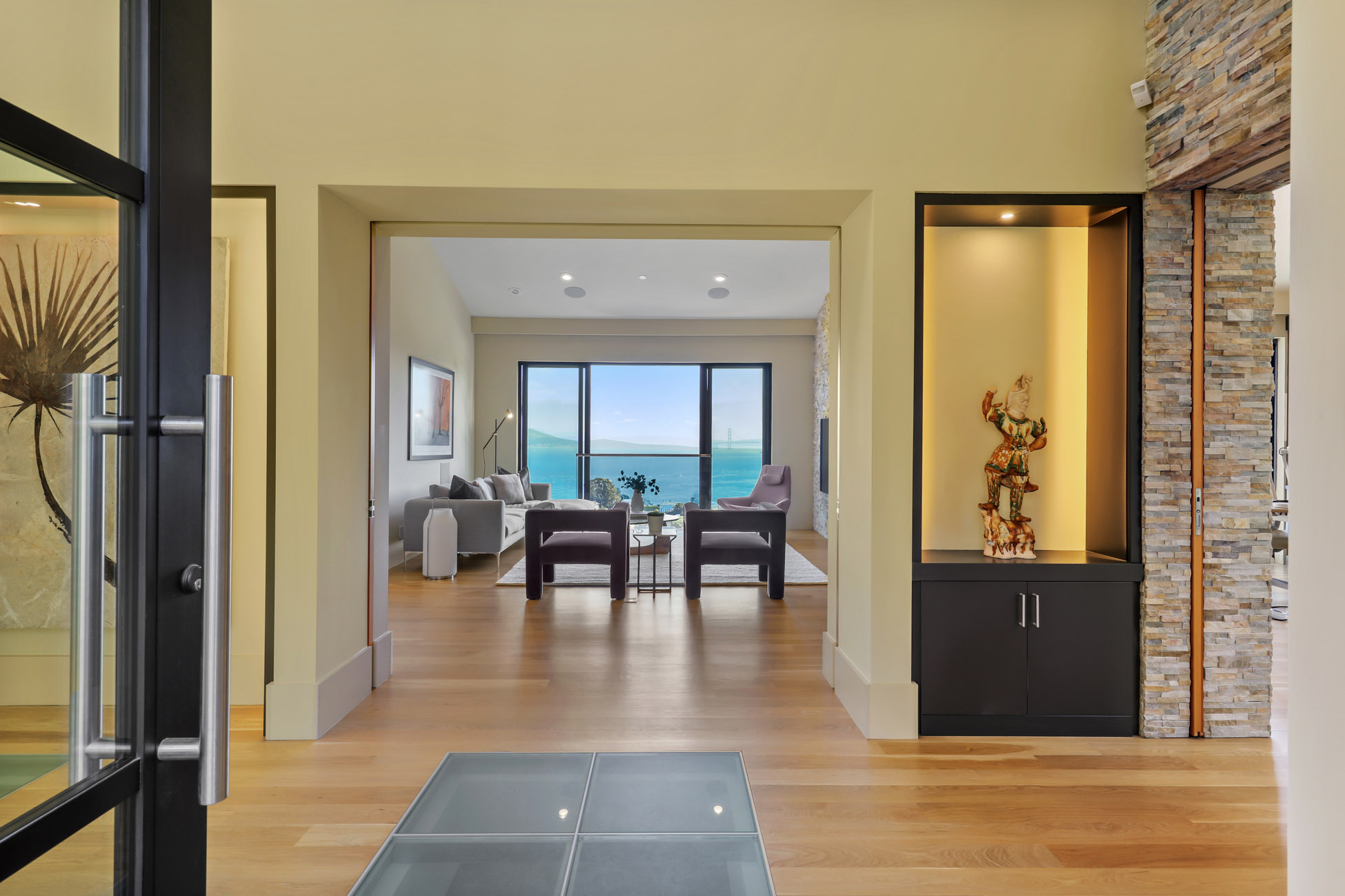 Situated on one of the most exclusive streets on the Tiburon Peninsula, this custom-built residence boasts impeccable design, extraordinary quality, and a paramount location, offering world-class panoramic views spanning San Francisco, the Golden Gate Bridge, Angel Island, to Mount Tamalpais. Constructed from an environmental point of view with the intention of maximizing the surrounding views, this timeless architectural masterpiece showcases incredible attention to detail.Construction completed in 2017 by Kasten Builders.Nothing short of spectacular, the outdoors offer a Bluestone pool with a vanishing edge design and a wave generator, an integrated jacuzzi, private outdoor shower, a gas fireplace, meandering pathways, and drought-tolerant landscaping throughout.The environmentally friendly building materials are recurring themes best exemplified by the widespread use of low-emission concrete, recycled Caesar stone countertops, no exotic wood species, PV solar system, and two 2500-gallon rainwater collection tanks for irrigation.Equipped with cutting edge technology, all features of the home are controlled by Control4 home automation system which includes video and audio in 9 different zones, lighting, heating, alarm system, pool features, electronic shades, and video surveillance.The dining room, kitchen, and office/family room feature sliding glass doors that slide away to provide seamless access to the terrace and stunning views.The sophisticated living room was thoughtfully designed featuring an intricate floor-to-ceiling ledgestone accent wall with a stunning double-sided linear gas fireplace, an LED TV, surround sound system with double subwoofer system, and sliding glass doors perfectly framing views of the Golden Gate Bridge and the bay.Grand-scale in design, the sleek, open kitchen is outfitted with vaulted ceilings, skylights, recycled Caesarstone countertops, recessed lighting and Flos Fucsia Pendants, a large center island with seating for 5, a rotating glass-window wood stove, and high-end appliances; Gaggenau induction stove, steam oven, standard oven, microwave, wine fridge, coffee maker, warming drawer, Sub-Zero refrigerator and freezer, a Miele extra quiet model dishwasher, and a walk-in pantry with an additional freezer.The casual dining area leads to the entertainment terrace featuring a built-in gas BBQ and stove, and unparalleled views of Angel Island, San Francisco, the Golden Gate Bridge, and the bay.Ideal for hosting intimate dinners or large gatherings, the formal dining room seamlessly connects with the living room, kitchen, and entertainment terrace; an original Brand van Egmond modern-art chandelier completes this beautifully designed space.The private office/family room on the main level features a desk computer-to-TV display set up, surround system with subwoofer, an intricate floor-to-ceiling ledgestone accent wall, Artemide Pendants, and a view terrace.Retreat to the lower floor and enjoy the serene sanctuary of the primary suite, with stunning views, a private covered terrace, an intricate floor-to-ceiling ledgestone accent wall, and an impressive custom closet with a Louis Poulsen Pendant. The lavish spa-style primary bathroom features a jacuzzi bathtub, a steam shower, swiss-made mirror cabinets, a towel warming rack, and a spiral staircase leading to the exercise room.The spacious in-law-unit (4th bedroom) with its own private outdoor entrance features a patio, a bathroom with a shower/tub combination and towel warming racks, a covered terrace, and a kitchenette with a Miele dishwasher, Perlick drawer fridge, and a Bosch microwave cooking oven; the interior door can be locked from both sides, making it ideal for live-in personnel, an au-pair, or guests.The two additional bedrooms offer spectacular views, wonderful natural light, and a beautiful shared bathroom with a large stall shower; one of the bedrooms has a staircase that leads to the pool and rear yard.2 car garage with elevator access to all levels of the residence.Laundry room with built-in cabinetry, a sink, and washer/dryer.This one-of-a-kind custom residence offers a modern balance of quality, elegance, and environmental efficiency. An outdoor person’s dream with the finest mountain top trails in Marin County only moments away. Located 5 minutes down the hill to Tiburon’s Shoreline Park and Main Street with San Francisco and Angel Island ferry service, trendy new restaurants and shops including the new Michael Mina Bungalow Kitchen, Squalo Wine Bar, Malibu Farm, Caviar Co. tasting cafe and Sam’s Anchor Cafe. Whether site seeing, dining, or commuting, you are sure to enjoy the seaside lifestyle of the Belvedere Tiburon Peninsula.*NOTE: Personal art collection included in the price - details upon requestAdditional Features and Improvements:• Control 4 Home Automation System - This system allows the following features to run through one unified interface: video and audio in 9 different zones (including audio on the pool deck) lighting, heating, alarm system, pool features, electronic shades on all South facing windows (and additionally black-out shades in the bedrooms), video surveillance and entrance gates. This system is accessed and controlled through the Control 4 smartphone app, the dedicated iPads, programmed keypad switches, and dedicated remote controls• Security System - Alarm system with motion sensors are installed throughout the home with additional security cameras installed on the exterior and in some parts on the home• Energy Security - An emergency off-grid electric supply is provided by the transformer-less SMA inverter, providing power to phones/computers and the refrigerator during the daytime while keeping energy consumption at a minimum• Solar Panels - 6.8kW PV solar system on the roof• Rain Water Collection Tanks - two 2,500 gallon rainwater collection tanks are used for the garden irrigation• Automated Smart Irrigation System - Drought tolerant landsca