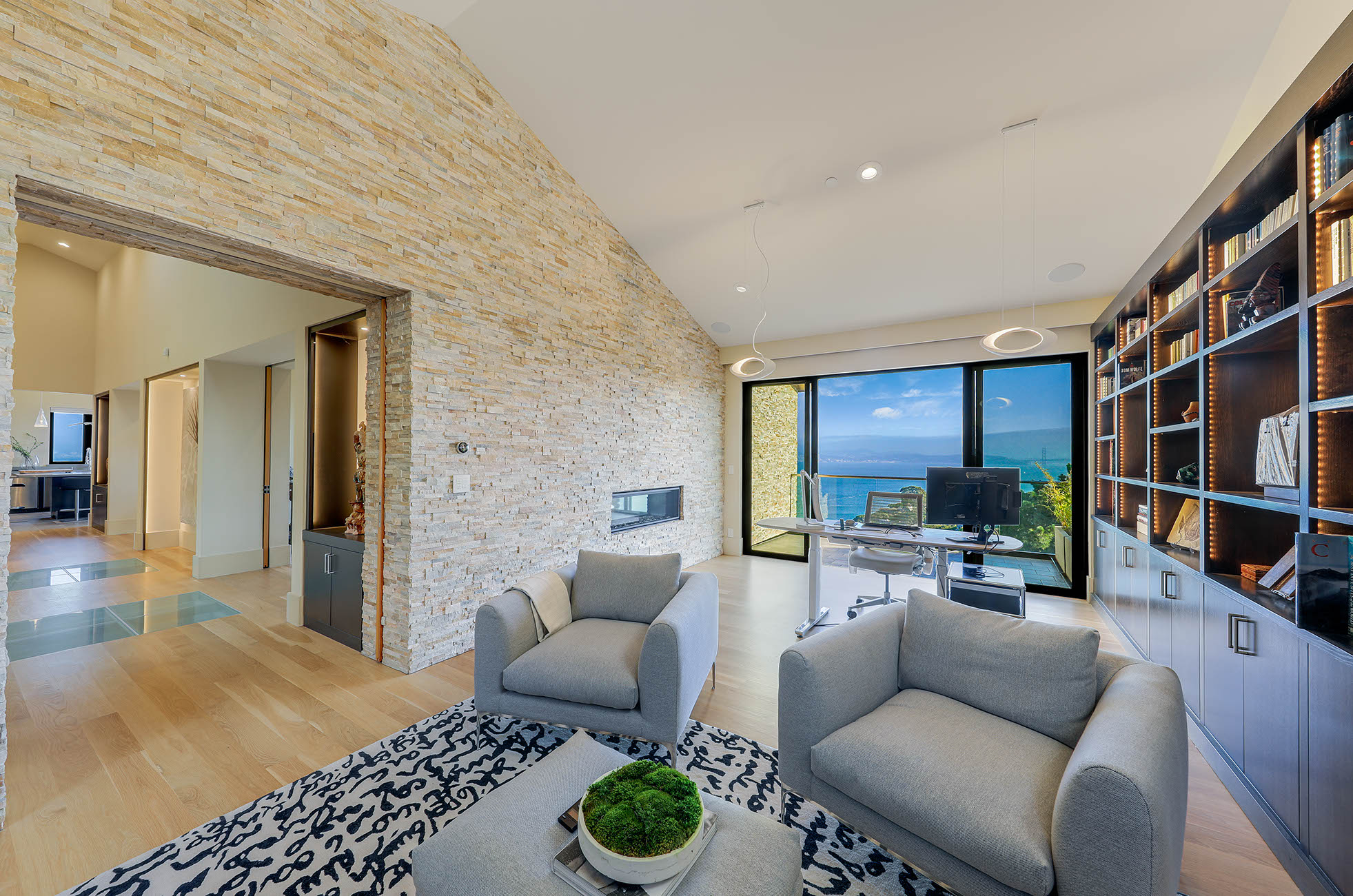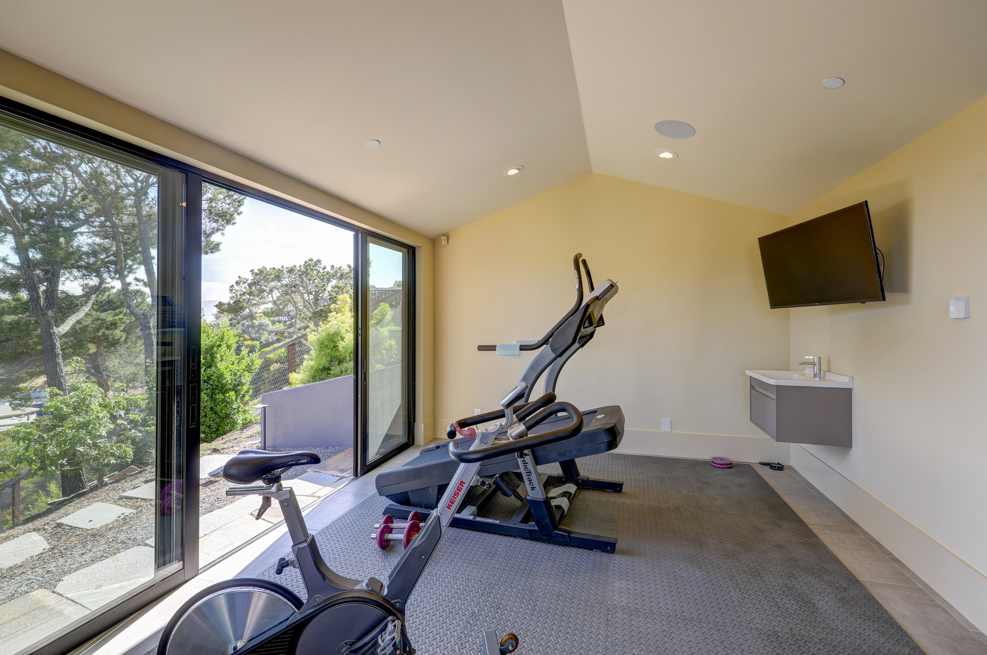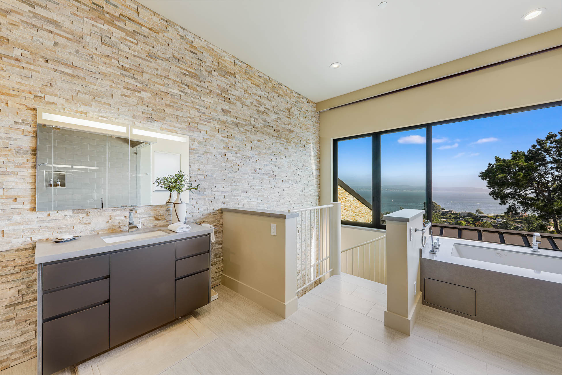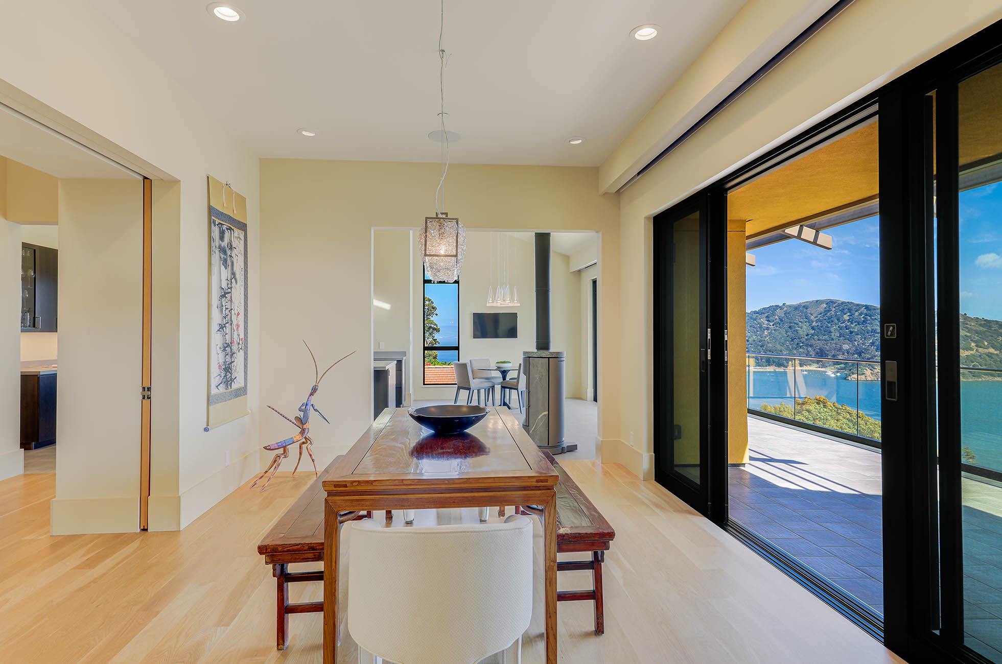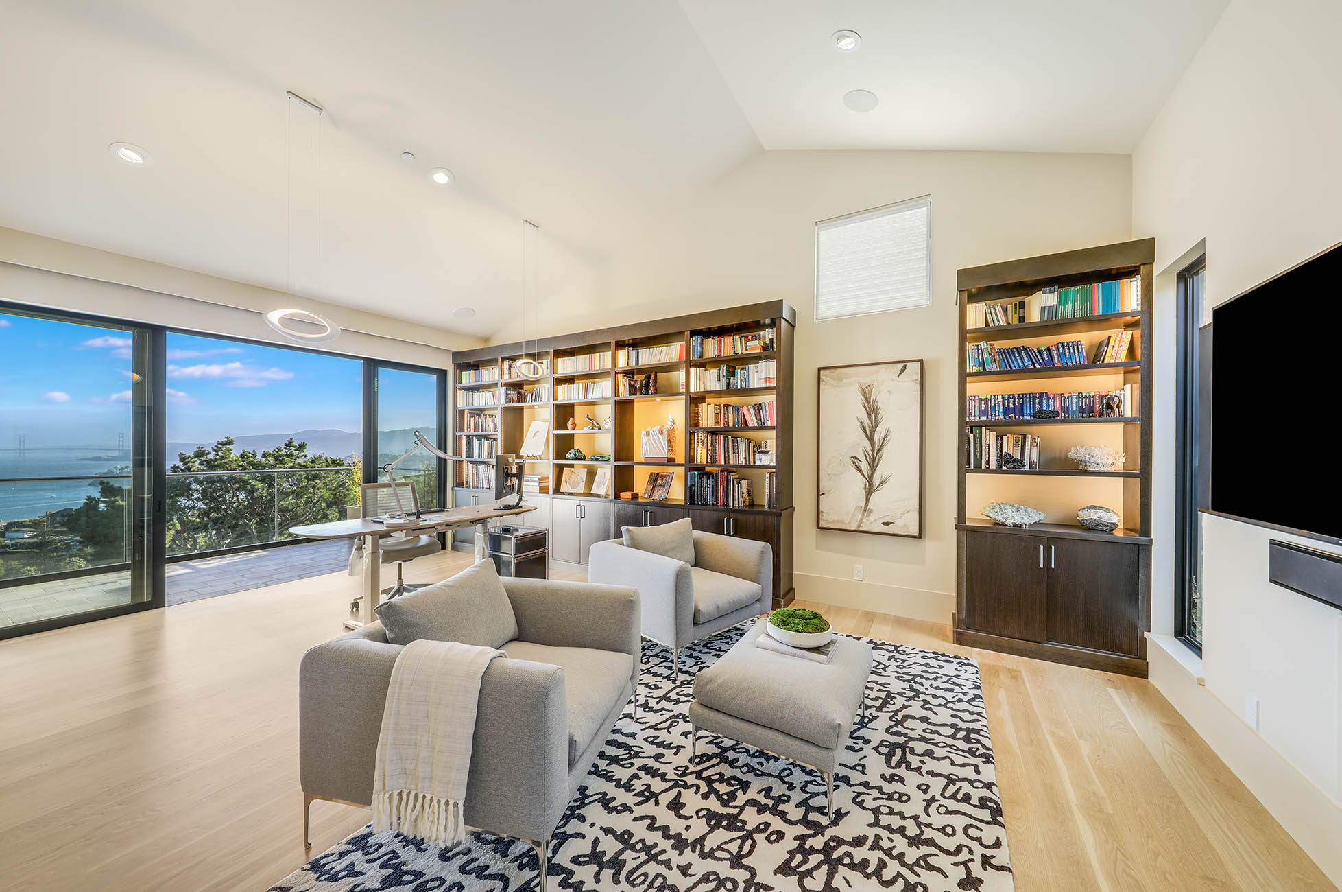 Situated on one of the most exclusive streets on the Tiburon Peninsula, this custom-built residence boasts impeccable design, extraordinary quality, and a paramount location, offering world-class panoramic views spanning San Francisco, the Golden Gate Bridge, Angel Island, to Mount Tamalpais. Constructed from an environmental point of view with the intention of maximizing the surrounding views, this timeless architectural masterpiece showcases incredible attention to detail.Construction completed in 2017 by Kasten Builders.Nothing short of spectacular, the outdoors offer a Bluestone pool with a vanishing edge design and a wave generator, an integrated jacuzzi, private outdoor shower, a gas fireplace, meandering pathways, and drought-tolerant landscaping throughout.The environmentally friendly building materials are recurring themes best exemplified by the widespread use of low-emission concrete, recycled Caesar stone countertops, no exotic wood species, PV solar system, and two 2500-gallon rainwater collection tanks for irrigation.Equipped with cutting edge technology, all features of the home are controlled by Control4 home automation system which includes video and audio in 9 different zones, lighting, heating, alarm system, pool features, electronic shades, and video surveillance.The dining room, kitchen, and office/family room feature sliding glass doors that slide away to provide seamless access to the terrace and stunning views.The sophisticated living room was thoughtfully designed featuring an intricate floor-to-ceiling ledgestone accent wall with a stunning double-sided linear gas fireplace, an LED TV, surround sound system with double subwoofer system, and sliding glass doors perfectly framing views of the Golden Gate Bridge and the bay.Grand-scale in design, the sleek, open kitchen is outfitted with vaulted ceilings, skylights, recycled Caesarstone countertops, recessed lighting and Flos Fucsia Pendants, a large center island with seating for 5, a rotating glass-window wood stove, and high-end appliances; Gaggenau induction stove, steam oven, standard oven, microwave, wine fridge, coffee maker, warming drawer, Sub-Zero refrigerator and freezer, a Miele extra quiet model dishwasher, and a walk-in pantry with an additional freezer.The casual dining area leads to the entertainment terrace featuring a built-in gas BBQ and stove, and unparalleled views of Angel Island, San Francisco, the Golden Gate Bridge, and the bay.Ideal for hosting intimate dinners or large gatherings, the formal dining room seamlessly connects with the living room, kitchen, and entertainment terrace; an original Brand van Egmond modern-art chandelier completes this beautifully designed space.The private office/family room on the main level features a desk computer-to-TV display set up, surround system with subwoofer, an intricate floor-to-ceiling ledgestone accent wall, Artemide Pendants, and a view terrace.Retreat to the lower floor and enjoy the serene sanctuary of the primary suite, with stunning views, a private covered terrace, an intricate floor-to-ceiling ledgestone accent wall, and an impressive custom closet with a Louis Poulsen Pendant. The lavish spa-style primary bathroom features a jacuzzi bathtub, a steam shower, swiss-made mirror cabinets, a towel warming rack, and a spiral staircase leading to the exercise room.The spacious in-law-unit (4th bedroom) with its own private outdoor entrance features a patio, a bathroom with a shower/tub combination and towel warming racks, a covered terrace, and a kitchenette with a Miele dishwasher, Perlick drawer fridge, and a Bosch microwave cooking oven; the interior door can be locked from both sides, making it ideal for live-in personnel, an au-pair, or guests.The two additional bedrooms offer spectacular views, wonderful natural light, and a beautiful shared bathroom with a large stall shower; one of the bedrooms has a staircase that leads to the pool and rear yard.2 car garage with elevator access to all levels of the residence.Laundry room with built-in cabinetry, a sink, and washer/dryer.This one-of-a-kind custom residence offers a modern balance of quality, elegance, and environmental efficiency. An outdoor person’s dream with the finest mountain top trails in Marin County only moments away. Located 5 minutes down the hill to Tiburon’s Shoreline Park and Main Street with San Francisco and Angel Island ferry service, trendy new restaurants and shops including the new Michael Mina Bungalow Kitchen, Squalo Wine Bar, Malibu Farm, Caviar Co. tasting cafe and Sam’s Anchor Cafe. Whether site seeing, dining, or commuting, you are sure to enjoy the seaside lifestyle of the Belvedere Tiburon Peninsula.*NOTE: Personal art collection included in the price - details upon requestAdditional Features and Improvements:• Control 4 Home Automation System - This system allows the following features to run through one unified interface: video and audio in 9 different zones (including audio on the pool deck) lighting, heating, alarm system, pool features, electronic shades on all South facing windows (and additionally black-out shades in the bedrooms), video surveillance and entrance gates. This system is accessed and controlled through the Control 4 smartphone app, the dedicated iPads, programmed keypad switches, and dedicated remote controls• Security System - Alarm system with motion sensors are installed throughout the home with additional security cameras installed on the exterior and in some parts on the home• Energy Security - An emergency off-grid electric supply is provided by the transformer-less SMA inverter, providing power to phones/computers and the refrigerator during the daytime while keeping energy consumption at a minimum• Solar Panels - 6.8kW PV solar system on the roof• Rain Water Collection Tanks - two 2,500 gallon rainwater collection tanks are used for the garden irrigation• Automated Smart Irrigation System - Drought tolerant landsca