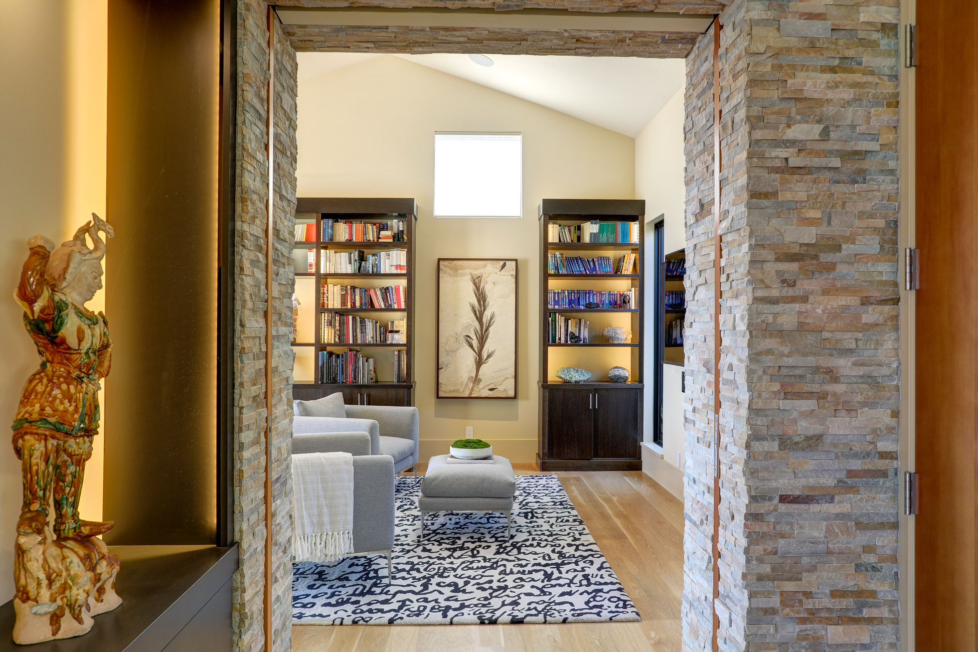 The Six Shooter residence seamlessly floats in harmony with the natural landscape through carefully selected rustic materials, such as rubble stone, concrete and raw steel. Perched high on the gentle hillside, this home offers panoramic views and ultimate privacy amidst ancient saguaros.