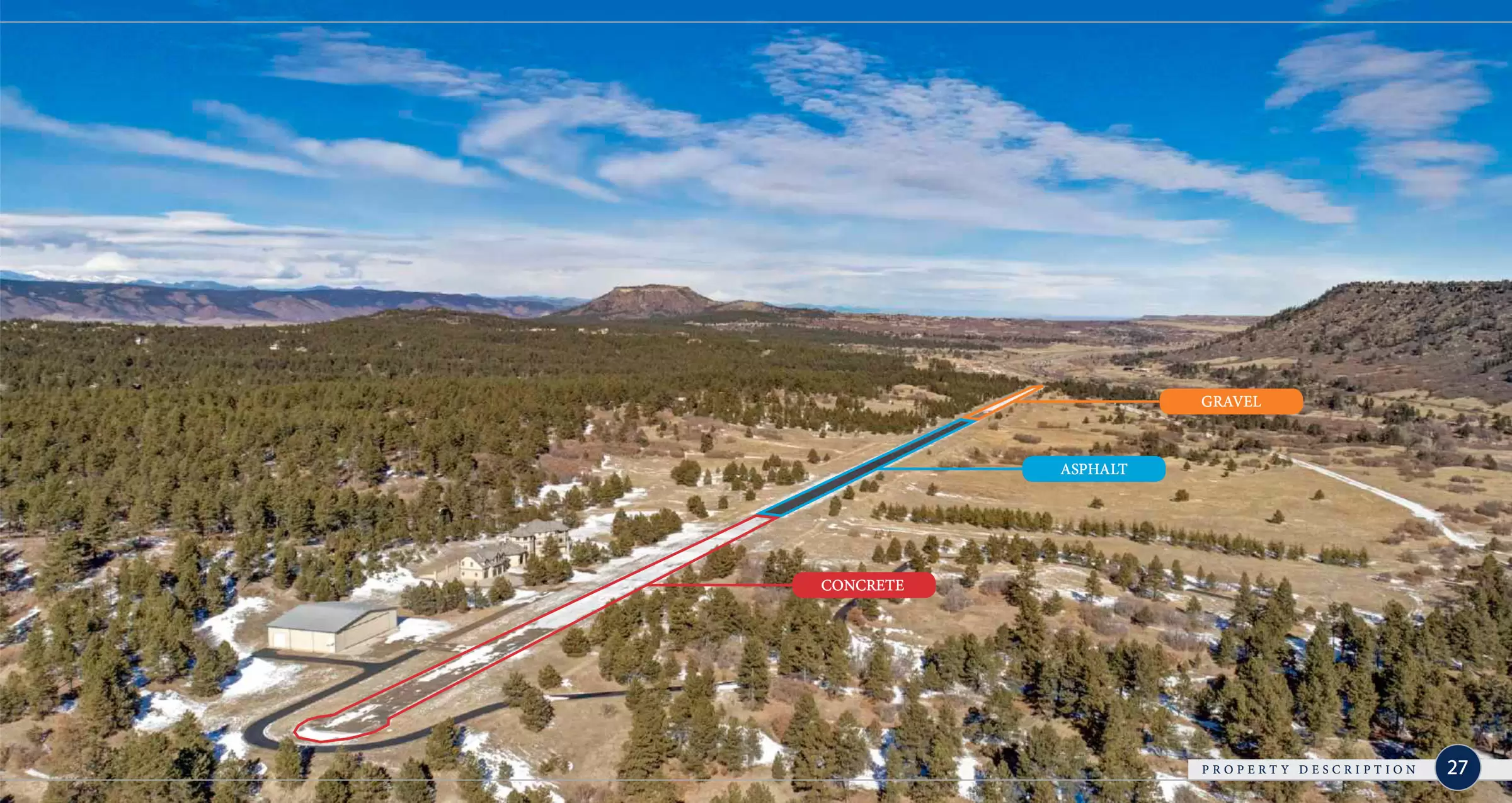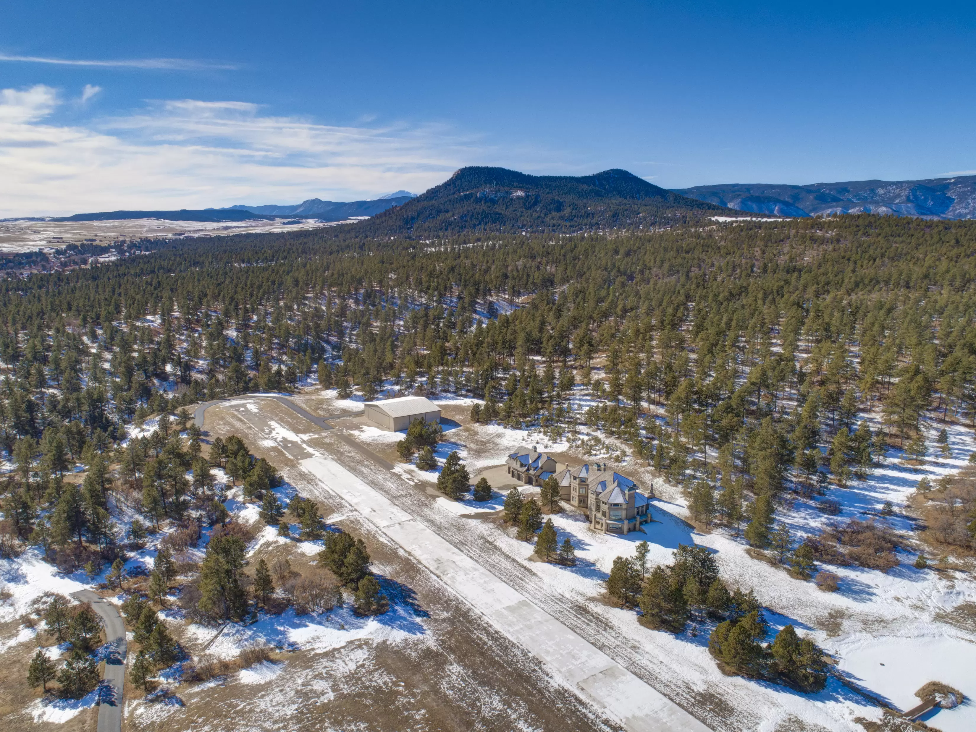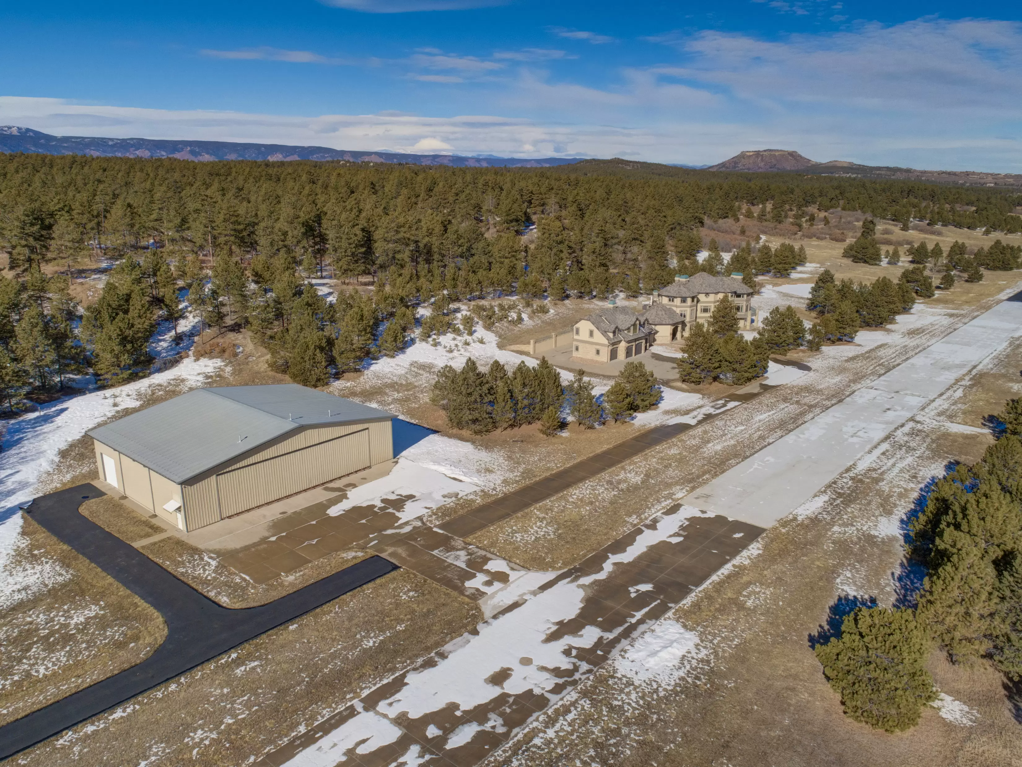 Private home and airport on 196+ acres6,869-Square-Foot House with 5 Bedrooms and 5 Bathrooms90' x 70' hangarCan accommodate Turbo Prop and Piston AircraftPerry park Airport (FAA Identifier CO93)Field Elevation 6780'Runway Length 5700' (3,000' hard surface x 40)