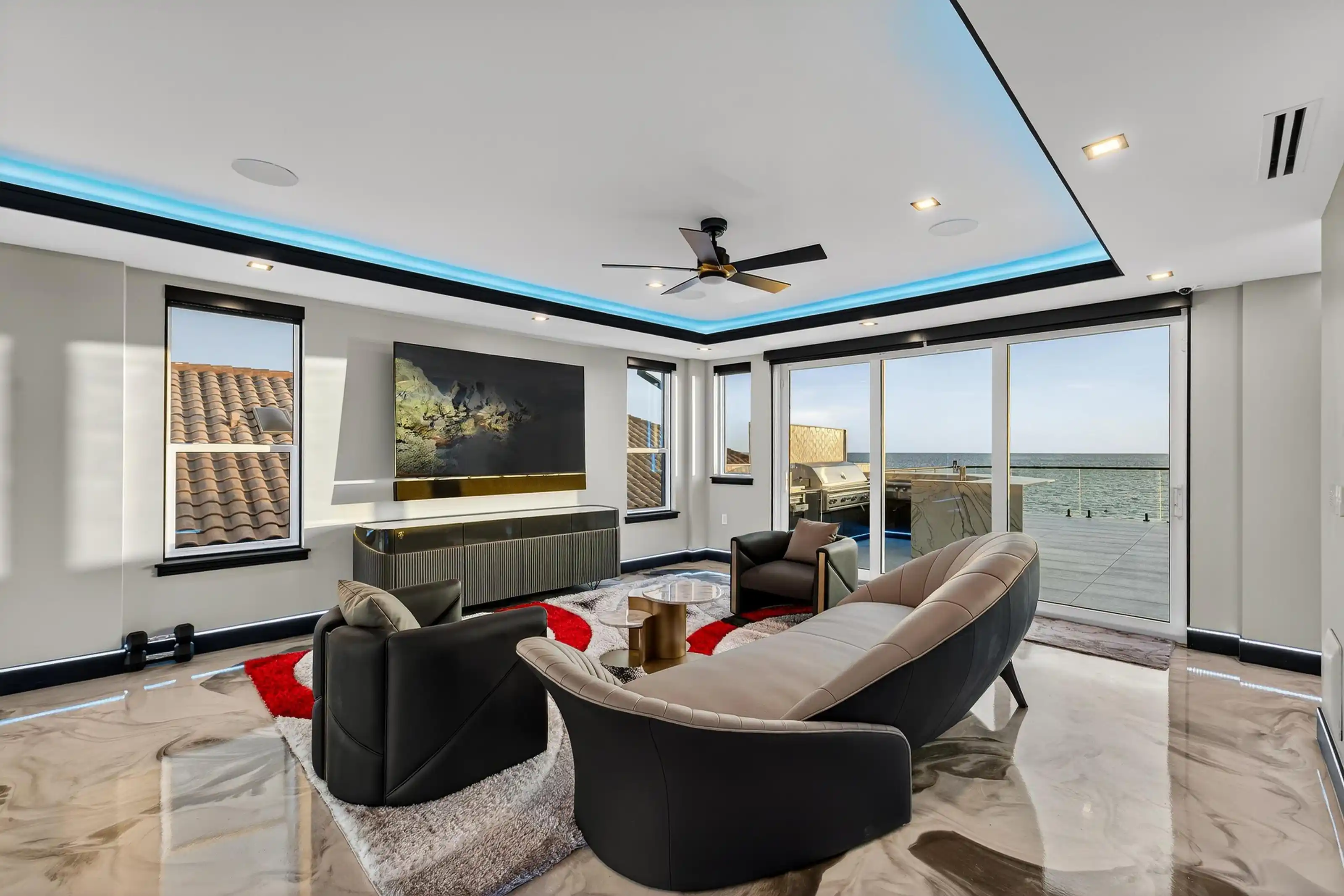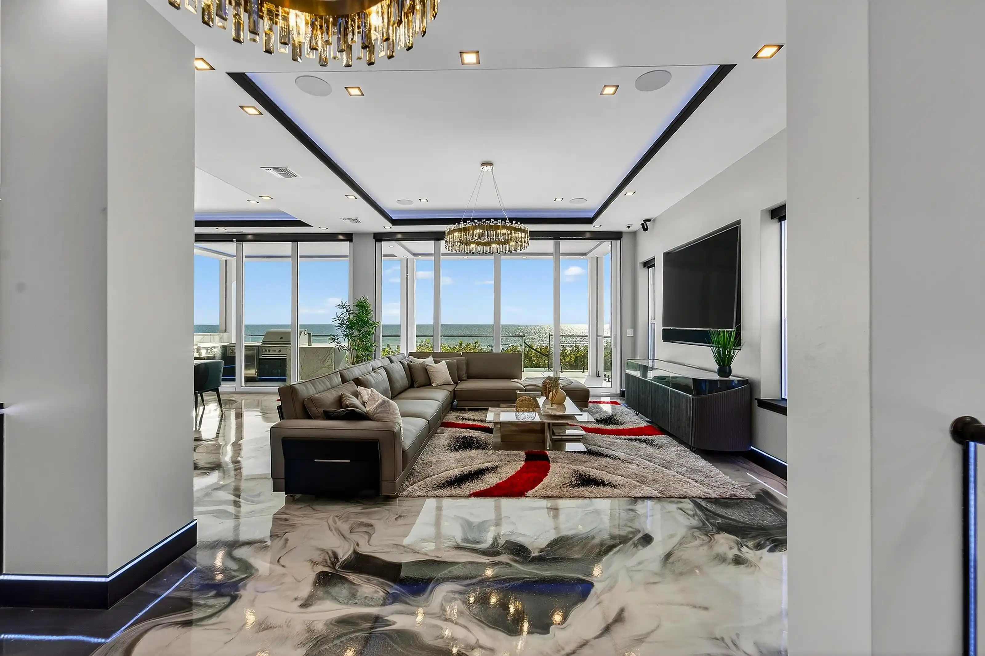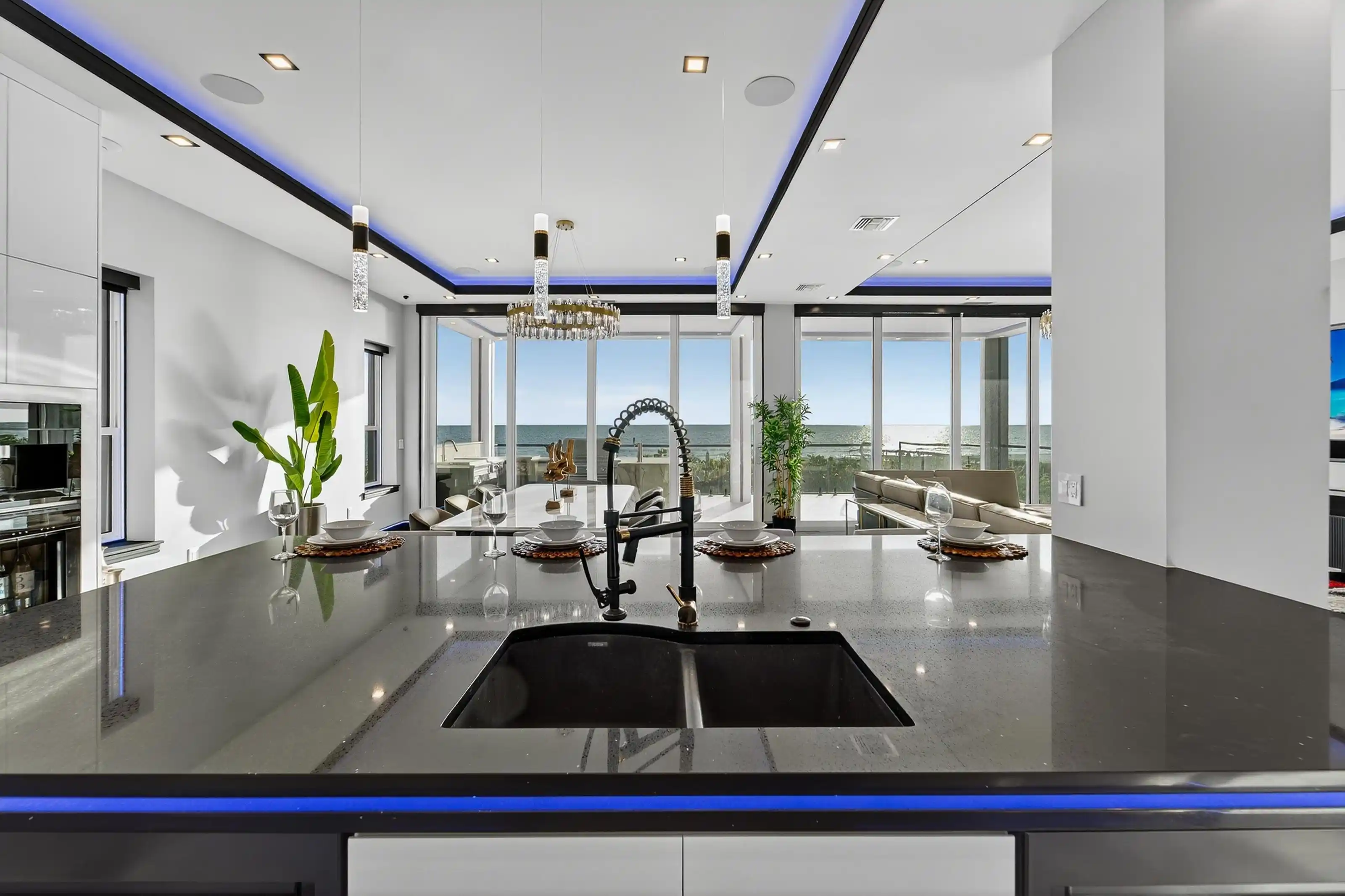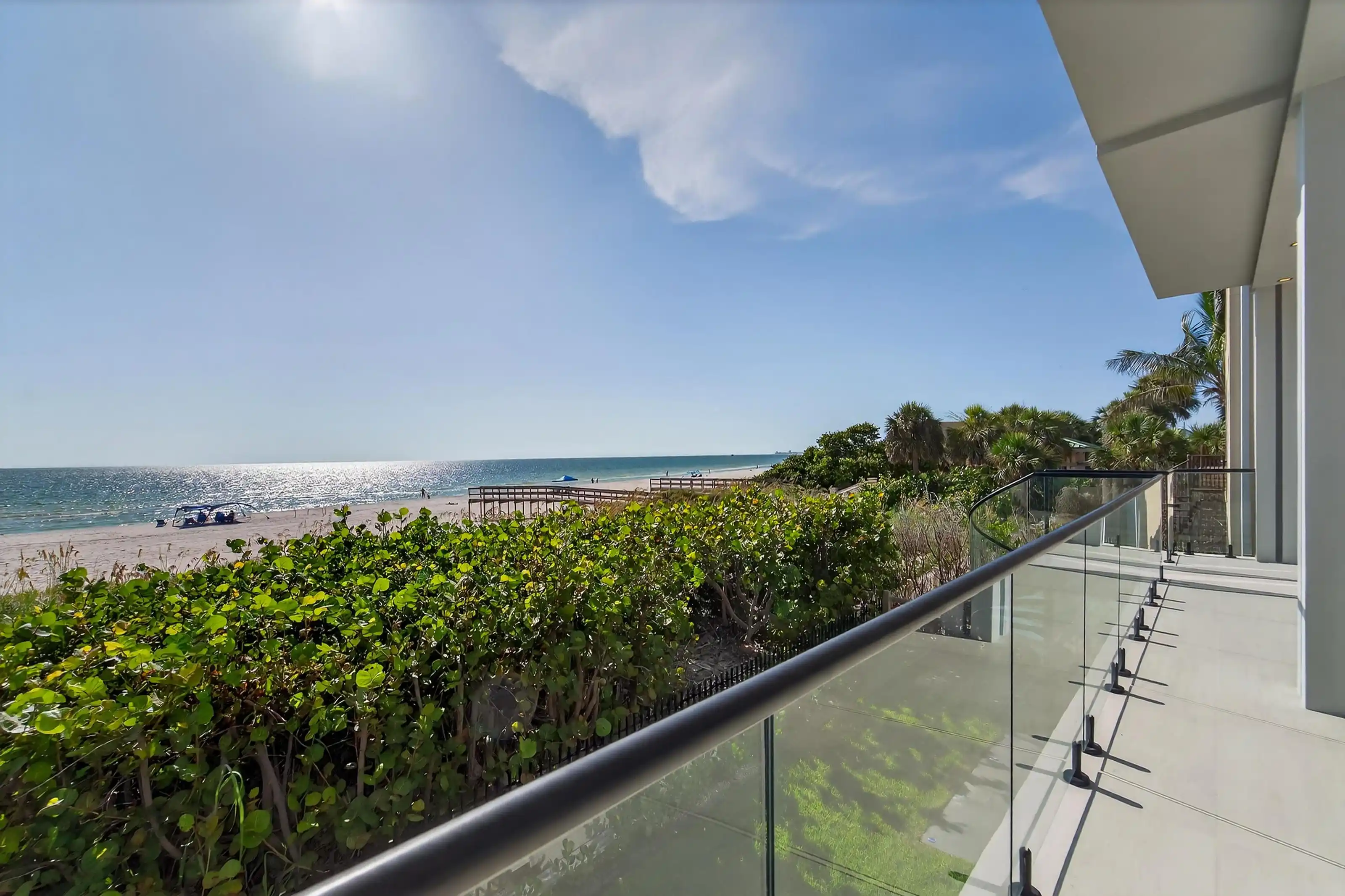 Experience beachfront luxury in this 2025 custom concrete-built home on Treasure Island. Elevated 18 feet above sea level, this 5-bed, 7-bath residence offers 5,198 sq ft of high-end living, complete with a 32kW generator, Tesla chargers, and rooftop infinity pool. The main level features open living, a chef’s kitchen with double ovens, espresso machine, pot filler, and walk-in pantry.