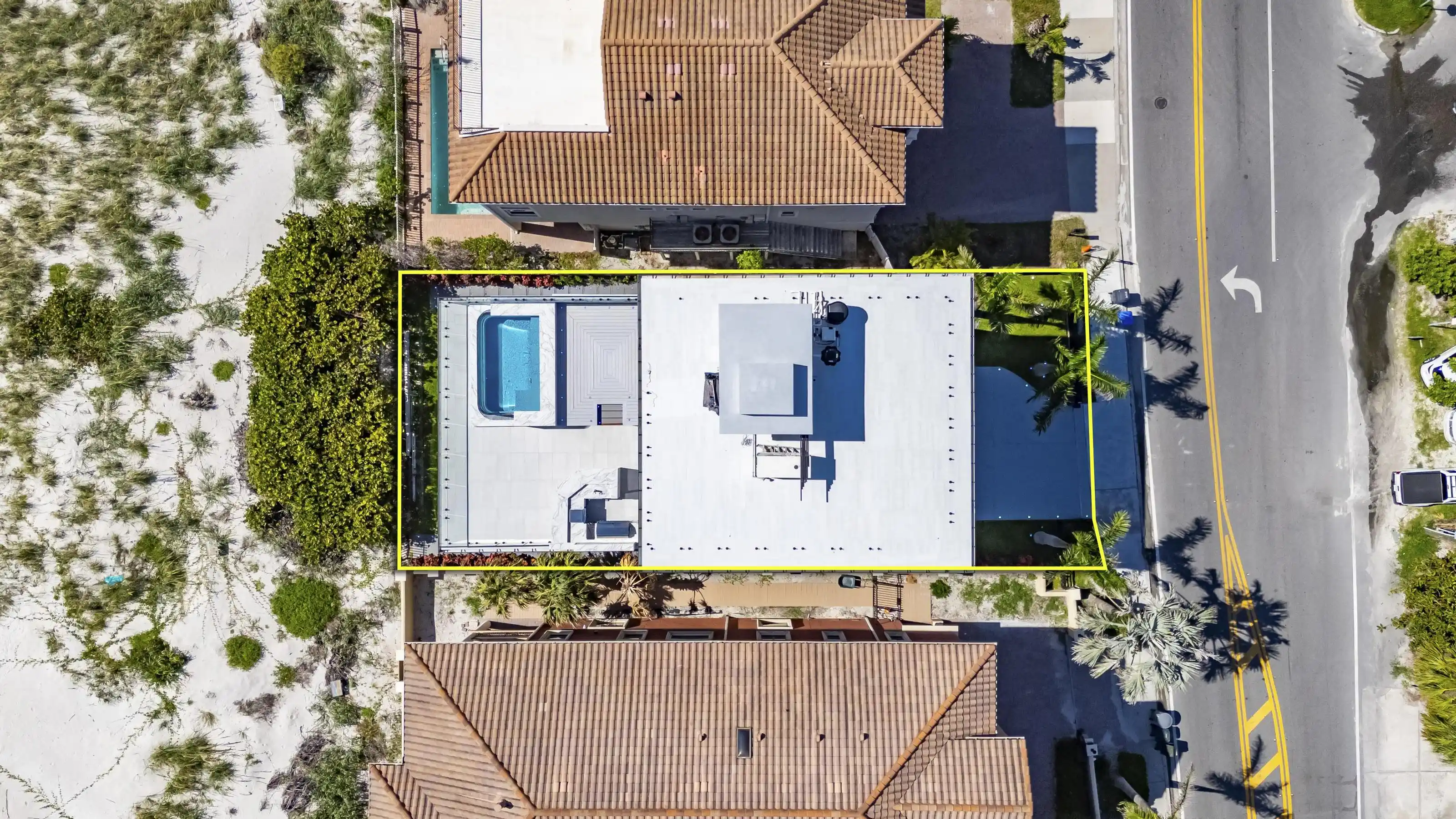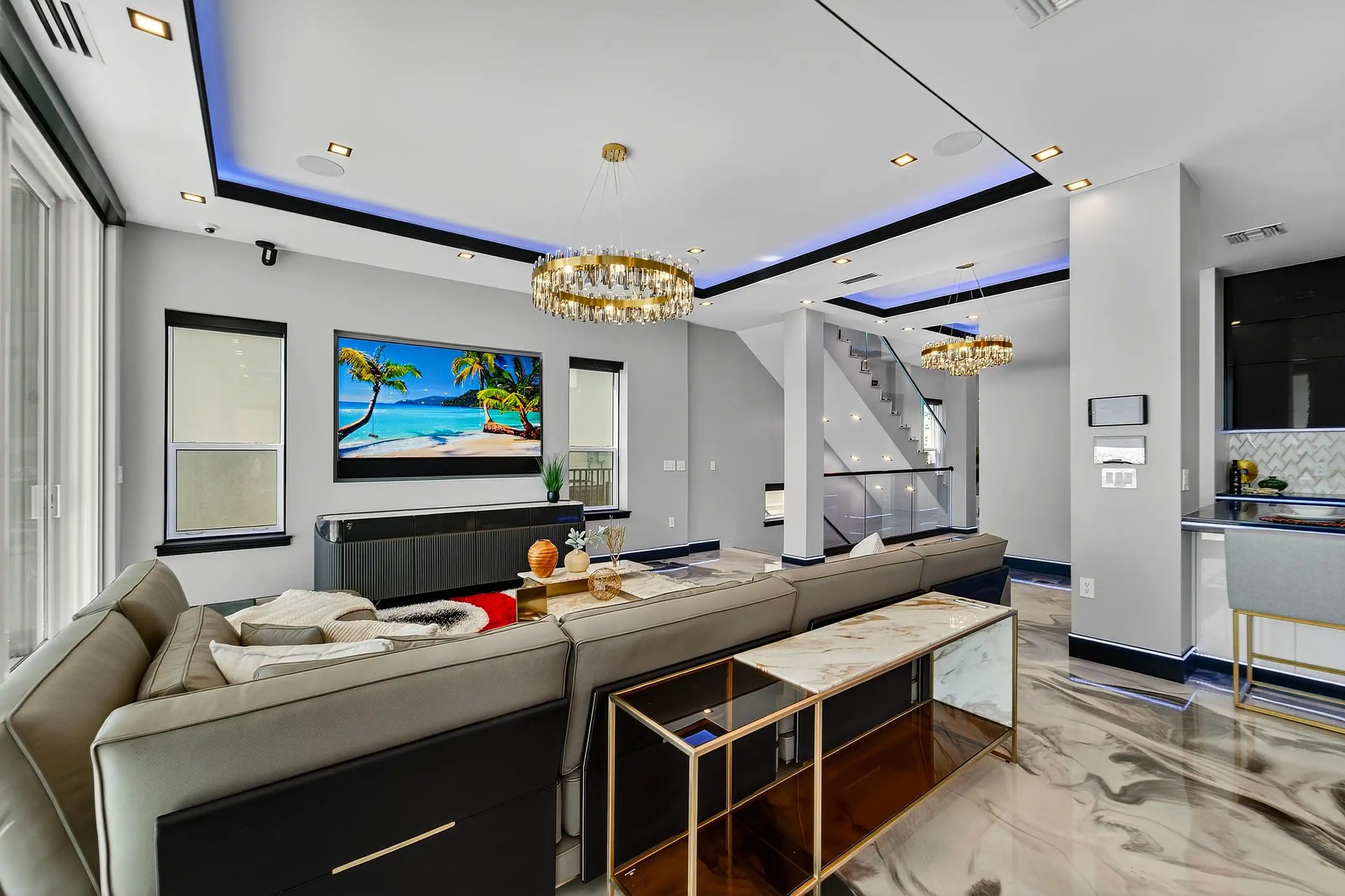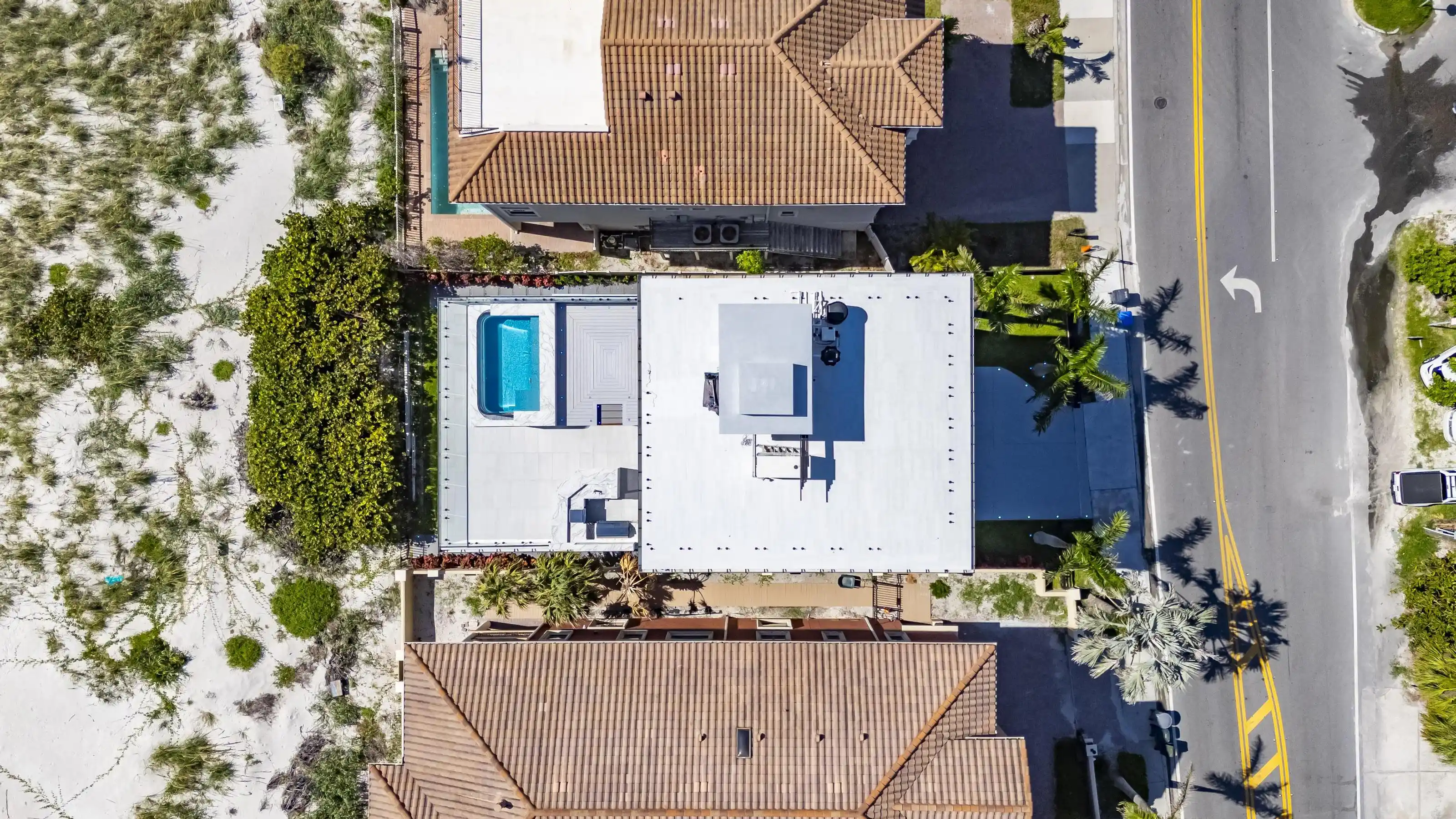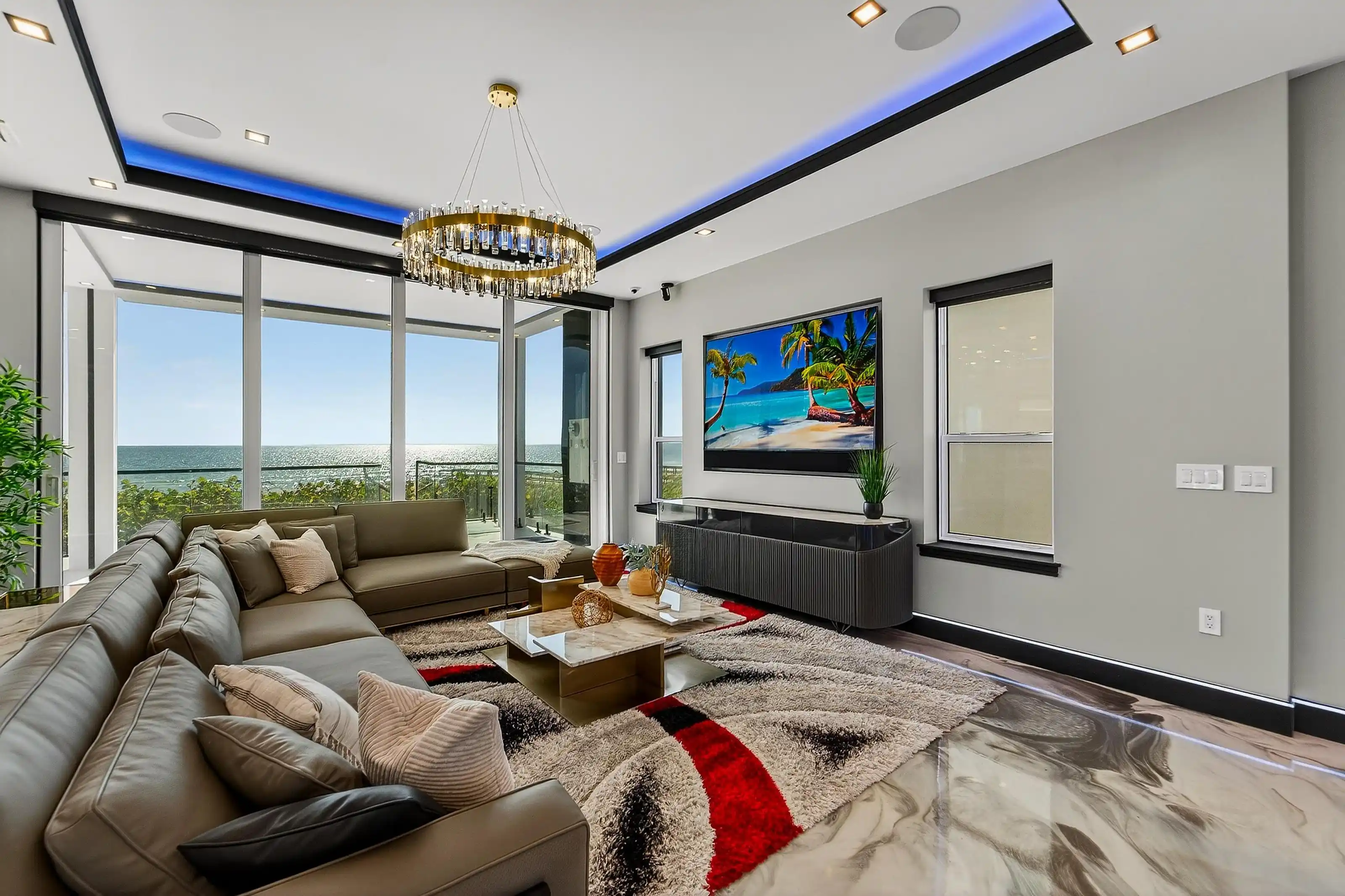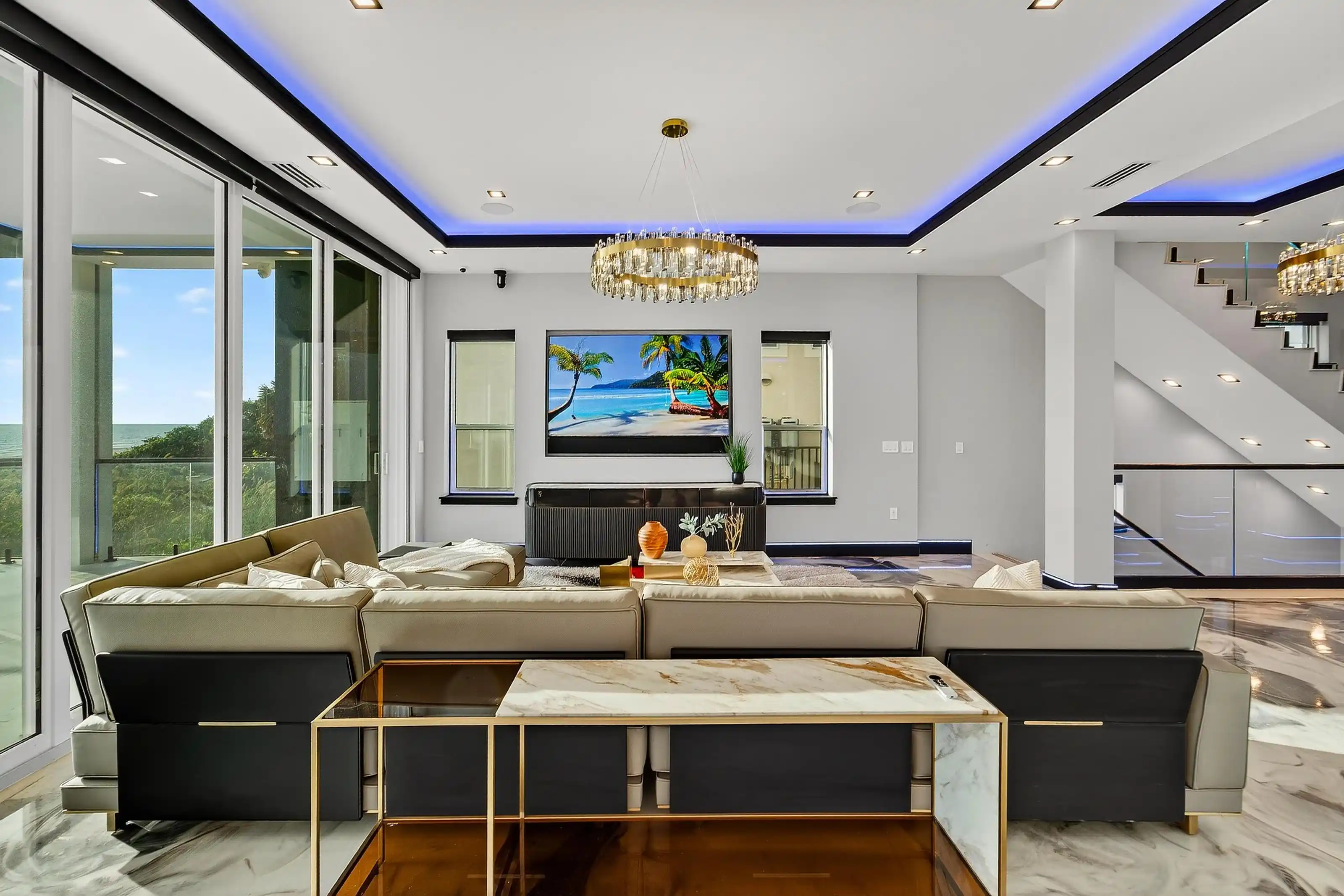 Experience beachfront luxury in this 2025 custom concrete-built home on Treasure Island. Elevated 18 feet above sea level, this 5-bed, 7-bath residence offers 5,198 sq ft of high-end living, complete with a 32kW generator, Tesla chargers, and rooftop infinity pool. The main level features open living, a chef’s kitchen with double ovens, espresso machine, pot filler, and walk-in pantry.
