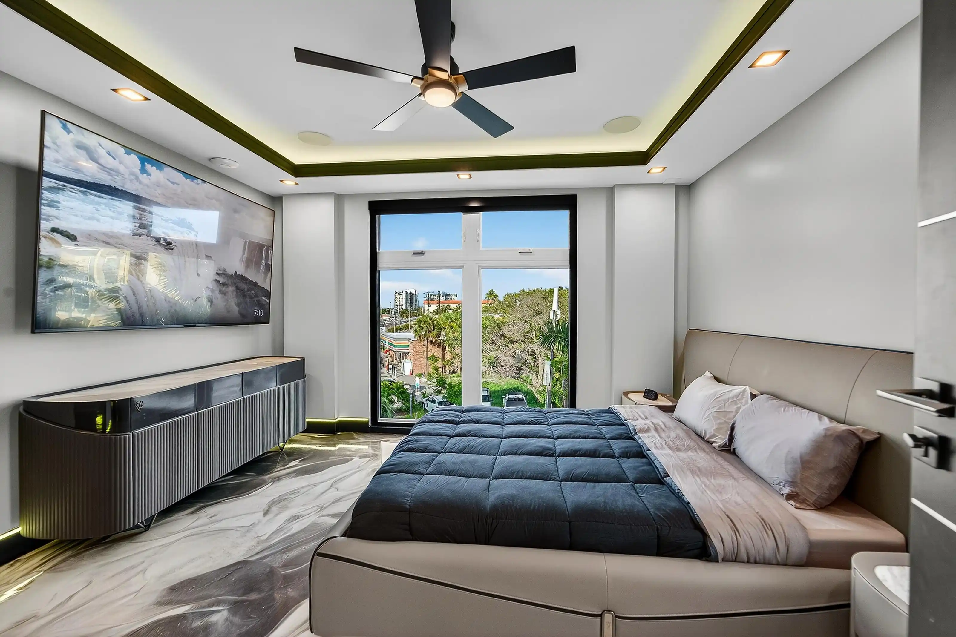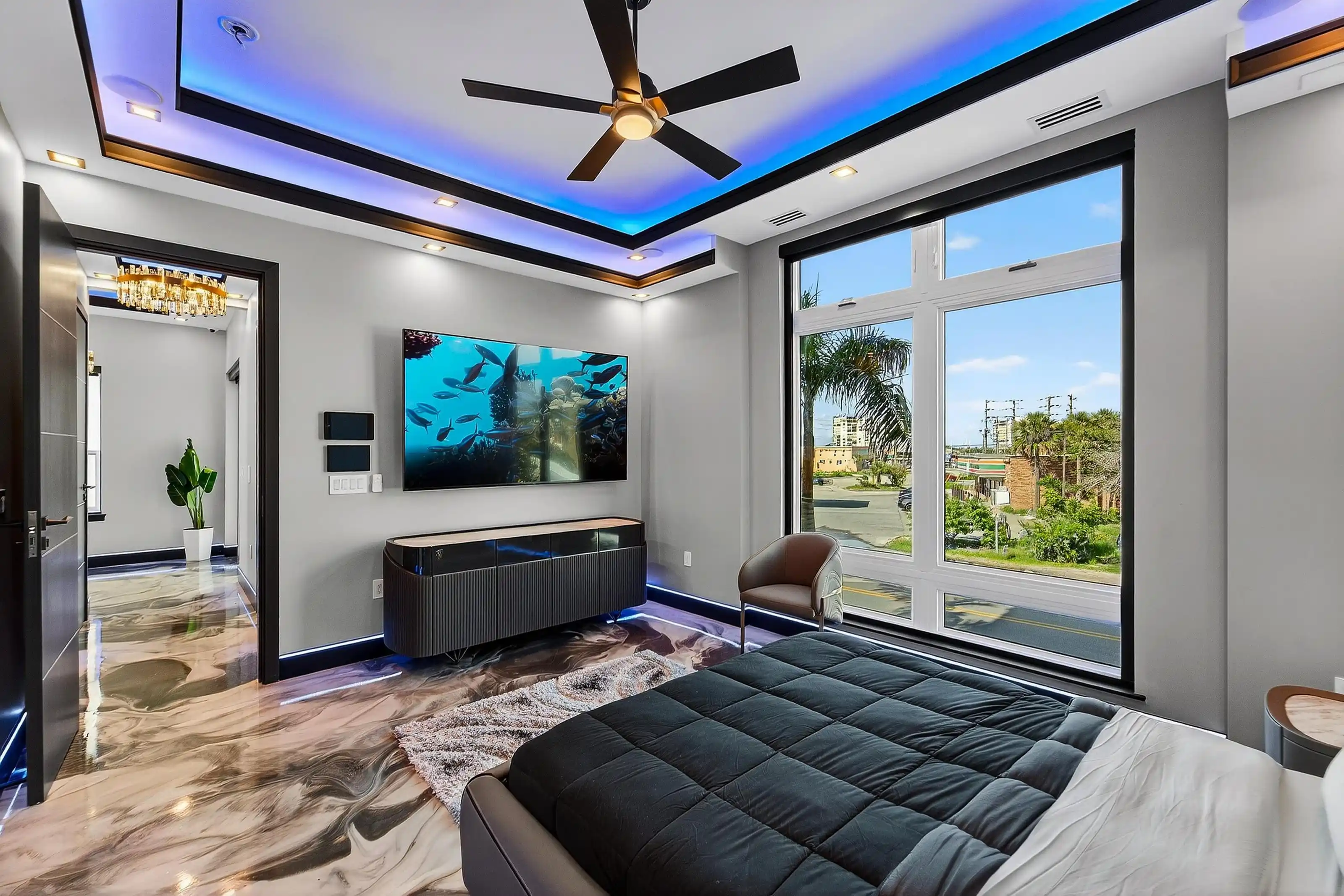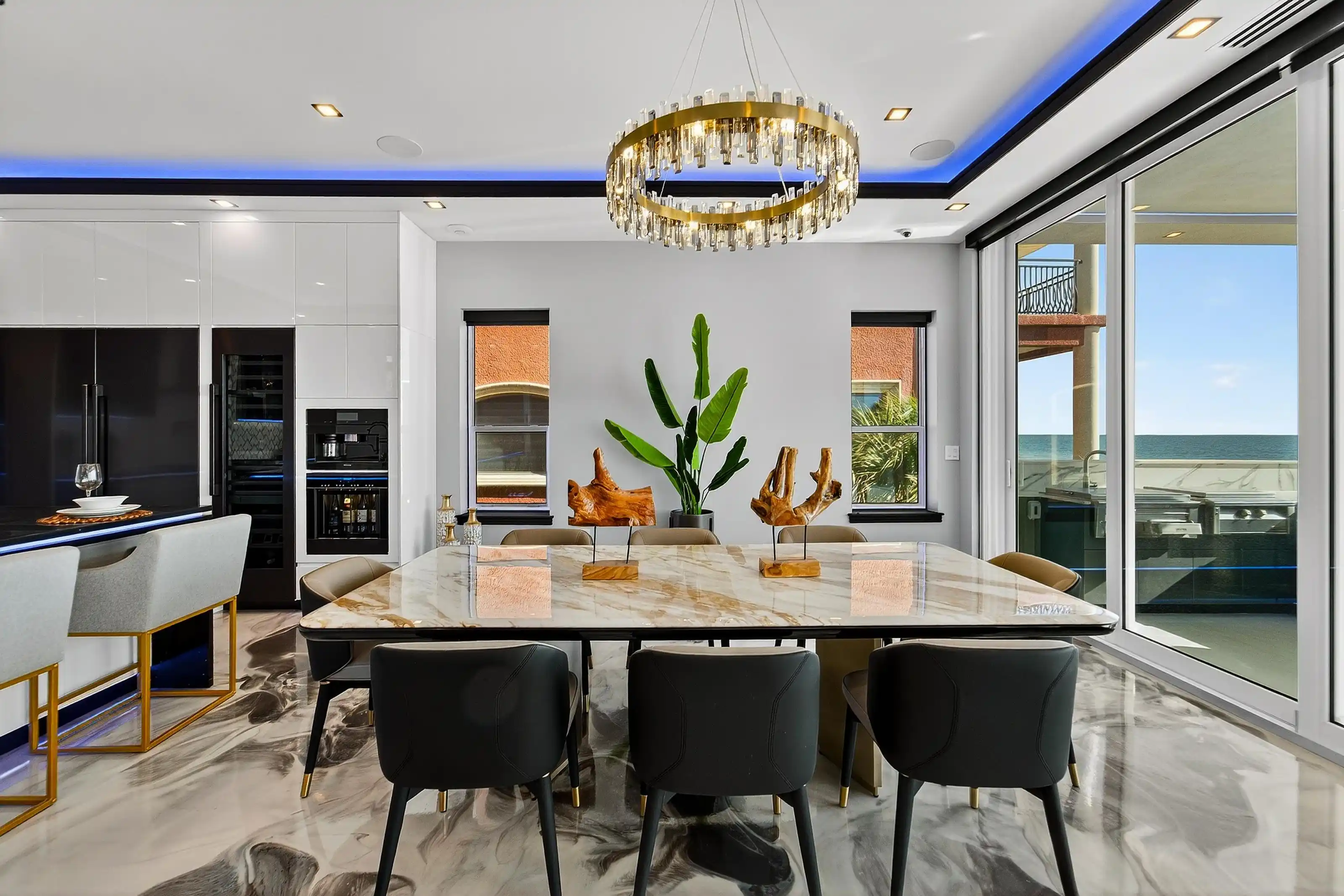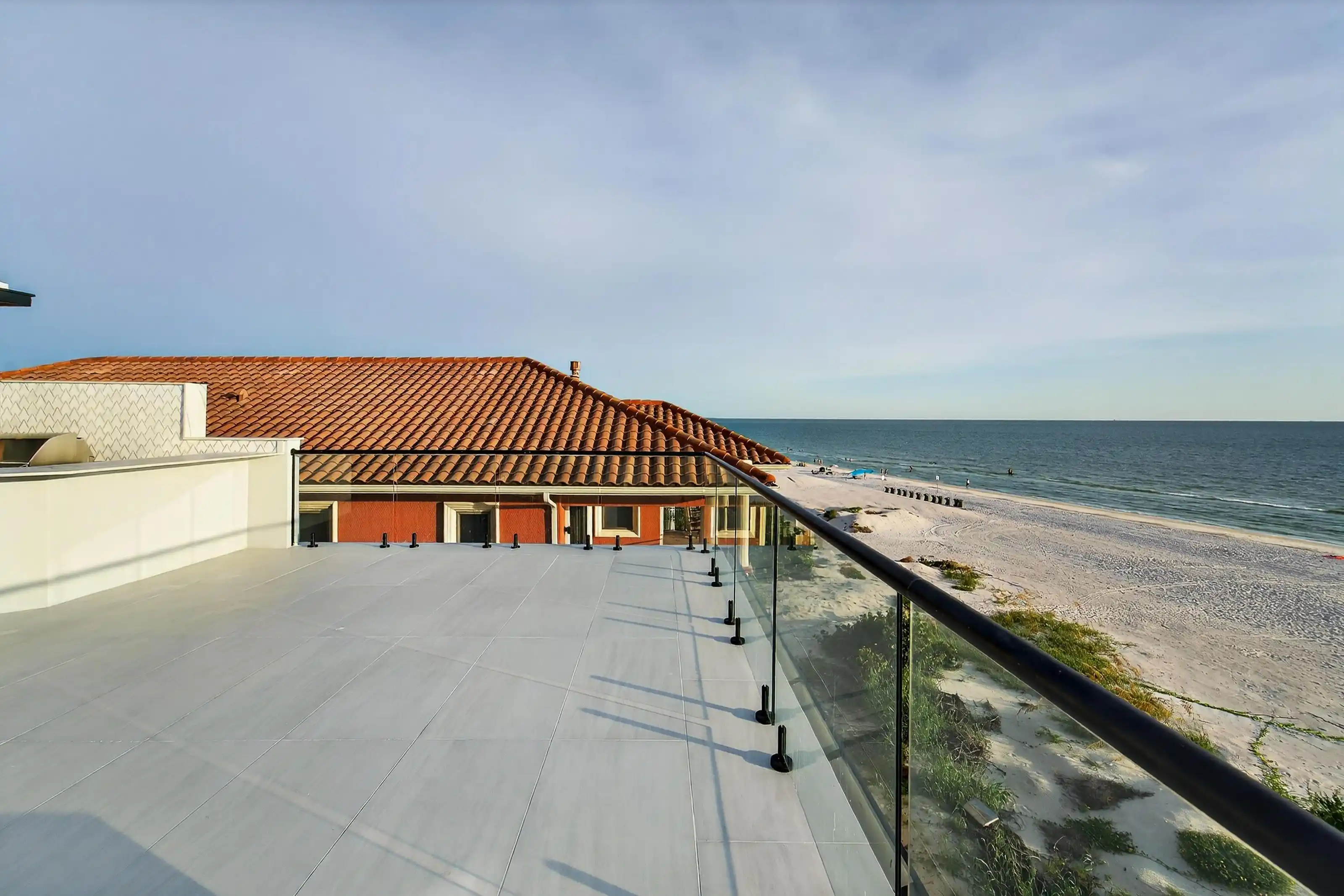 Experience beachfront luxury in this 2025 custom concrete-built home on Treasure Island. Elevated 18 feet above sea level, this 5-bed, 7-bath residence offers 5,198 sq ft of high-end living, complete with a 32kW generator, Tesla chargers, and rooftop infinity pool. The main level features open living, a chef’s kitchen with double ovens, espresso machine, pot filler, and walk-in pantry.