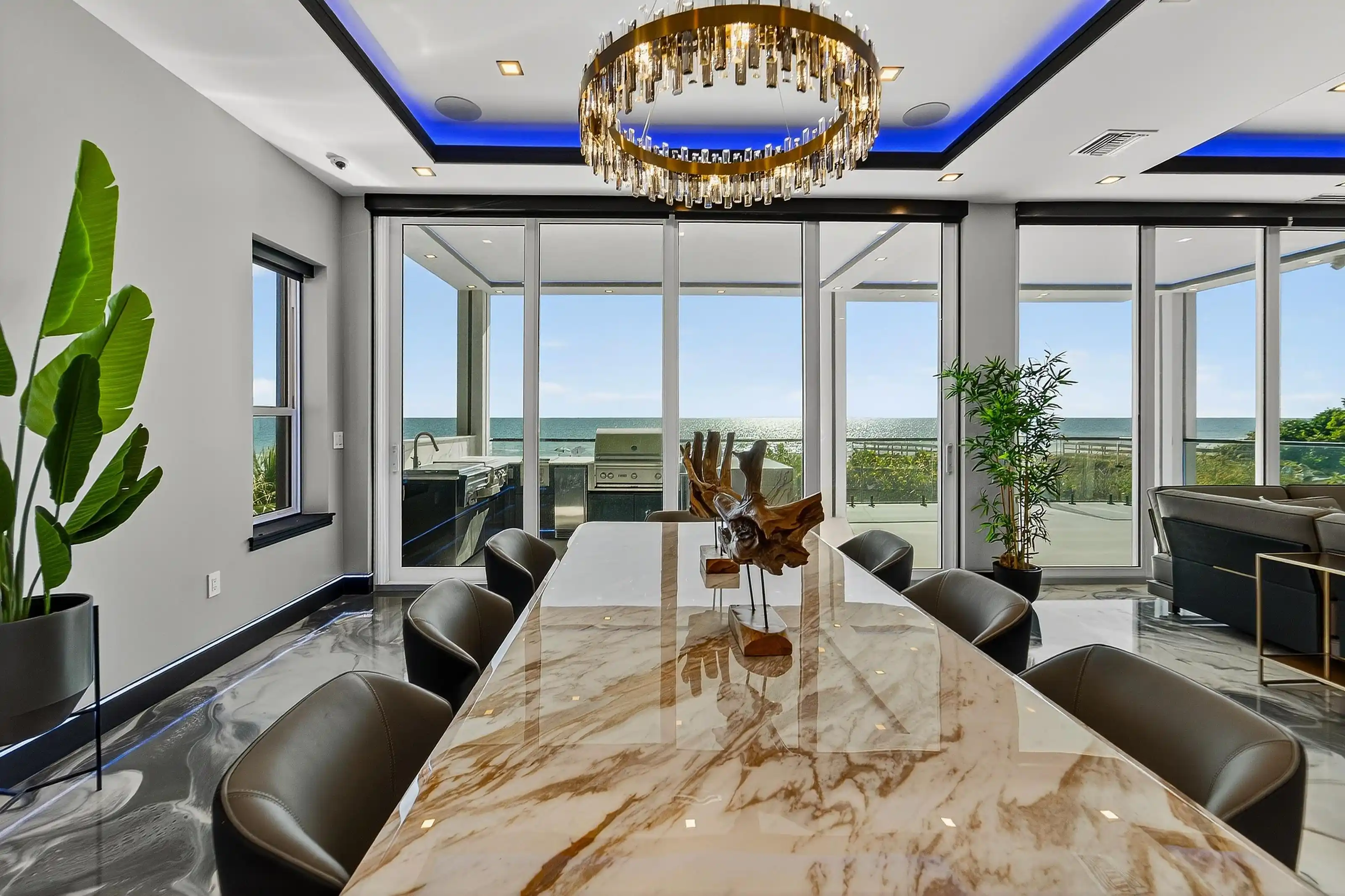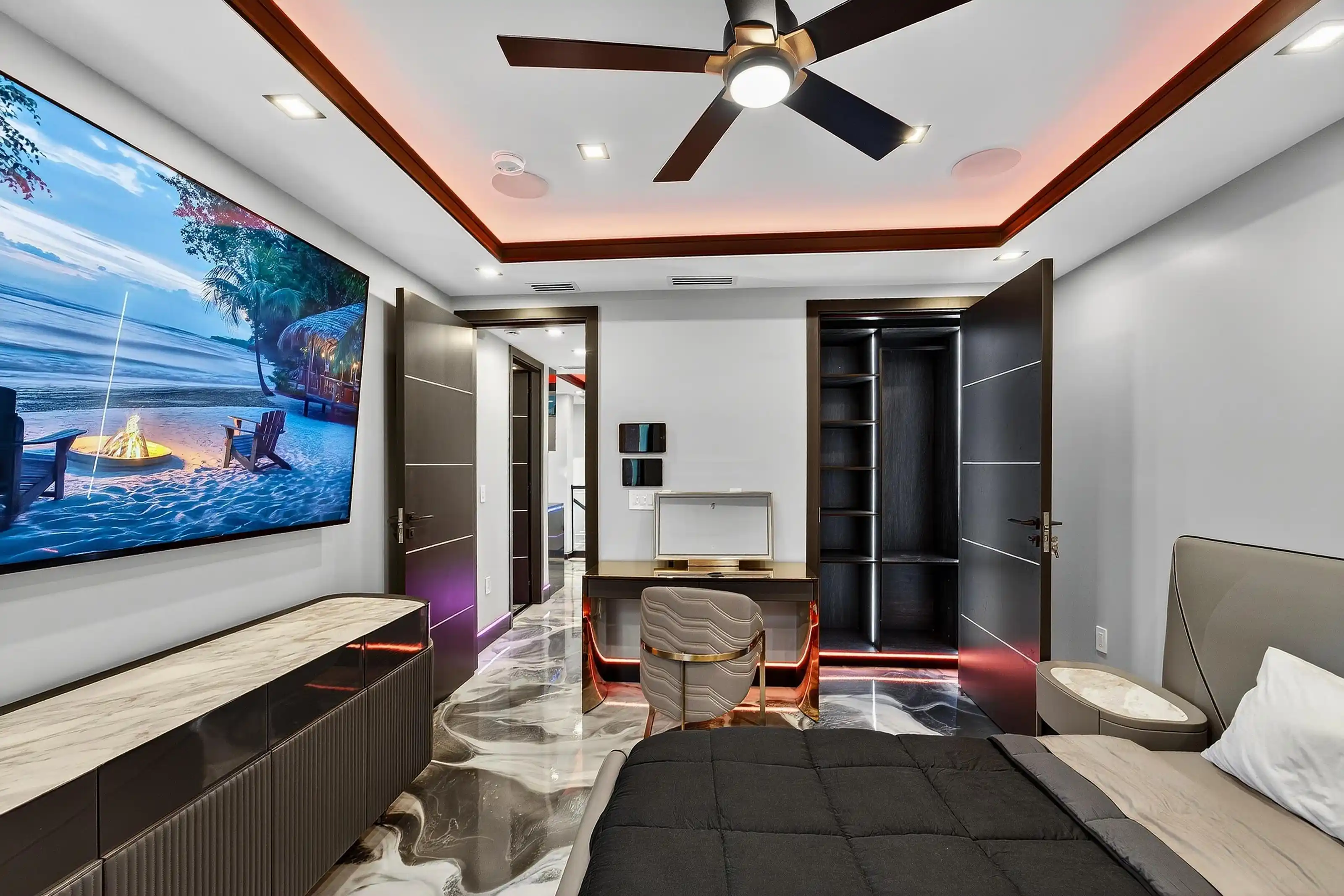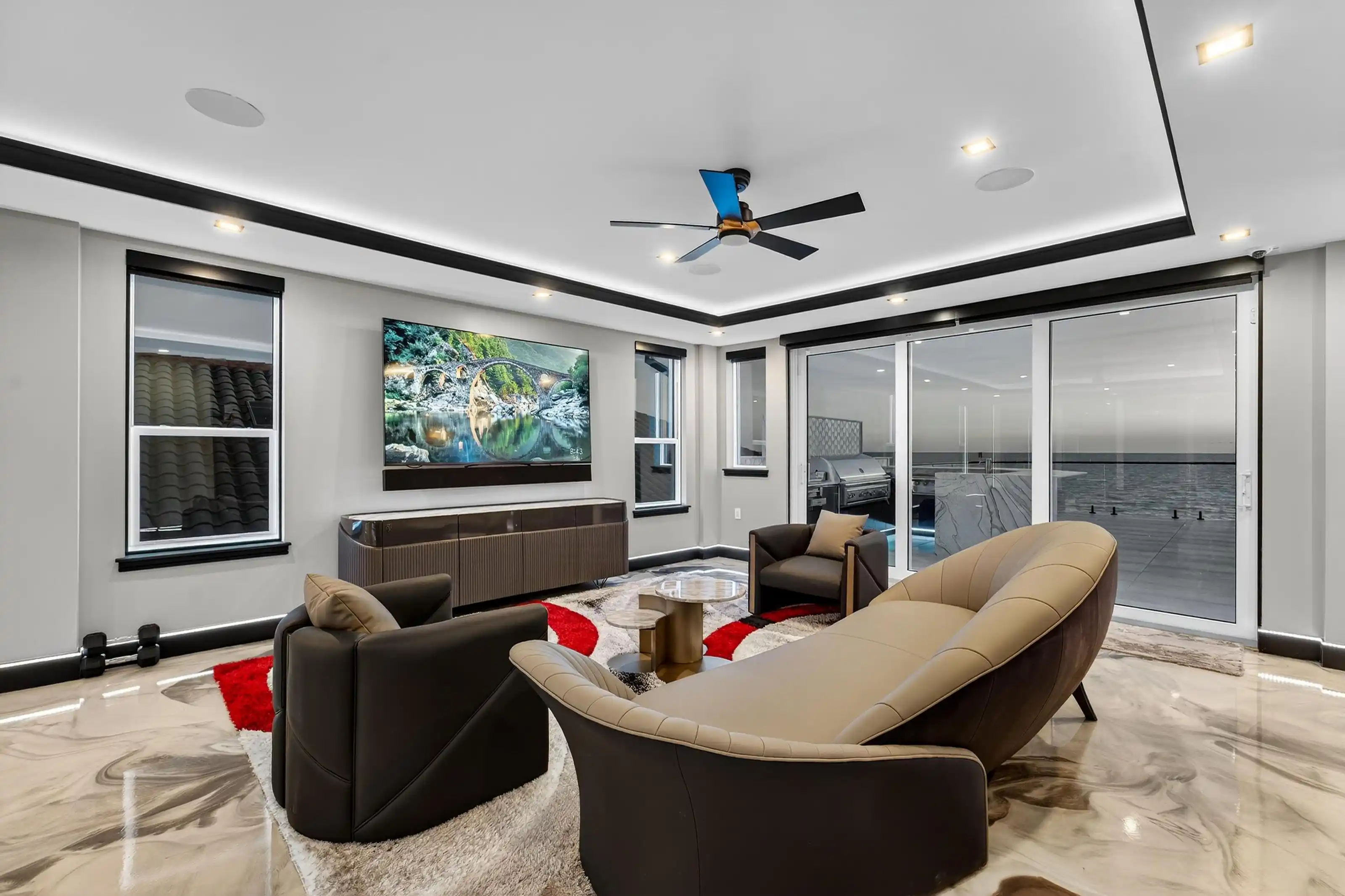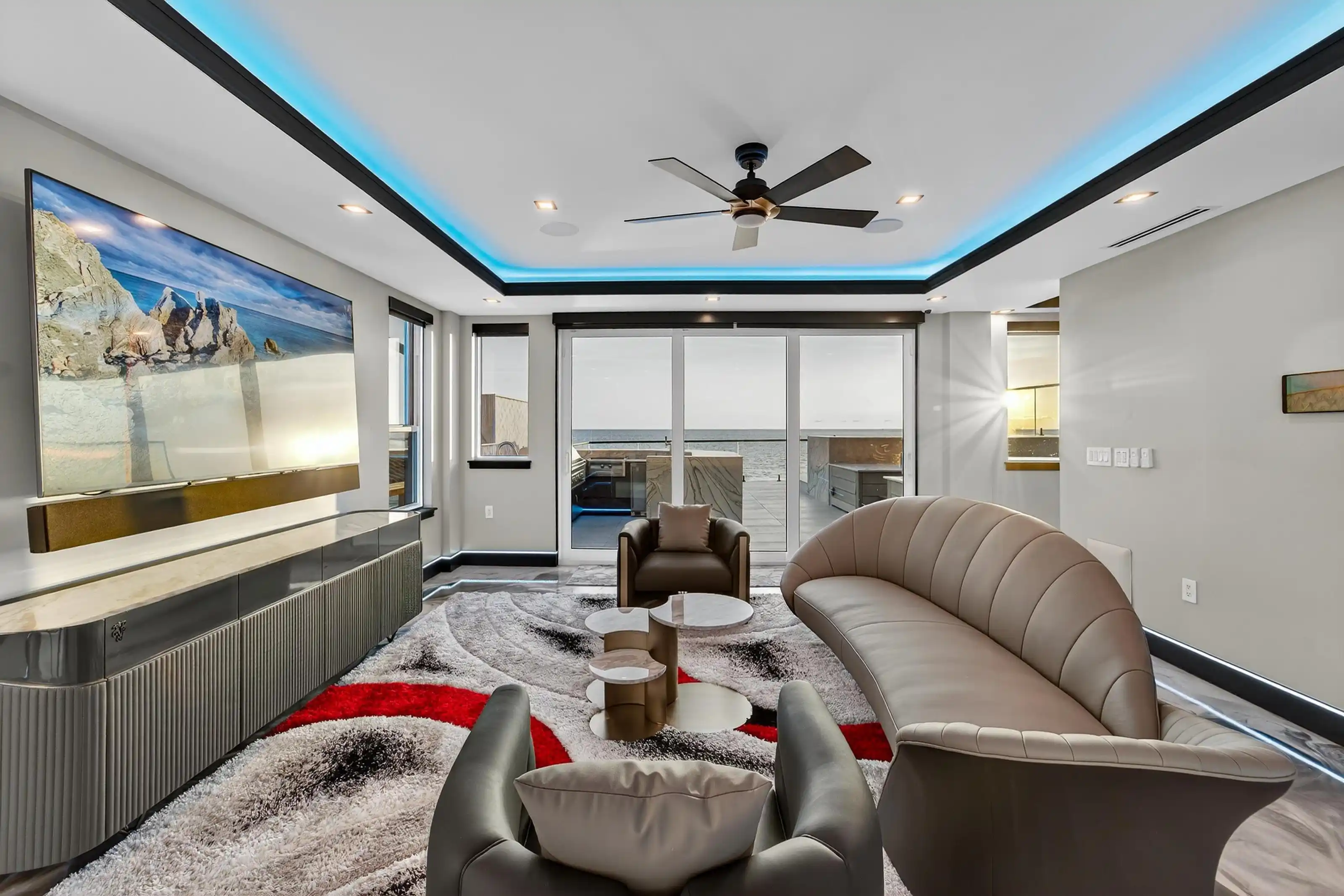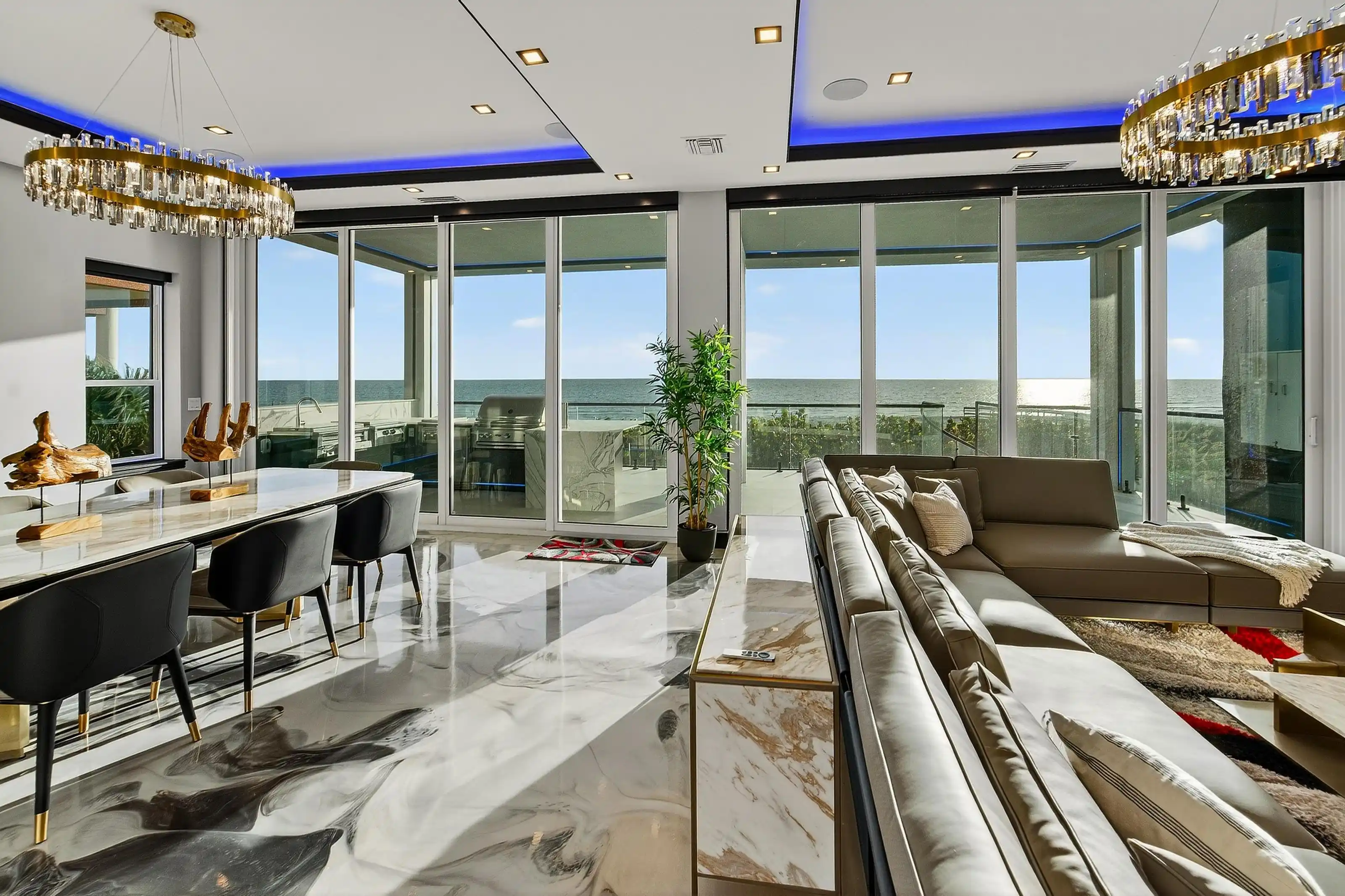Experience beachfront luxury in this 2025 custom concrete-built home on Treasure Island. Elevated 18 feet above sea level, this 5-bed, 7-bath residence offers 5,198 sq ft of high-end living, complete with a 32kW generator, Tesla chargers, and rooftop infinity pool. The main level features open living, a chef’s kitchen with double ovens, espresso machine, pot filler, and walk-in pantry.
