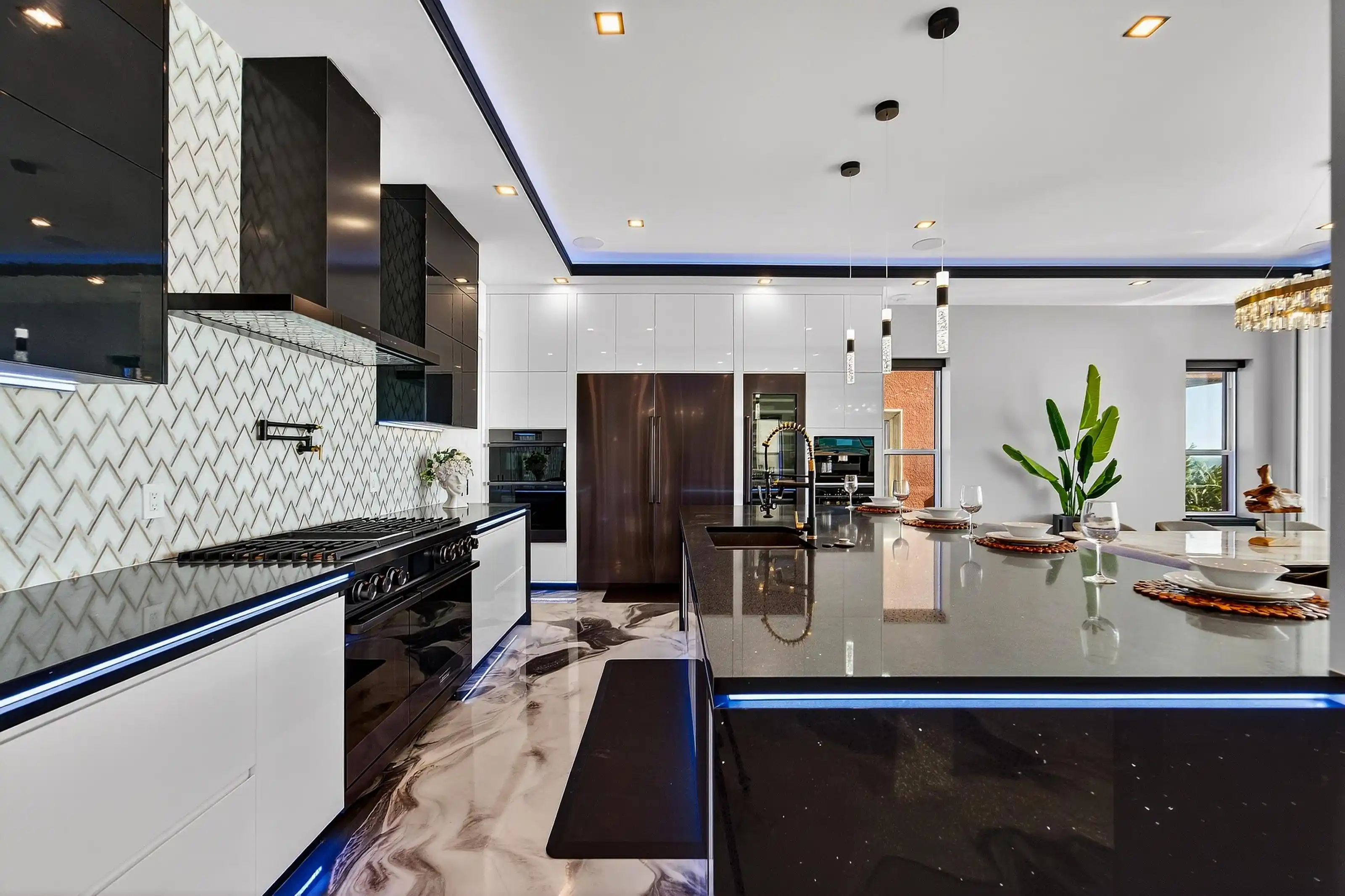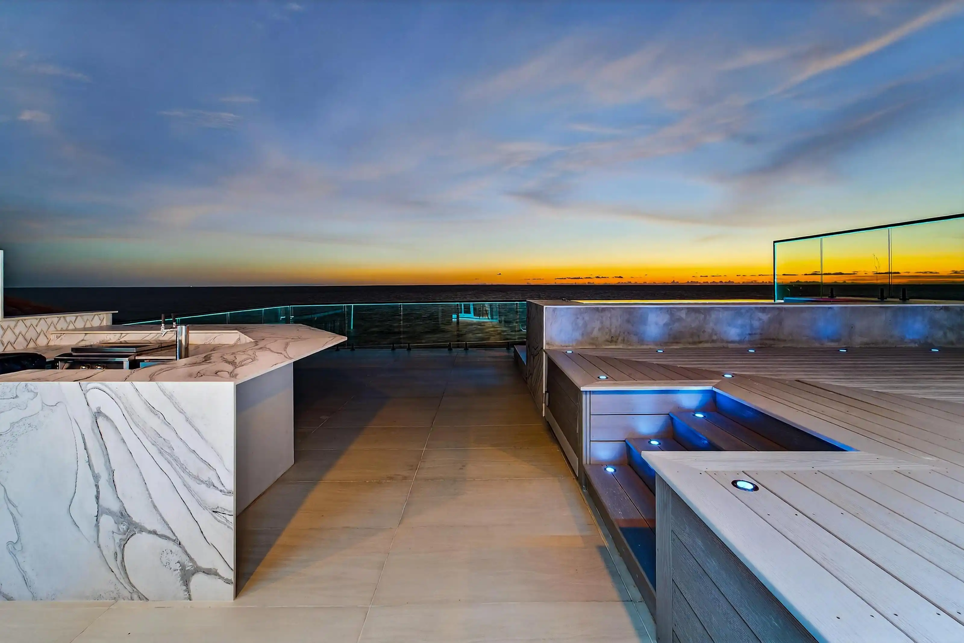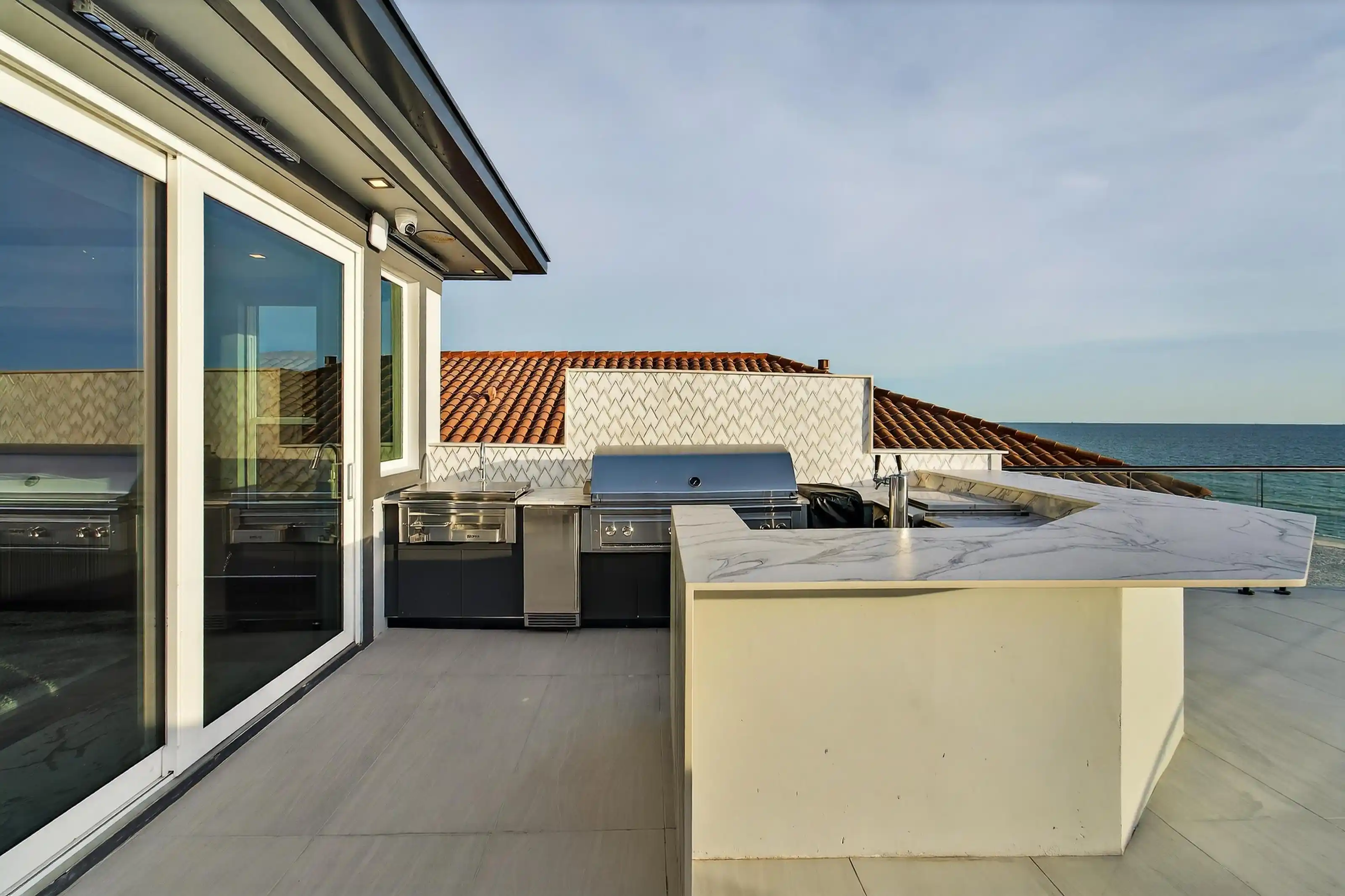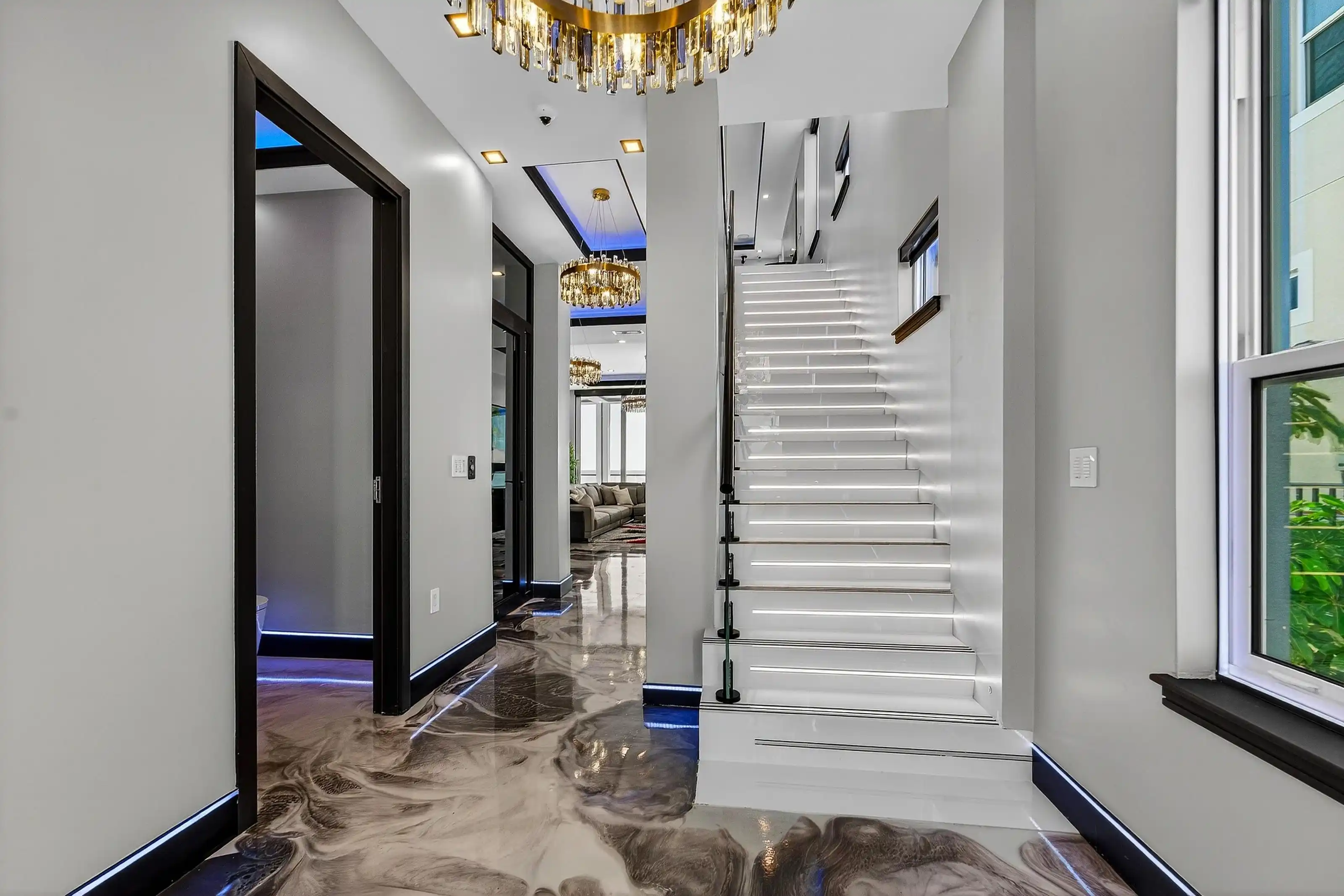 Experience beachfront luxury in this 2025 custom concrete-built home on Treasure Island. Elevated 18 feet above sea level, this 5-bed, 7-bath residence offers 5,198 sq ft of high-end living, complete with a 32kW generator, Tesla chargers, and rooftop infinity pool. The main level features open living, a chef’s kitchen with double ovens, espresso machine, pot filler, and walk-in pantry.