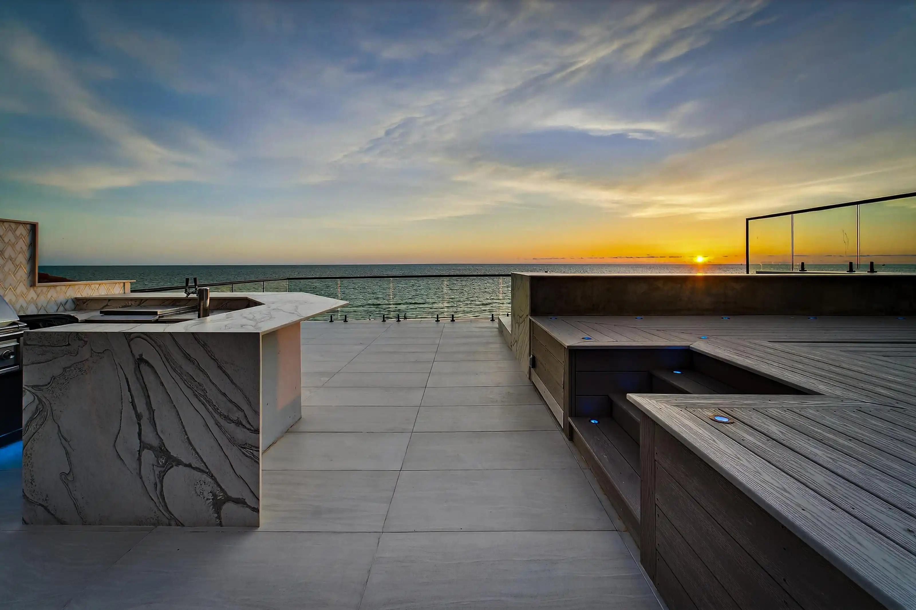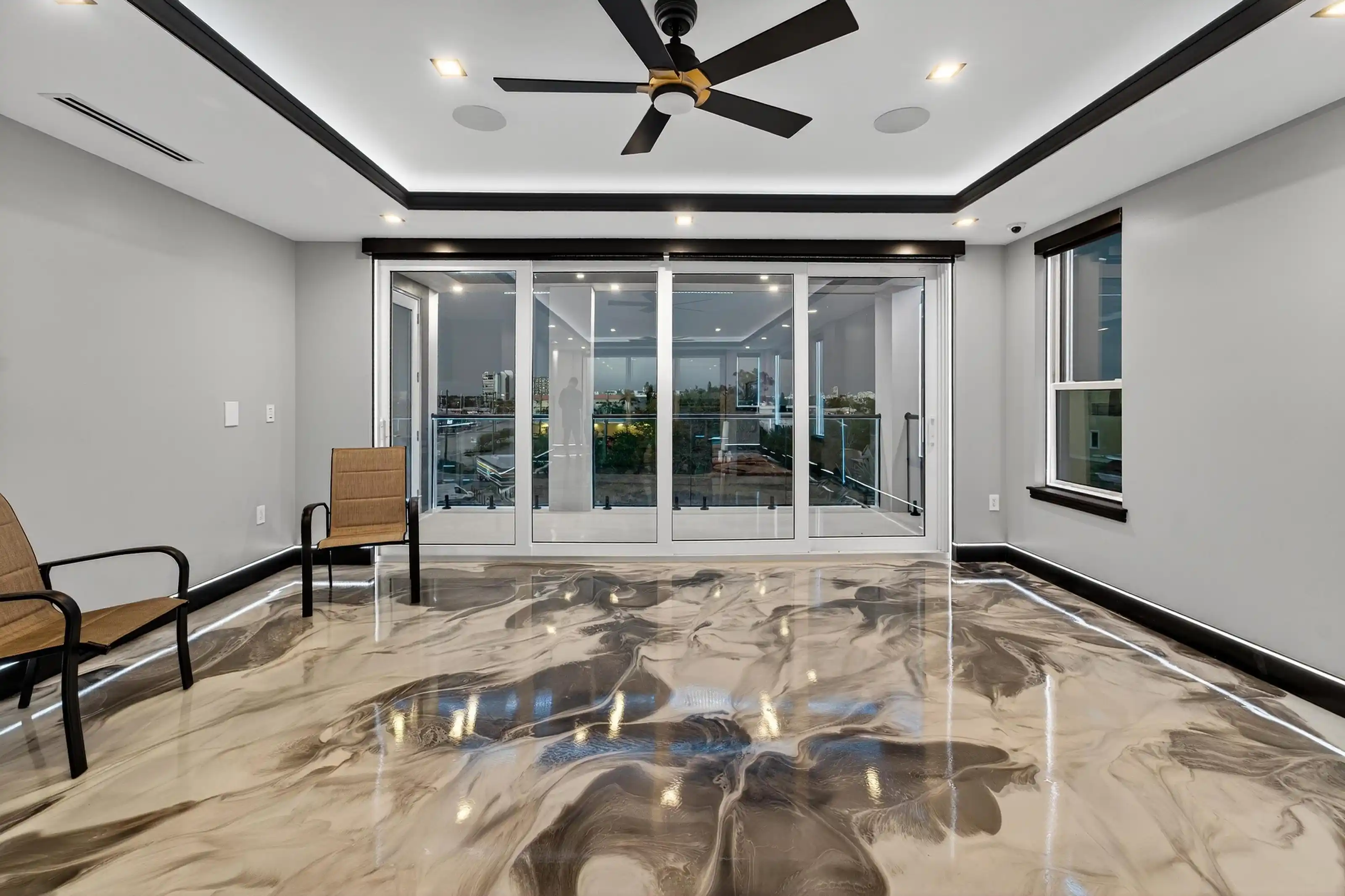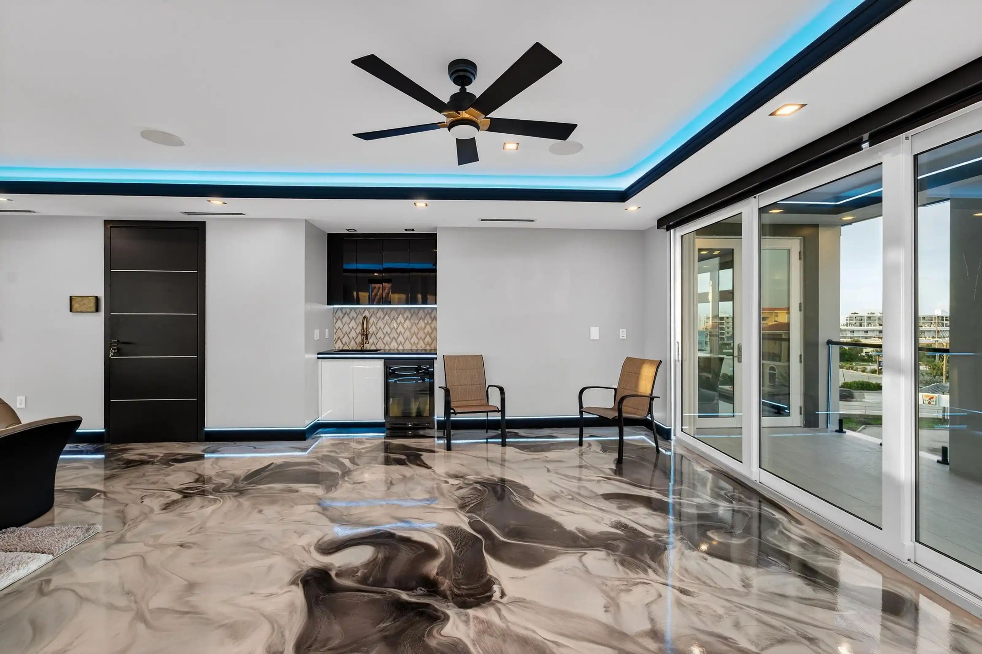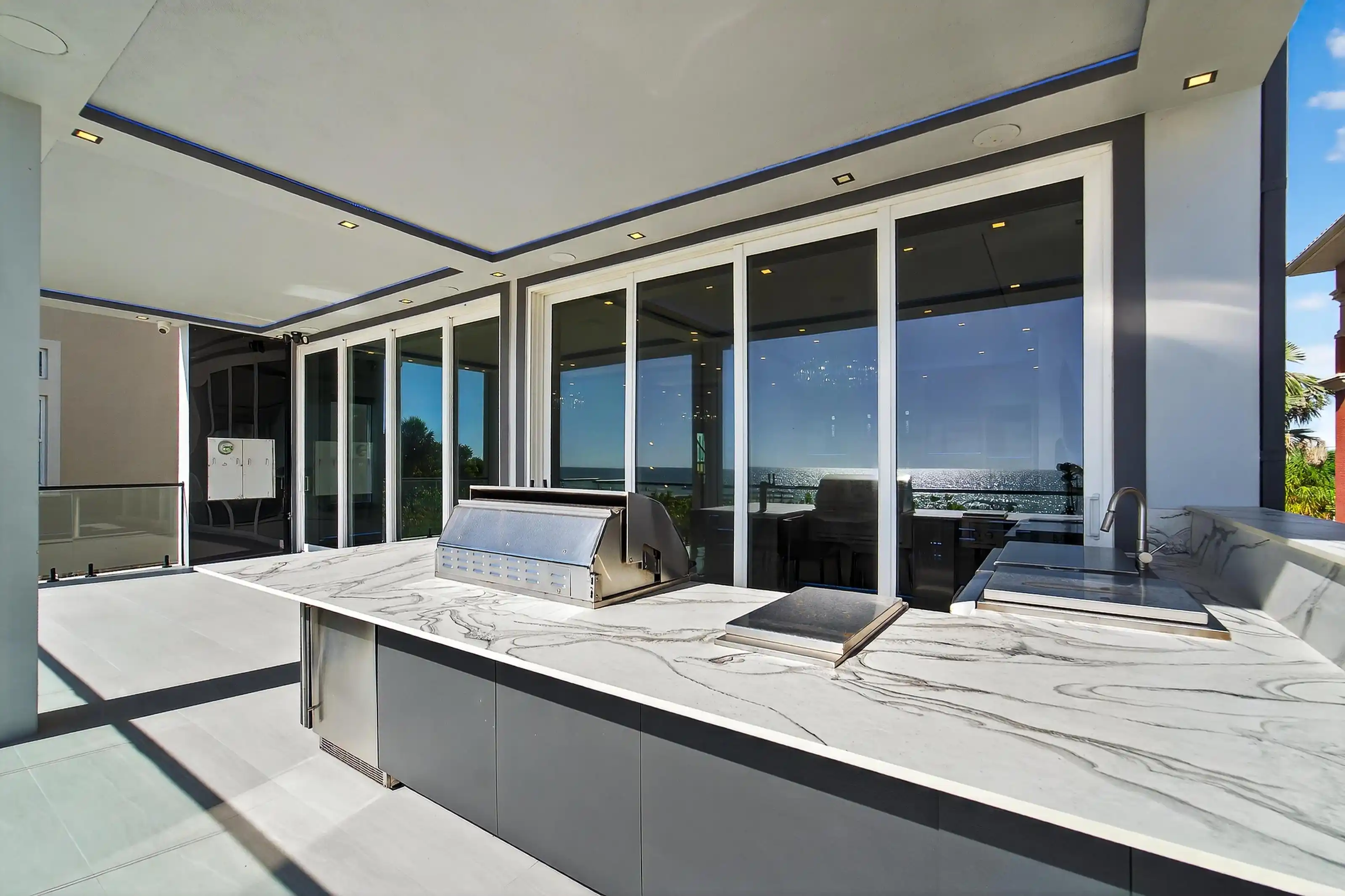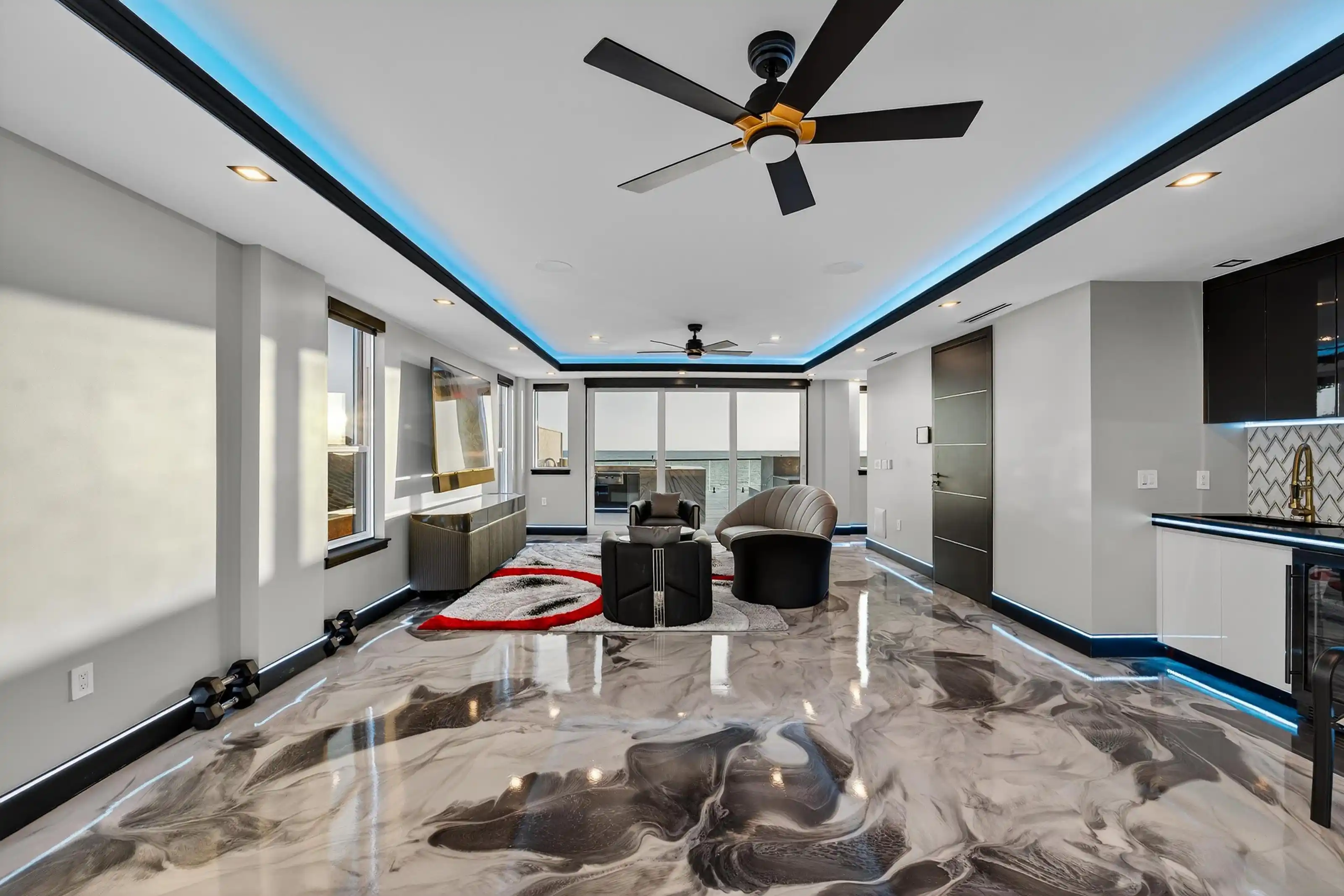 Experience beachfront luxury in this 2025 custom concrete-built home on Treasure Island. Elevated 18 feet above sea level, this 5-bed, 7-bath residence offers 5,198 sq ft of high-end living, complete with a 32kW generator, Tesla chargers, and rooftop infinity pool. The main level features open living, a chef’s kitchen with double ovens, espresso machine, pot filler, and walk-in pantry.