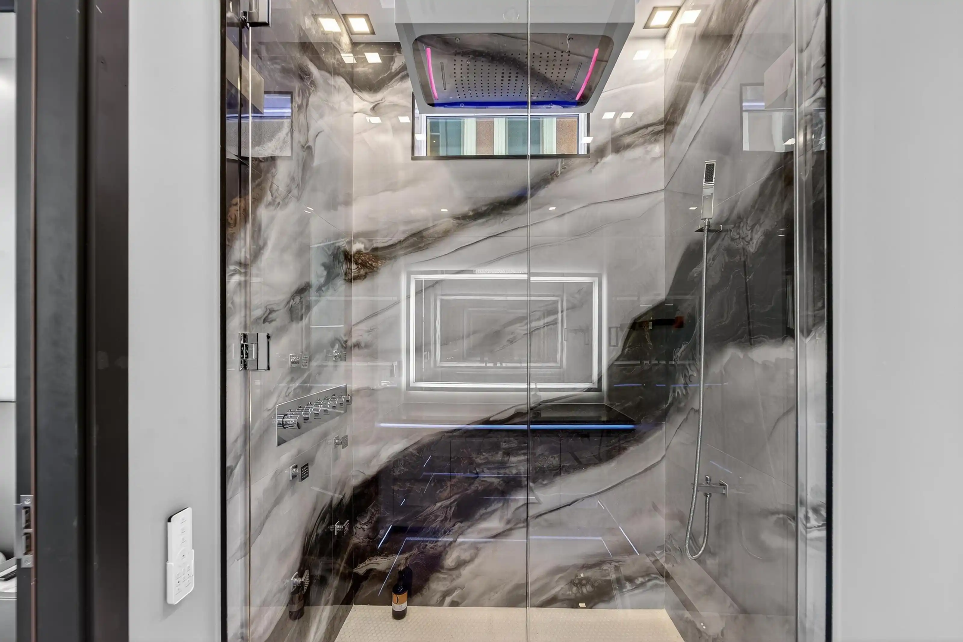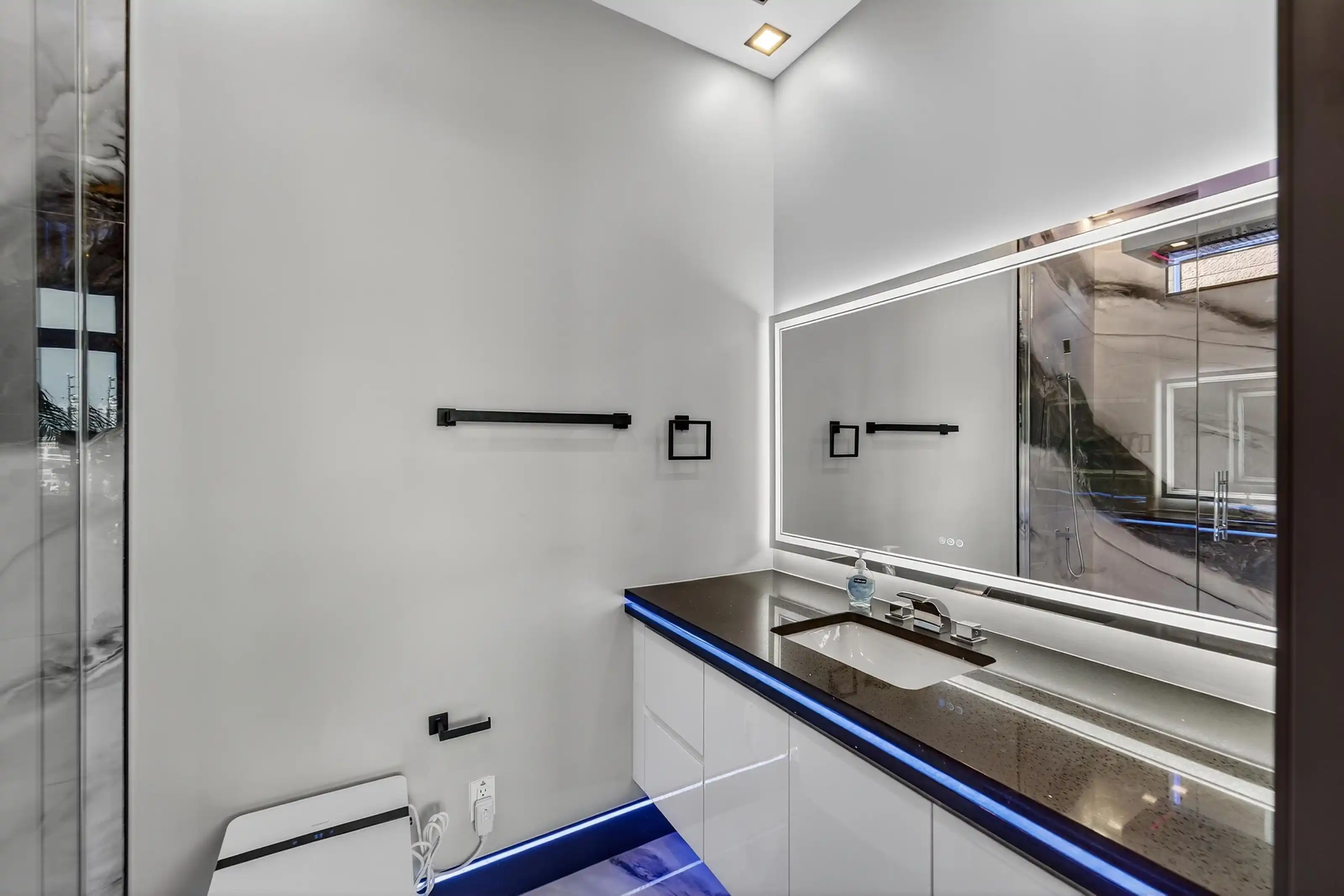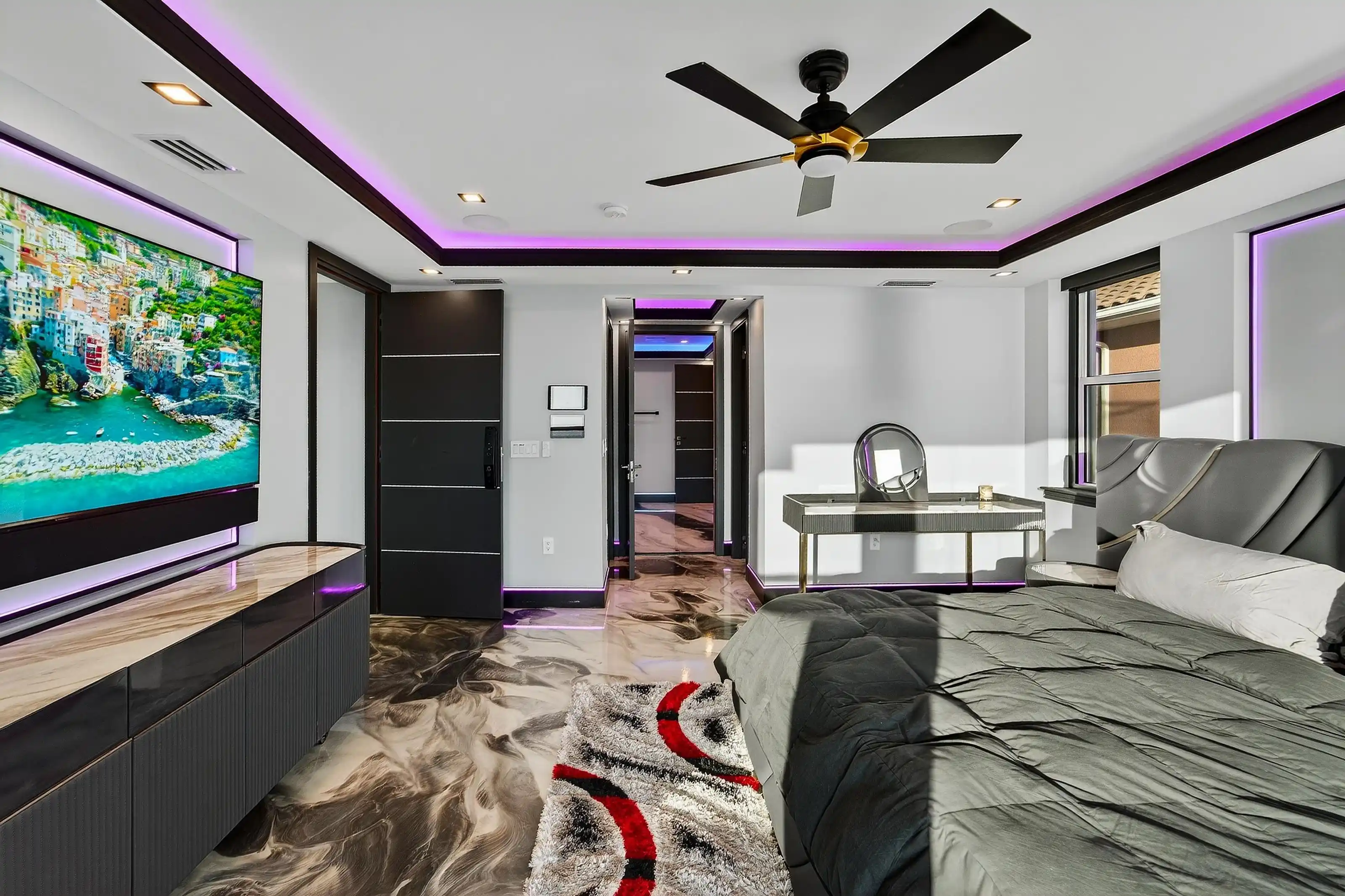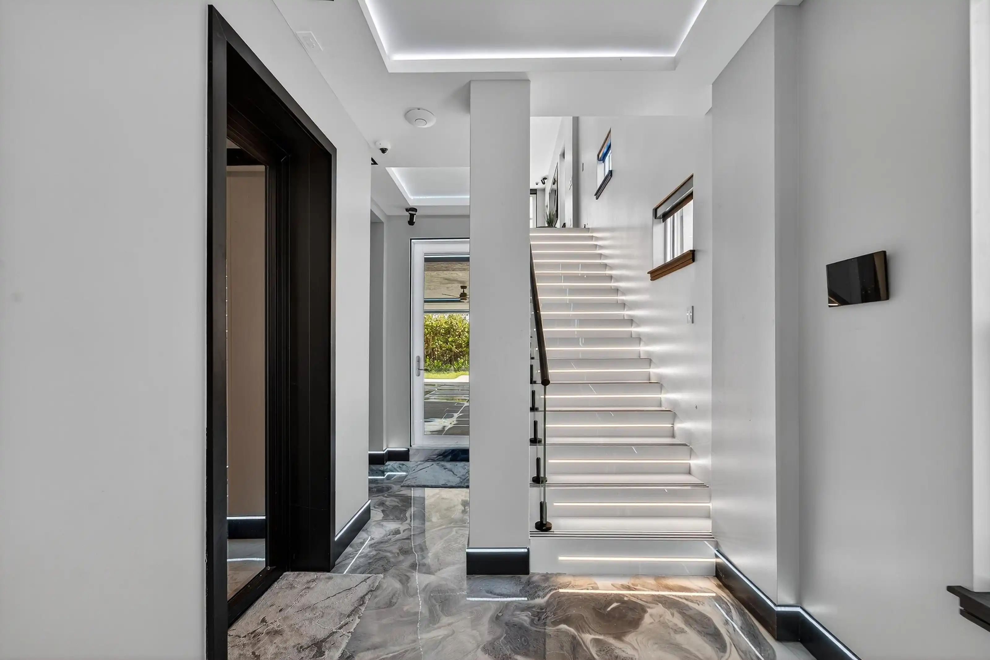 Exquisitely designed with a modern contemporary Miami/Palm Beach aesthetic, this exceptional 3/- acre new construction estate is the true essence of Water Mill opulence. The fully furnished 9,400 SF residence features 8 en-suite bedrooms, 12 bathrooms, a heated gunite pool with hot tub, a glass pool house, and an all-weather tennis court.
