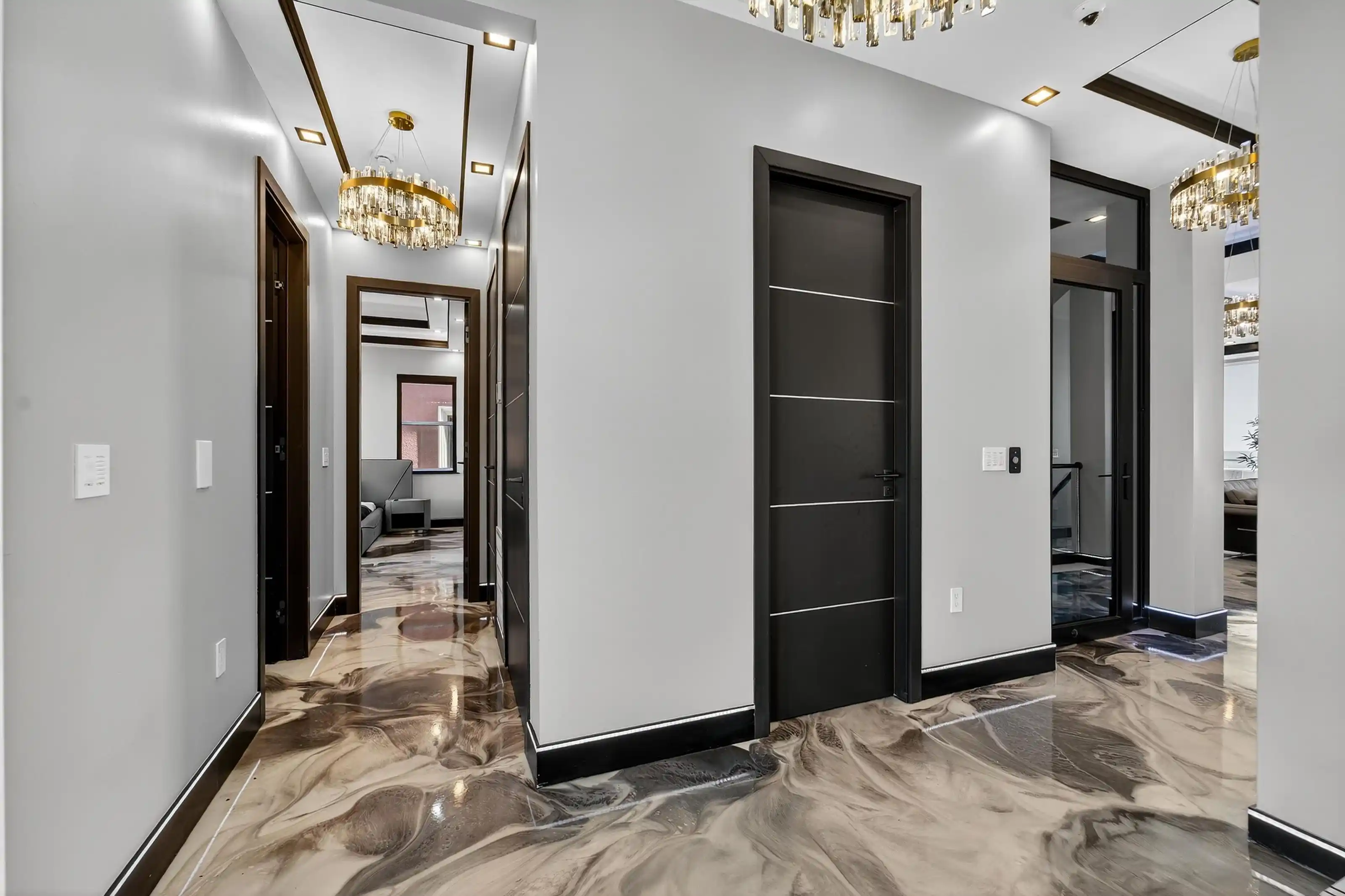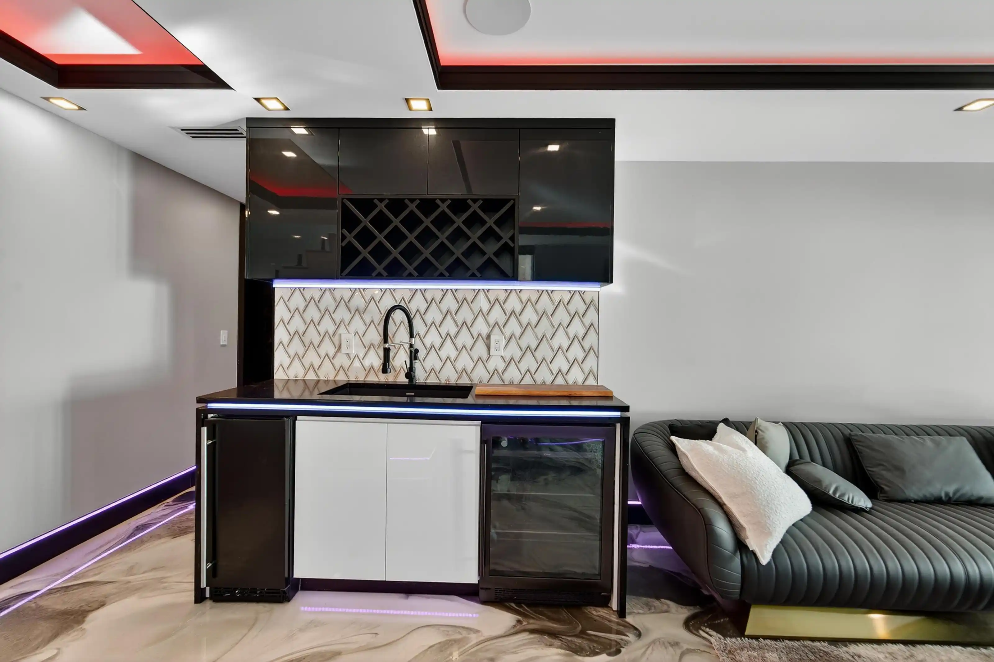Exquisitely designed with a modern contemporary Miami/Palm Beach aesthetic, this exceptional 3/- acre new construction estate is the true essence of Water Mill opulence. The fully furnished 9,400 SF residence features 8 en-suite bedrooms, 12 bathrooms, a heated gunite pool with hot tub, a glass pool house, and an all-weather tennis court. On the meticulously finished lower level is a recreational game room, glass-partitioned gym, sauna, spa, steam room, and a state-of-the-art movie theatre. The crown jewel is an impressive cocktail bar lounge and nightclub inspired by the exclusive Annabels members-only club in London. Nestled amidst picturesque open fields, this modern gated estate in Water Mill is a testament to luxury living.