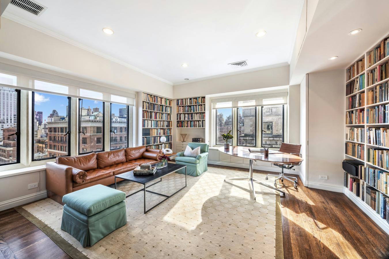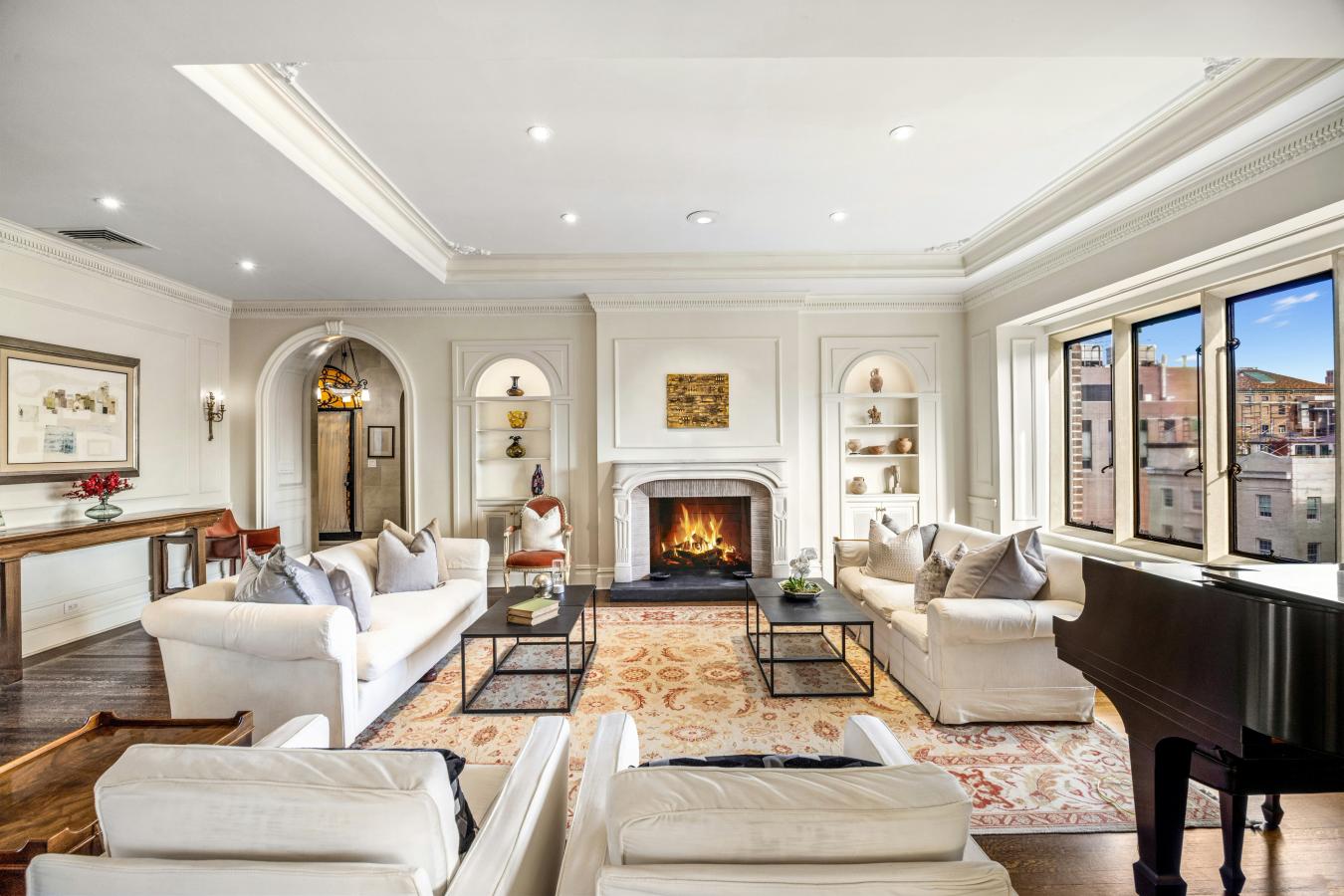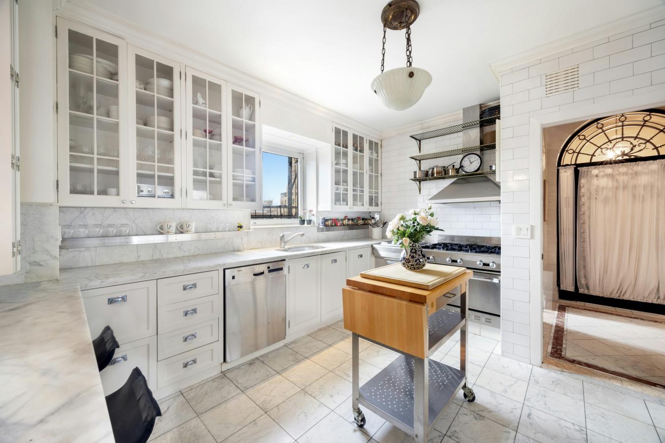A truly exceptional offering of a grand full floor home boasting over 90 feet of Park Avenue frontage, with majestic exposures framed by large picture windows in every room. Flooded with sunlight throughout, the 15th Floor at 820 Park Avenue is a property offering a flawless classic layout, glorious proportions and wide open views both east and west rarely found on Park Avenue, all set atop a distinguished full-service cooperative on a prime corner of the Upper East Side. Occupying the buildings penultimate floor, this residence is entered through a private vestibule and a custom wrought-iron front door. Ceilings rise over 10 feet as sunlight guides you from the formal gallery into the homes south-facing entertaining wing with a stately living room at its core. The living room features wall-to-wall oversized picture windows facing east, showcasing gorgeous open views over Park Avenue and the city beyond. The first of three wood burning fireplaces anchors the room which is also enveloped in intricate picture molding and crown molding overhead. A pair of large pocket doors open from the living room into a handsome corner library bathed in sunlight pouring in through 7 picture windows exposed southeast over Park Avenue and East 75th Street. Also off the living room and adjacent to the library is a beautifully wood-paneled sitting room with a wood burning fireplace that commands the southwestern corner of the buildings facade, featuring glorious open city views up 75th Street all the way to Central Park and the glorious buildings along Central Park West. Perfectly situated between the sitting room and a large windowed eat-in kitchen is a formal dining room, accessed from the living room through sculpted wooden pocket doors and also offering open western views. The kitchen is dressed in white marble and currently offers a pass-through dining counter open to the dining room, all stainless steel appliances including a 6-burner gas range/oven with a griddle and a vented hood, twin wall-mounted ovens by Thermador, a full-sized stainless steel Bosch dishwasher and a Subzero French-door style refrigerator/freezer with an ice maker. The entertaining areas are all served by a windowed powder room discreetly located off of the gallery. The bedrooms are situated in their own dedicated wing, as is ideal. The expansive primary bedroom suite has massive proportions throughout and its own wood burning fireplace. There is a custom dressing room that can accommodate even the most extensive of wardrobes with an array of closets, shelving and draws and contains an additional huge walk-in closet over 11 feet deep. The en-suite primary bathroom is also enormous, currently housing a deep soaking spa bathtub and an oversized glass-enclosed stall shower and easily accommodating a double vanity as well. There are two additional corner bedrooms at the north end of the residence off of their own hall for enhanced privacy. One has a windowed en-suite bathroom with a tub, and the other is serviced by a windowed bathroom with a stall shower just off of the hall. Each could easily be configured as bedrooms each with their own en-suite full bathrooms and walk-in closets. Rounding out the bedroom wing is a separate service space containing a full-sized washer/dryer. 820 Park Avenue was built in 1926 and designed by the esteemed Prix de Rome-winning architect Henry Allan Jacobs. Residents enjoy white-glove privacy and a dedicated staff inclusive of a live-in resident manager and full-time doormen. The buildings prime location places it moments from the finest boutiques, restaurants, art galleries and cultural institutions in Manhattan. Pets are welcome, and there is a 3% flip tax payable by the purchaser. Financing is considered case by case.