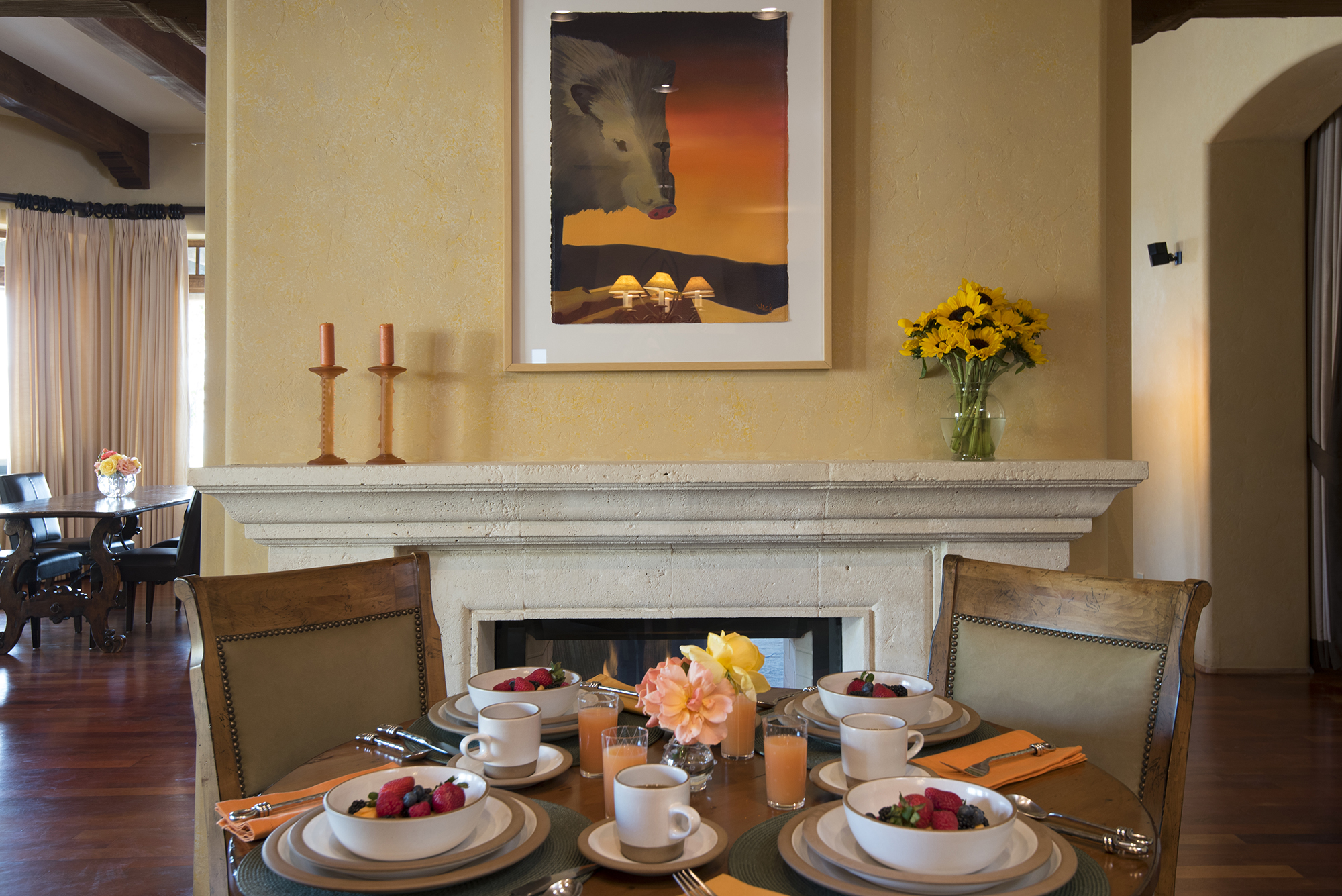 Down a private half a km long drive that wraps around a manicured spring-fed pond, this exquisite French chateau inspired estate w/nearly 14,000 sqft of living space is set back overlooking the pond to perfectly capture the manorâs beauty reflections at dusk. Infinite picturesque views w/nearly 14-acres w/wildlife commonly seen.