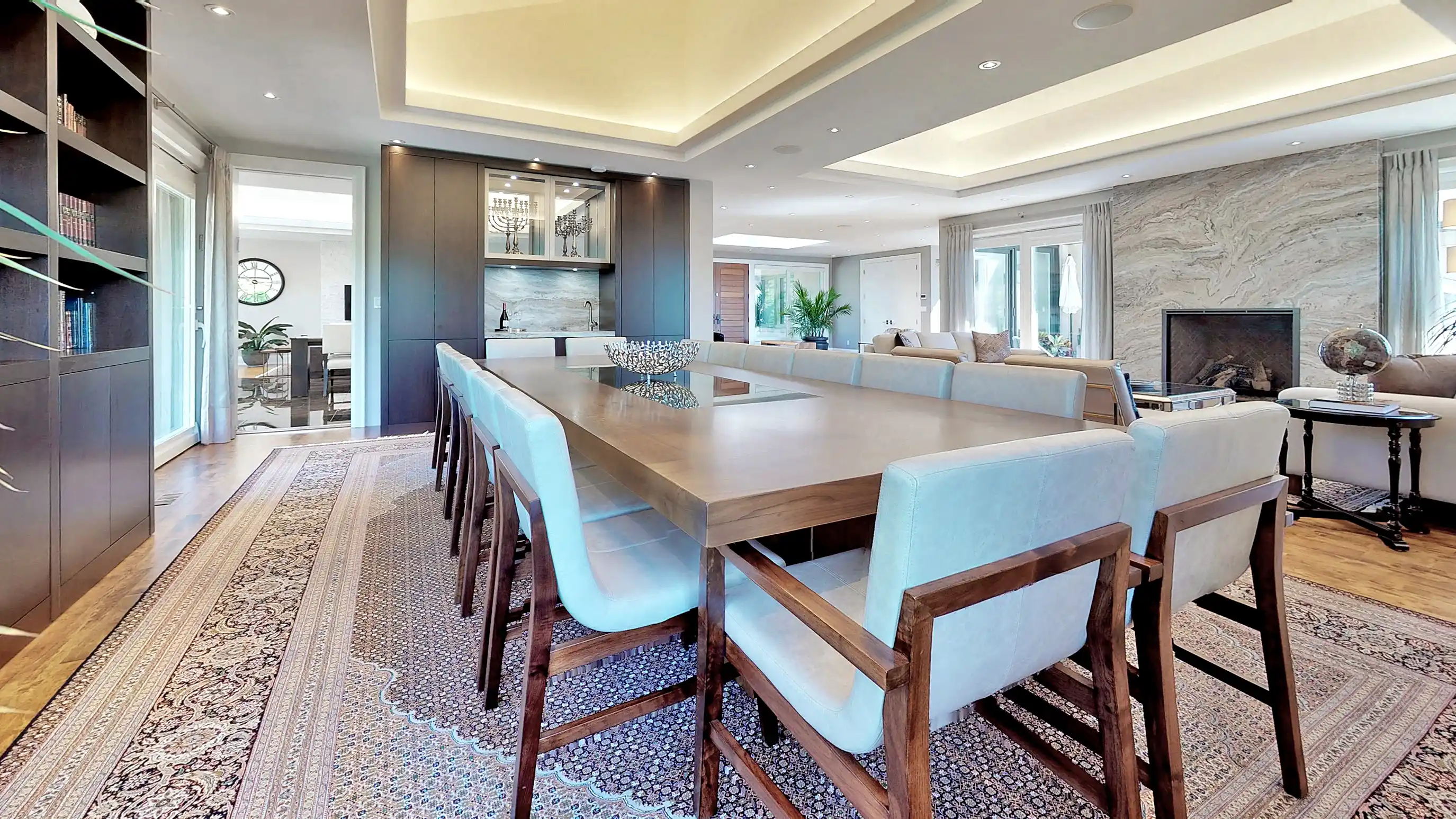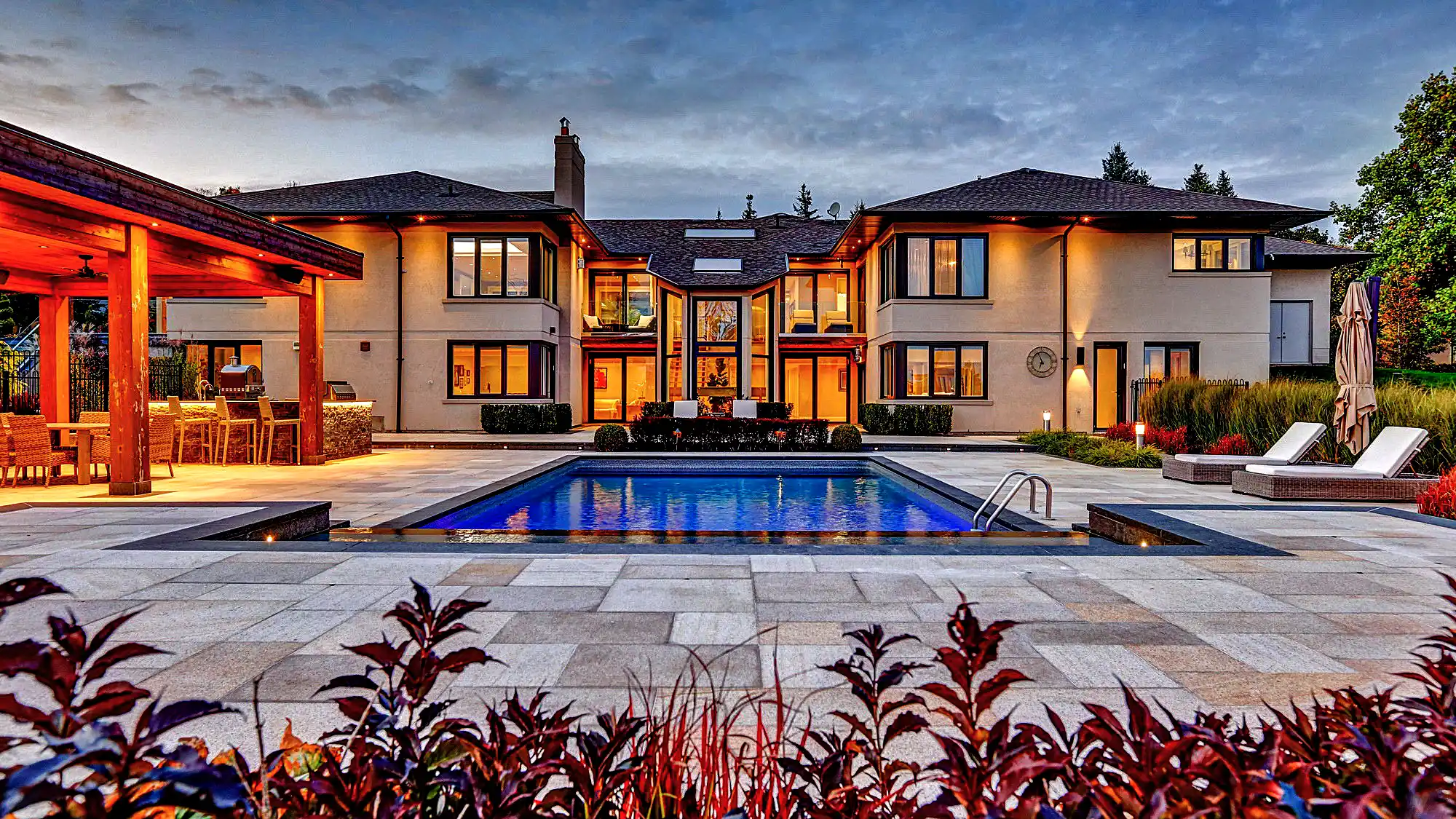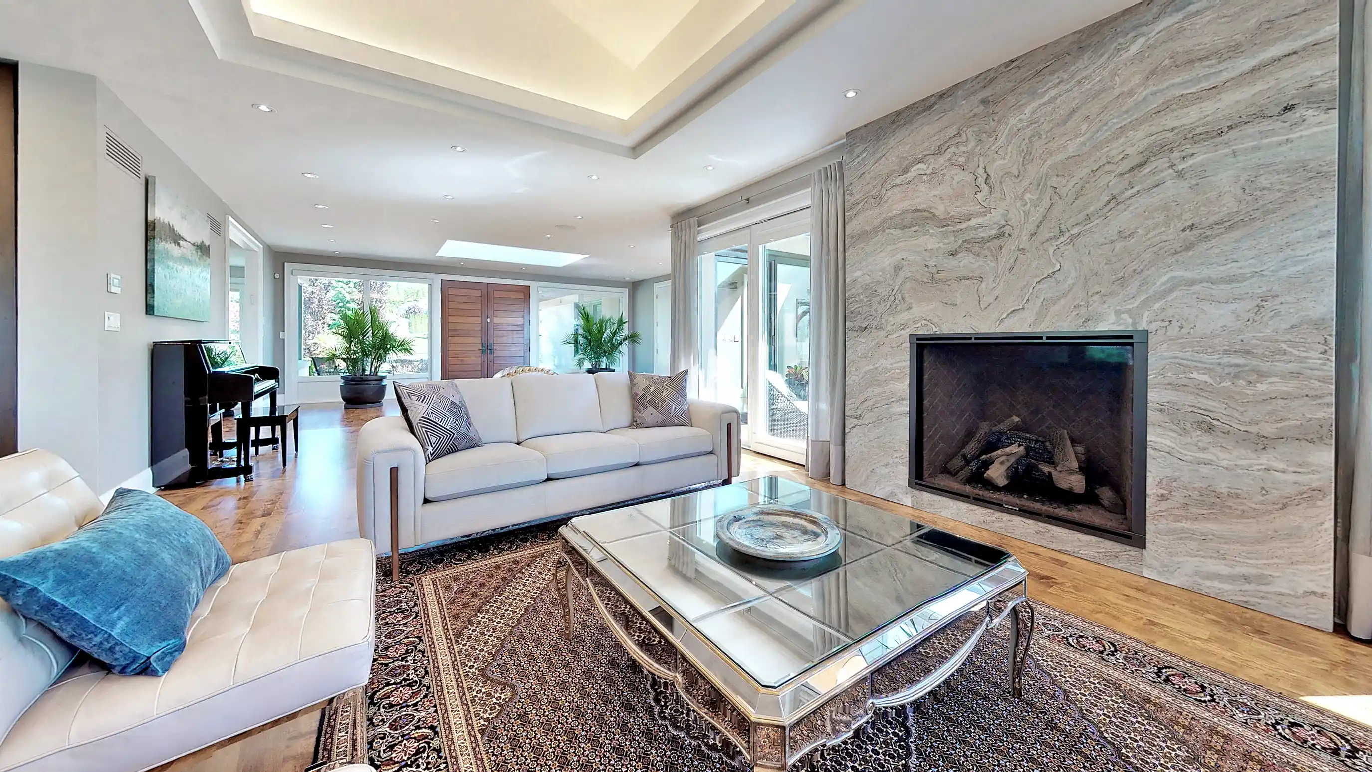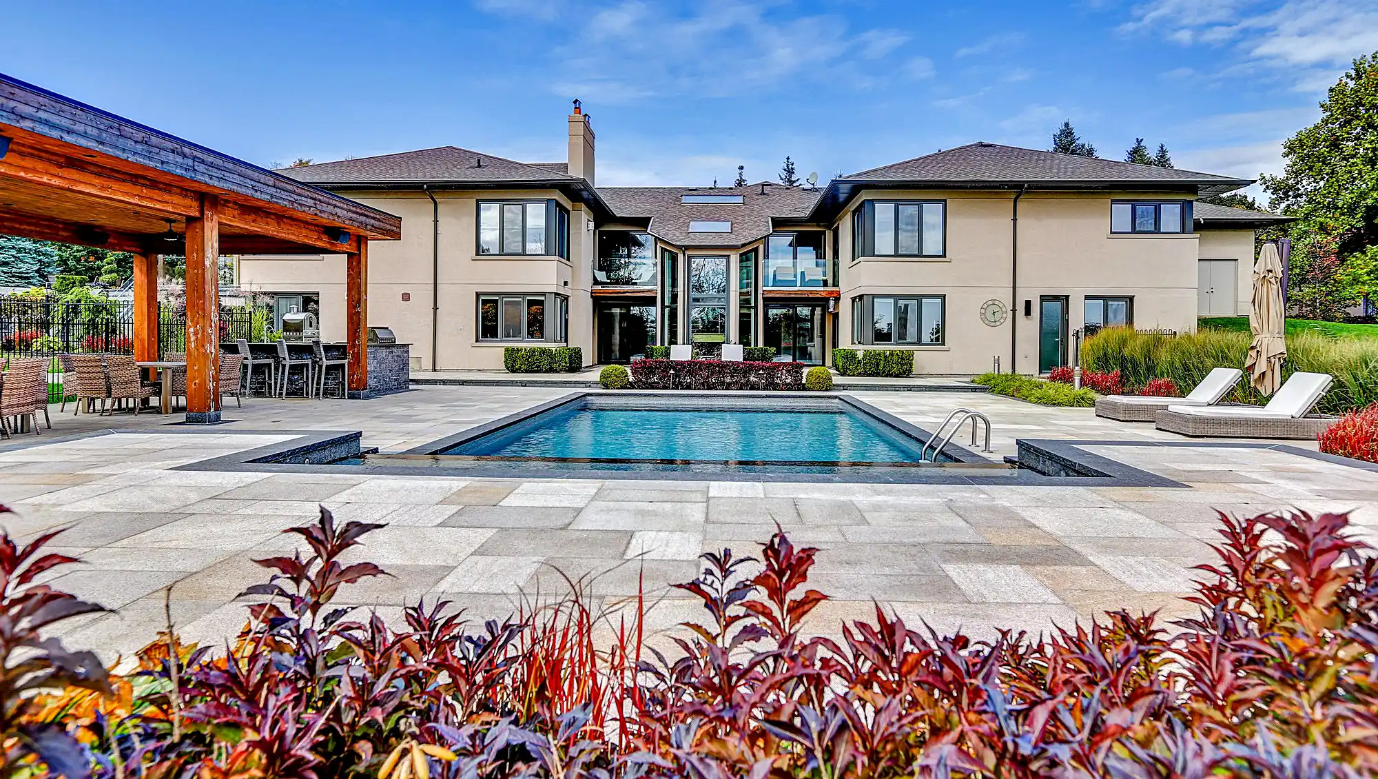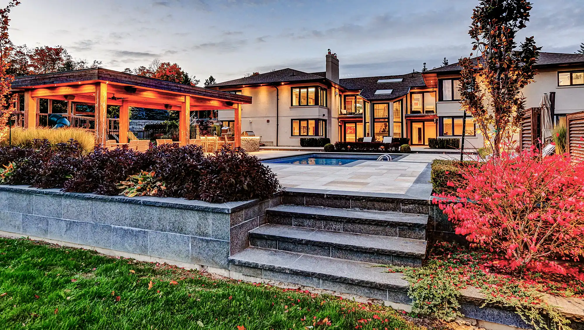 Absolutely no expense spared in this sprawling custom estate set behind the guard gates of The Country, a high security community offering the utmost privacy for the most discerning Buyer. With six bedrooms including dual primary suites, seven bathrooms, and boasting a strikingly authentic traditional Japanese dining room, custom wood paneled study, billiards/game room, and at just over 10,000 square feet, this home is the ideal family compound or entertainer's retreat. Truly the epitome of indoor/outdoor living, with walls of glass opening to a magnificent rear yard with features including a putting green, outdoor stage, charming koi pond, infinity edge pool and spa with sunken loungers, and a detached pool house with a dry and wet sauna. Set in one of the premier gated communities of Southern California, this estate melds expert modern craftsmanship with Mediterranean flare.