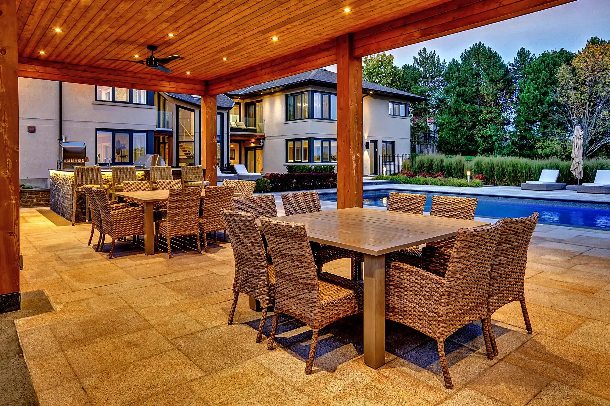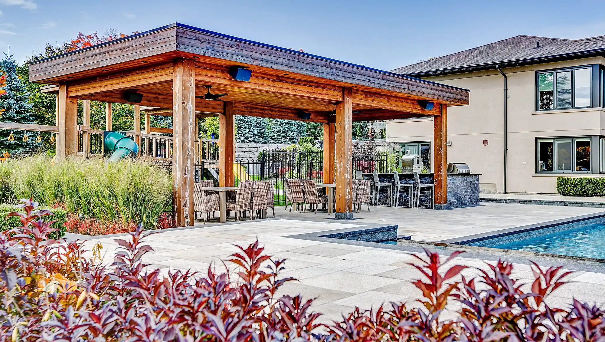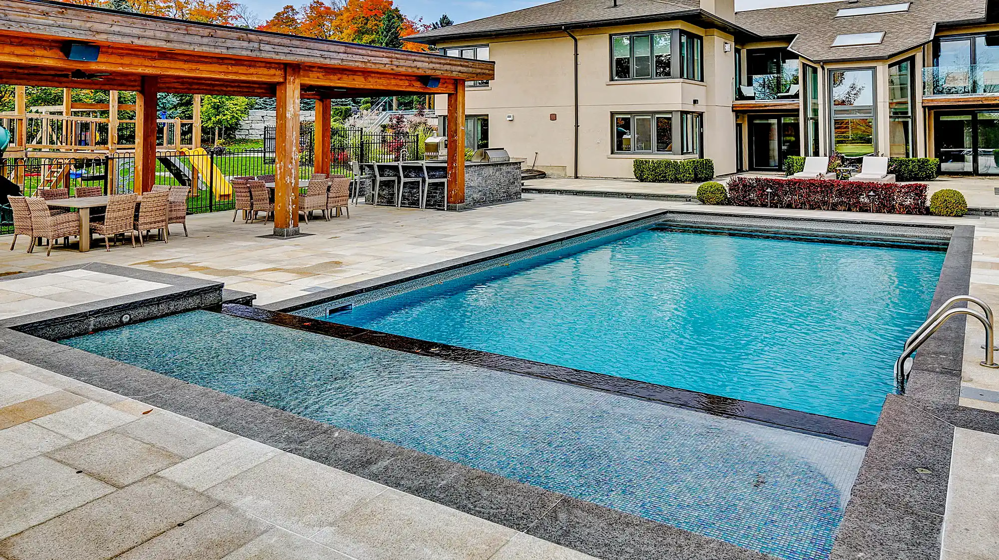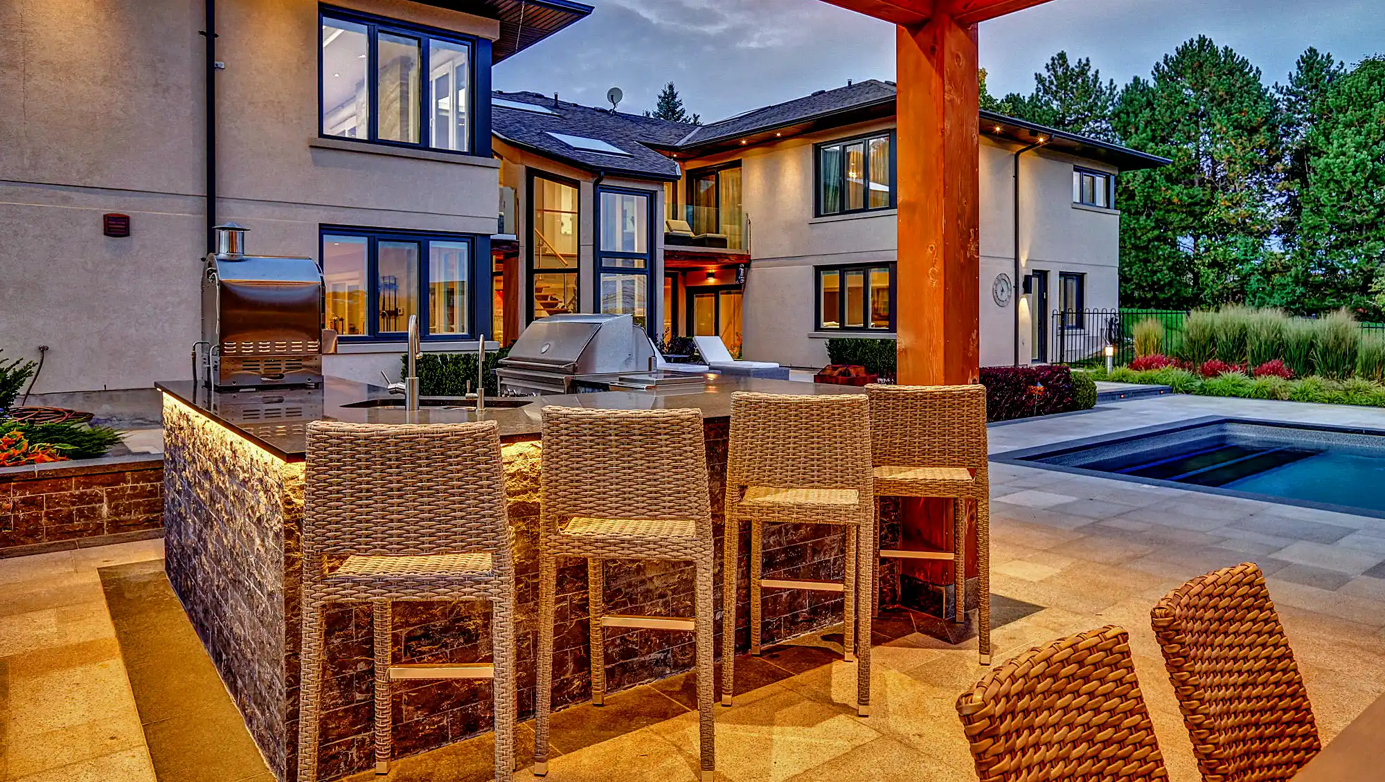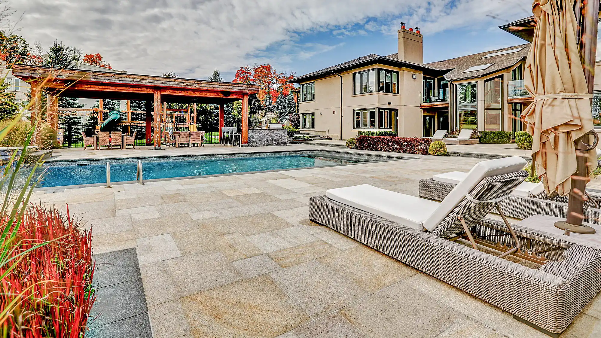 Absolutely no expense spared in this sprawling custom estate set behind the guard gates of The Country, a high security community offering the utmost privacy for the most discerning Buyer. With six bedrooms including dual primary suites, seven bathrooms, and boasting a strikingly authentic traditional Japanese dining room, custom wood paneled study, billiards/game room, and at just over 10,000 square feet, this home is the ideal family compound or entertainer's retreat. Truly the epitome of indoor/outdoor living, with walls of glass opening to a magnificent rear yard with features including a putting green, outdoor stage, charming koi pond, infinity edge pool and spa with sunken loungers, and a detached pool house with a dry and wet sauna. Set in one of the premier gated communities of Southern California, this estate melds expert modern craftsmanship with Mediterranean flare.