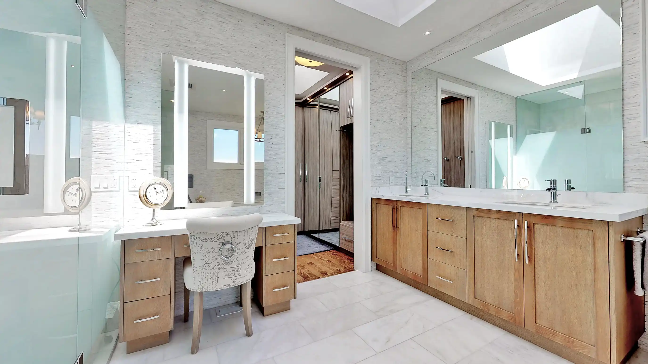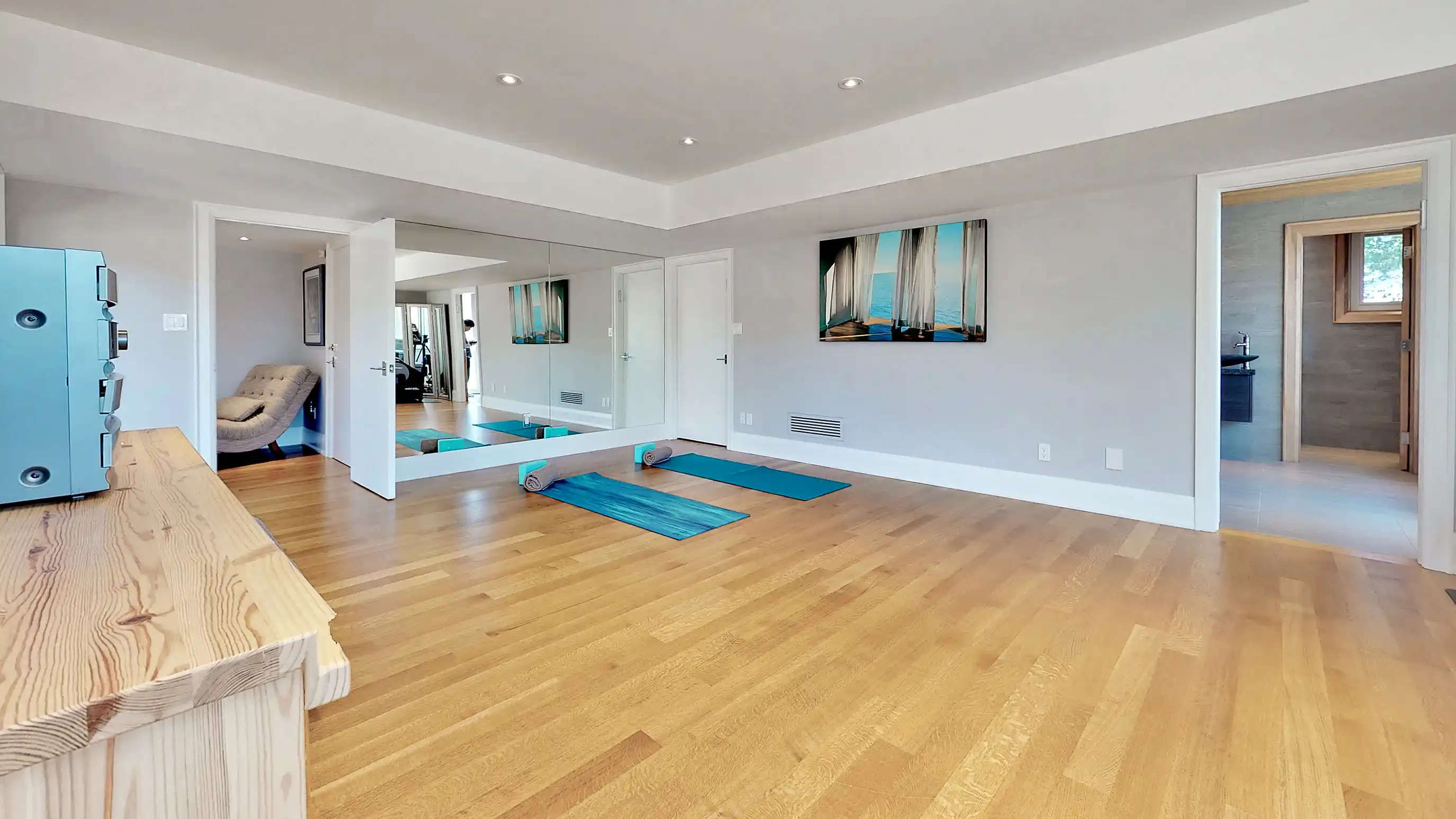 Absolutely no expense spared in this sprawling custom estate set behind the guard gates of The Country, a high security community offering the utmost privacy for the most discerning Buyer. With six bedrooms including dual primary suites, seven bathrooms, and boasting a strikingly authentic traditional Japanese dining room, custom wood paneled study, billiards/game room, and at just over 10,000 square feet, this home is the ideal family compound or entertainers retreat. Truly the epitome of indoor/outdoor living, with walls of glass opening to a magnificent rear yard with features including a putting green, outdoor stage, charming koi pond, infinity edge pool and spa with sunken loungers, and a detached pool house with a dry and wet sauna. Set in one of the premier gated communities of Southern California, this estate melds expert modern craftsmanship with Mediterranean flare.