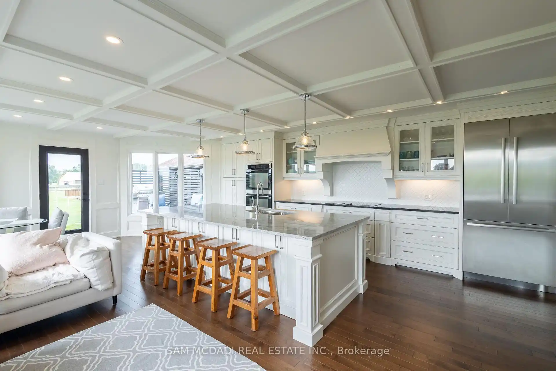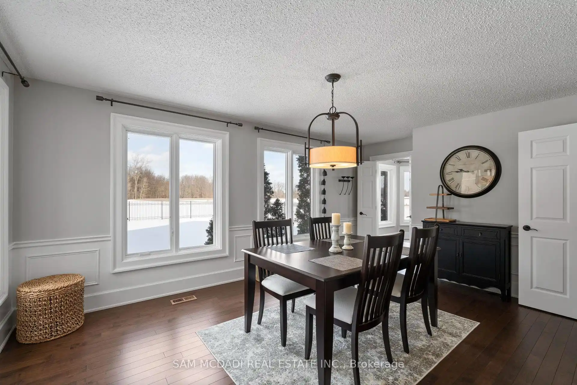 PERCHED ATOP the Stoney Creek Escarpment on a 16-acre peninsula, this stunning Georgian-style estate offers over 7,000 sq ft of above-grade living space. Enter through private gates with a scenic driveway and formal gardens before arriving at the impressive Porte Cochre. Dual staircases and soaring 28-ft ceilings create an immediate sense of grandeur.