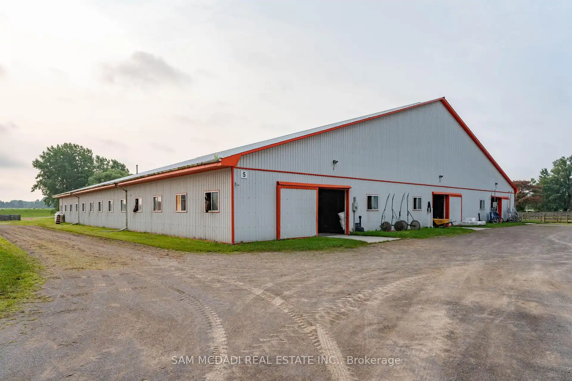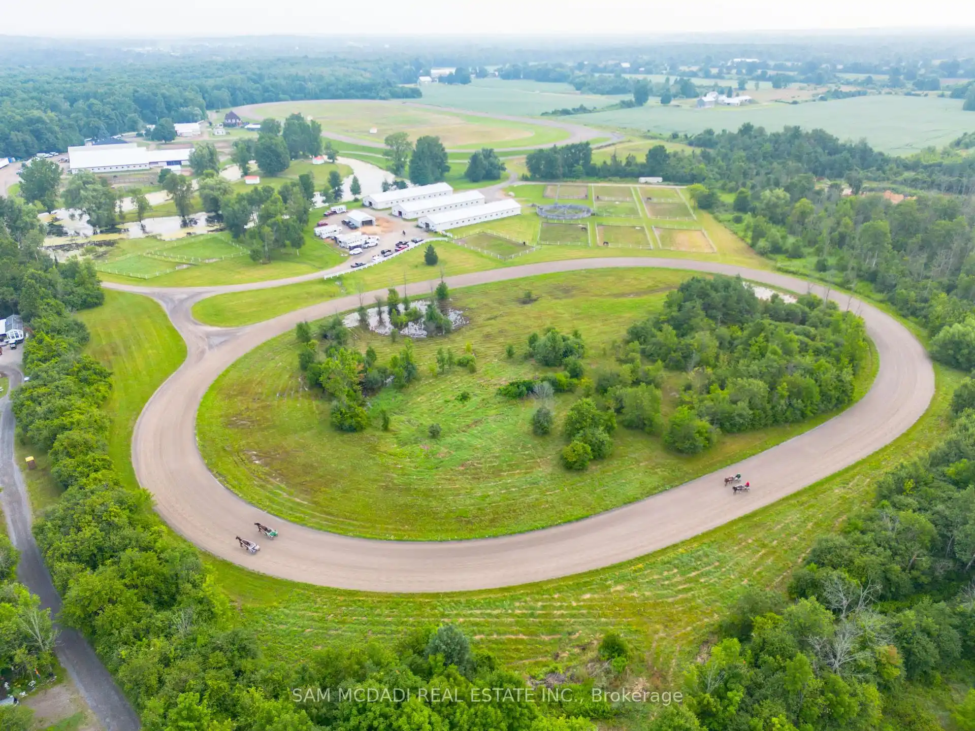 Welcome to a rare 98-acre estate that seamlessly blends luxury living, natural beauty, and income-generating infrastructure, supported by two separate deeds. Whether you're envisioning a family compound, business expansion, or long-term investment, this versatile property delivers the scale, zoning, and revenue potential to bring your goals to life. At the heart of the estate is a newly renovated, custom-built two-storey residence with loft, offering over 5,500 sq ft of refined living space. Designed for both elegance and practicality, it features 6-spacious bedrooms and 7-bathrooms, perfect for multi-generational living or large-scale entertaining. The fully finished walkout basement includes a private entrance, full bath, and kitchenette ideal for guests, in-laws, or a rental suite. Surrounding the home are rolling meadows, mature forests, trails, and a peaceful pond offering unmatched privacy and a strong connection to nature. What truly sets this estate apart is over 45,000 sq ft of indoor infrastructure: nine barns, 175 stalls, 31 paddocks, and two professionally built Standardbred training tracks. This operational facility supports a dedicated client base and offers immediate revenue with room to grow, perfect for entrepreneurs or investors. The inclusion of dual deeds offer rare flexibility for future subdivision, development, or generational planing. Zoned P8, P7, and A2, the property supports a wide range of uses, including equestrian operations, agriculture, storage, events, and retreats. A unique opportunity to own a property that delivers on lifestyle, business, and investment all under two titles. A once-in-a-generation estate that must be seen to be truly appreciated.