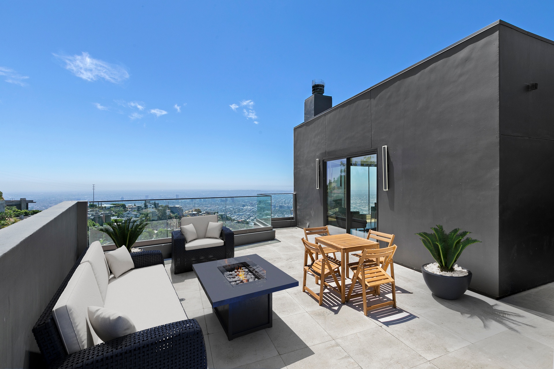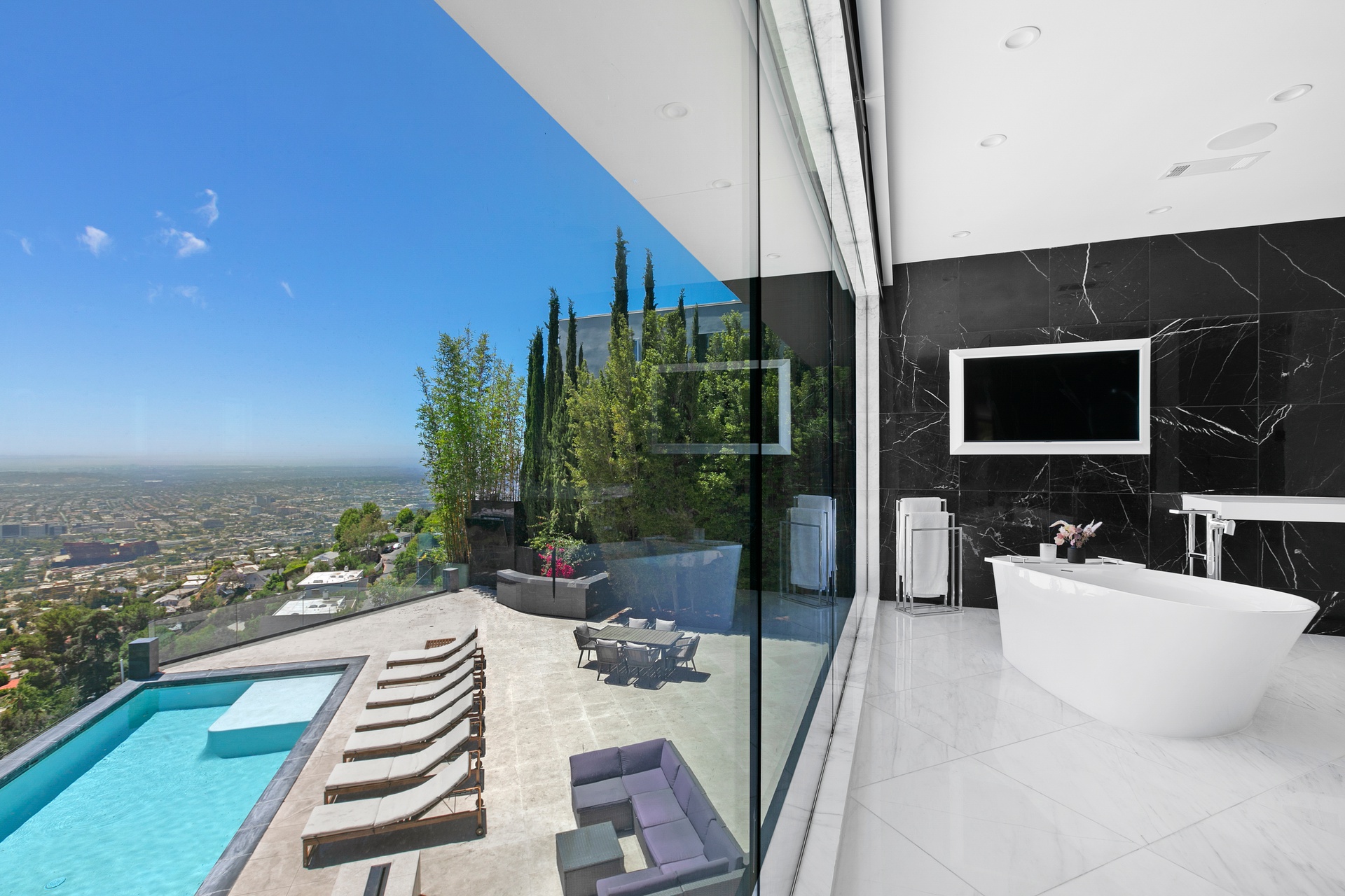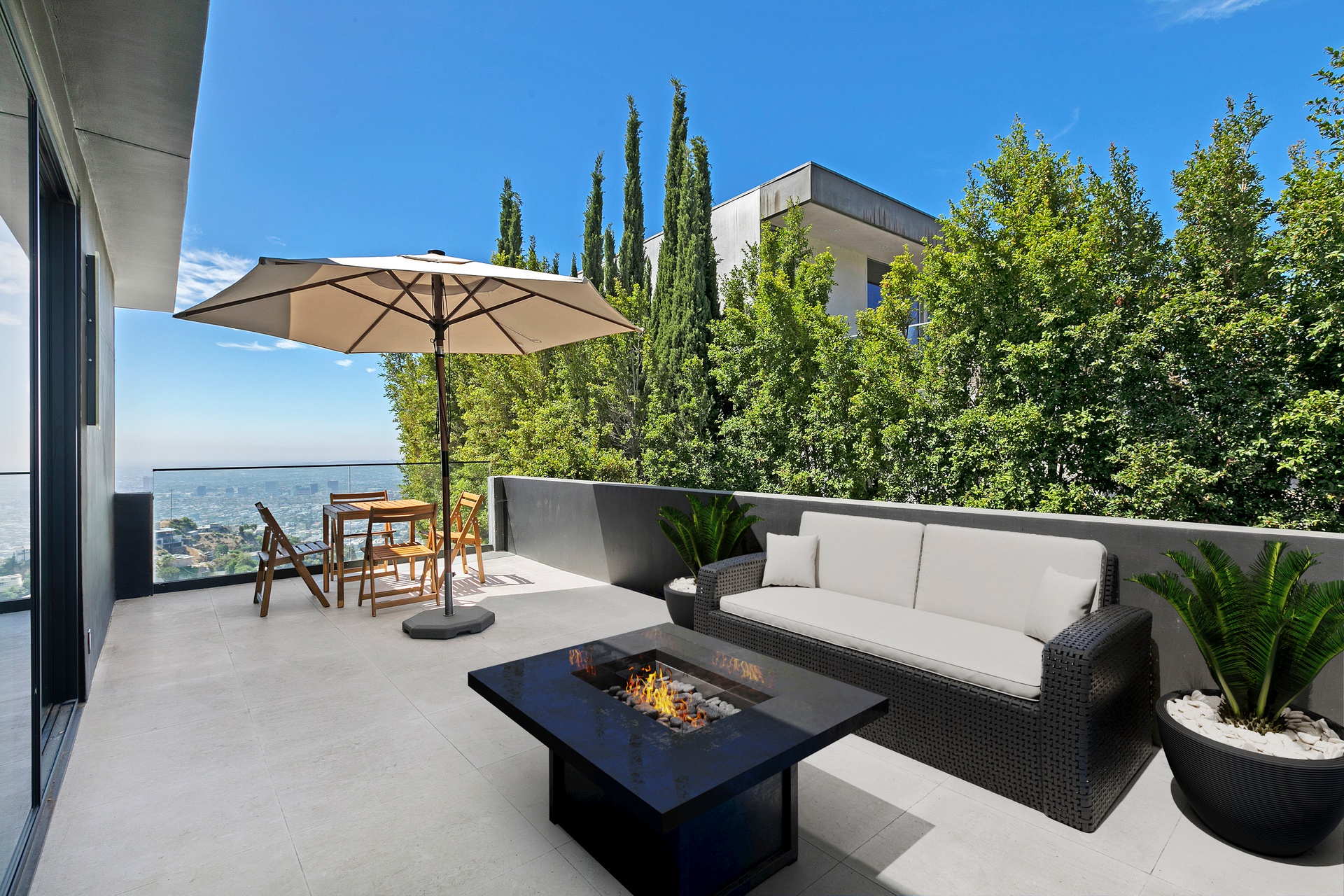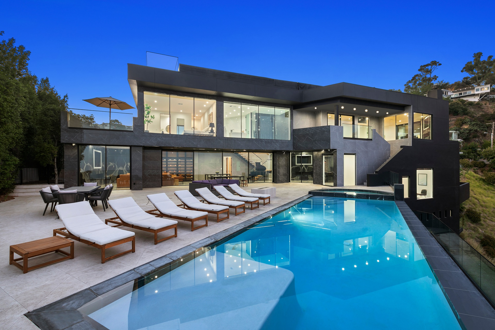 Impeccable Sunset Strip modern with unobstructed views minutes from storied LA nightlife and tucked away on a four home private drive directly off of Sunset Plaza. Enter to a grand main level with sliding walls of glass and a family room with wall length fireplace and a glass wine cabinet. Fully remodeled from the ground up with imported stone, custom appliances and fixtures, this is an entertainer's paradise. Four en suite bedrooms with high ceilings, five bathrooms, a chef's kitchen, a home theater and so much more. Ascend the spiral staircase to the 1000 squarefoot rooftop deck with a luxurious outdoor kitchen and take in the lights of LA. A sprawling outdoor area anchors this residence complete with an oversized infinity pool and spa as well as a wet bar and outdoor TV all backdropped by jetliner views stretching from downtown LA to Catalina Island.