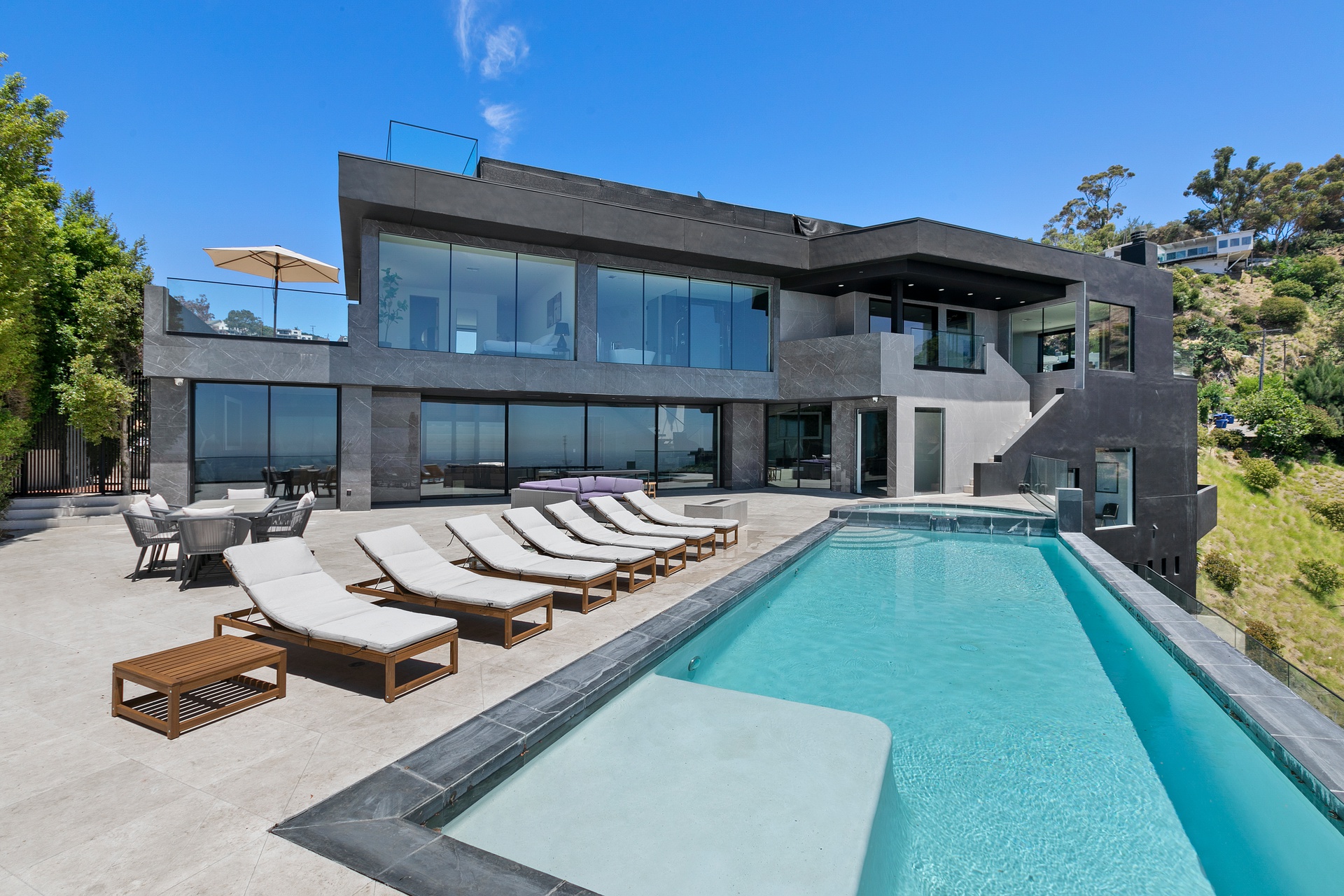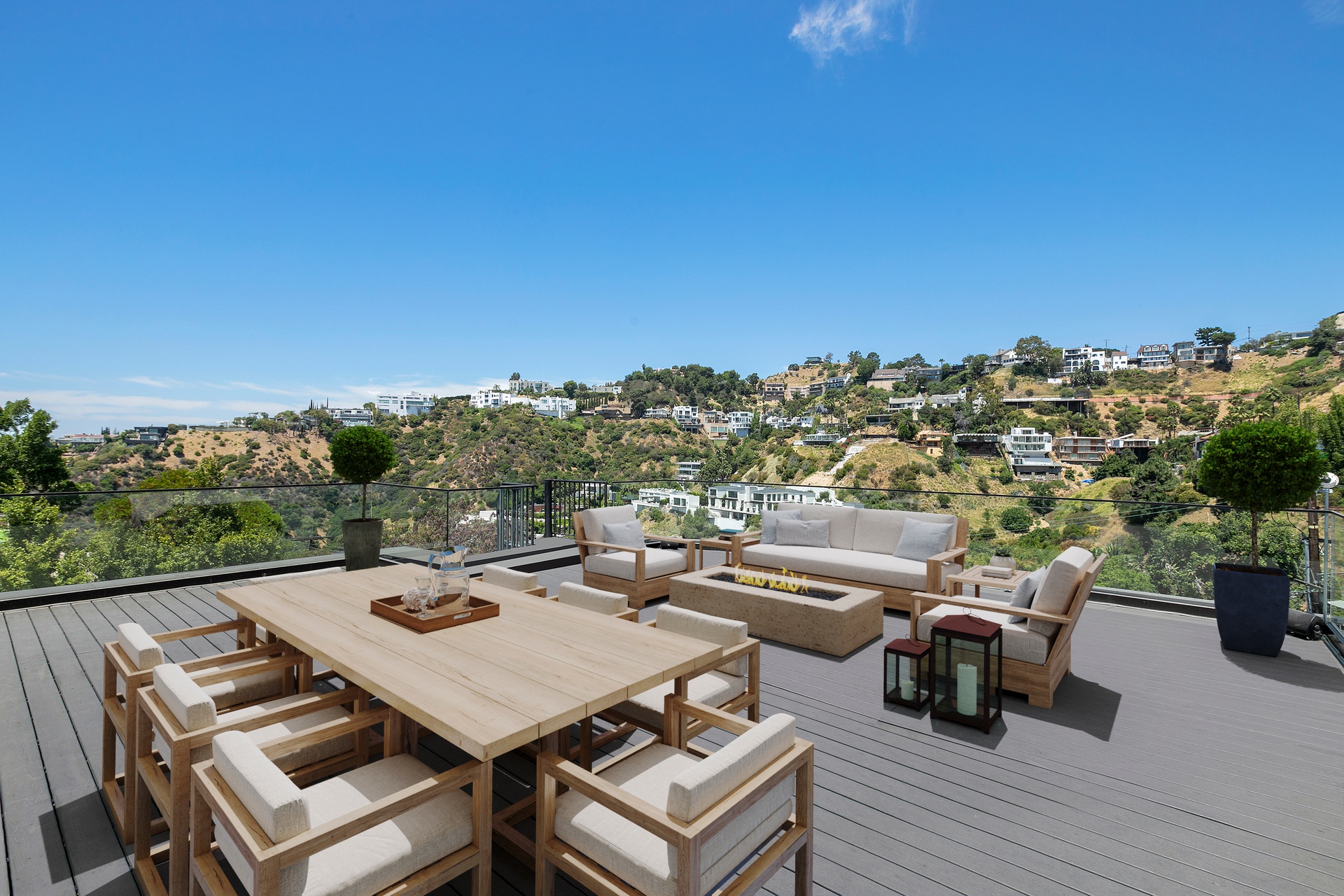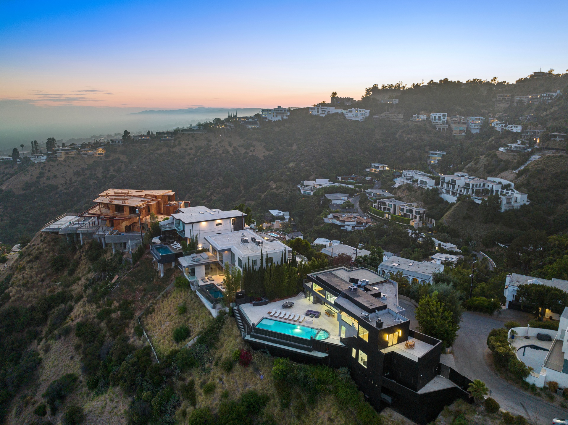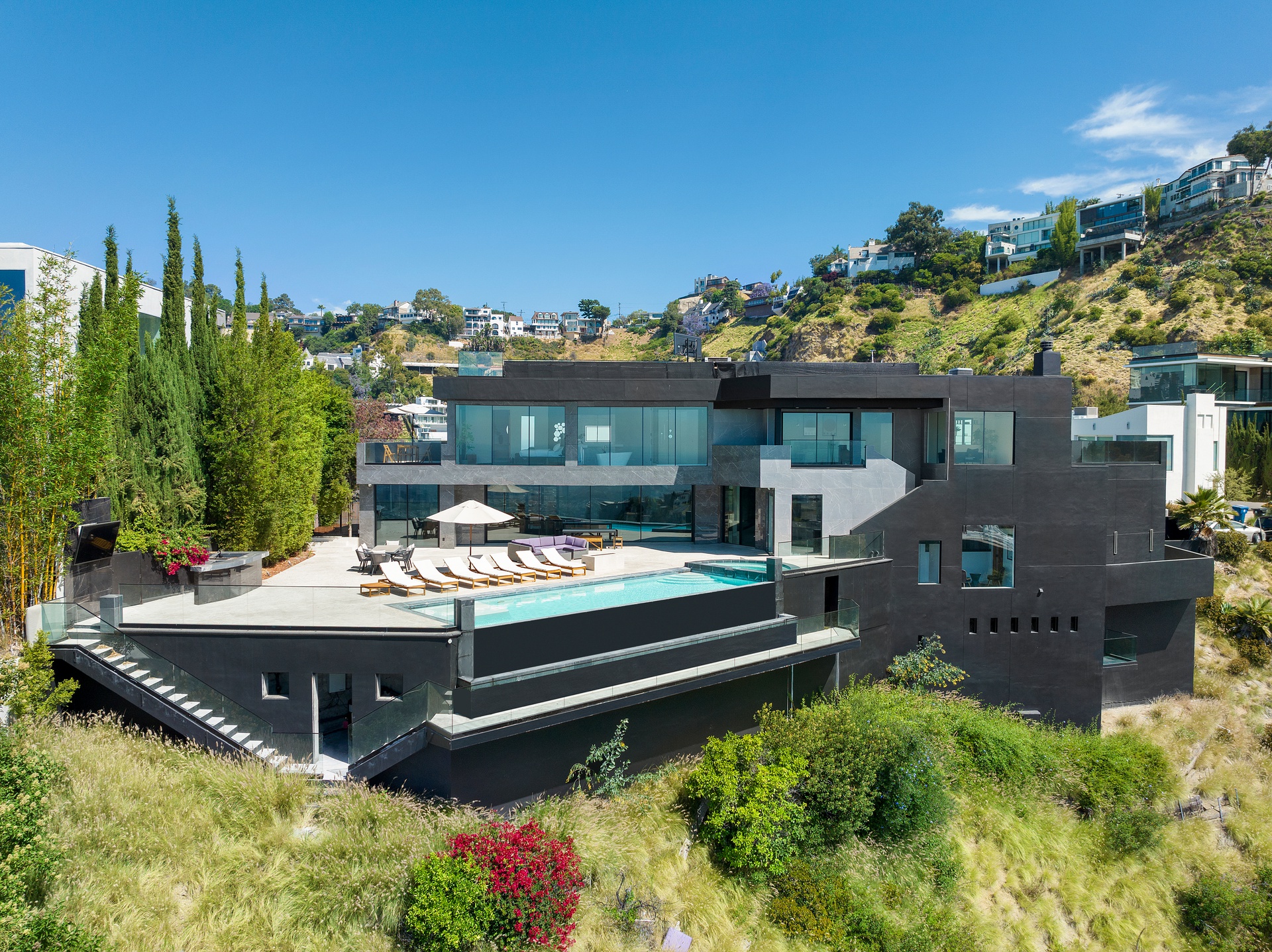 Impeccable Sunset Strip modern with unobstructed views minutes from storied LA nightlife and tucked away on a four home private drive directly off of Sunset Plaza. Enter to a grand main level with sliding walls of glass and a family room with wall length fireplace and a glass wine cabinet. Fully remodeled from the ground up with imported stone, custom appliances and fixtures, this is an entertainer's paradise. Four en suite bedrooms with high ceilings, five bathrooms, a chef's kitchen, a home theater and so much more. Ascend the spiral staircase to the 1000 squarefoot rooftop deck with a luxurious outdoor kitchen and take in the lights of LA. A sprawling outdoor area anchors this residence complete with an oversized infinity pool and spa as well as a wet bar and outdoor TV all backdropped by jetliner views stretching from downtown LA to Catalina Island.