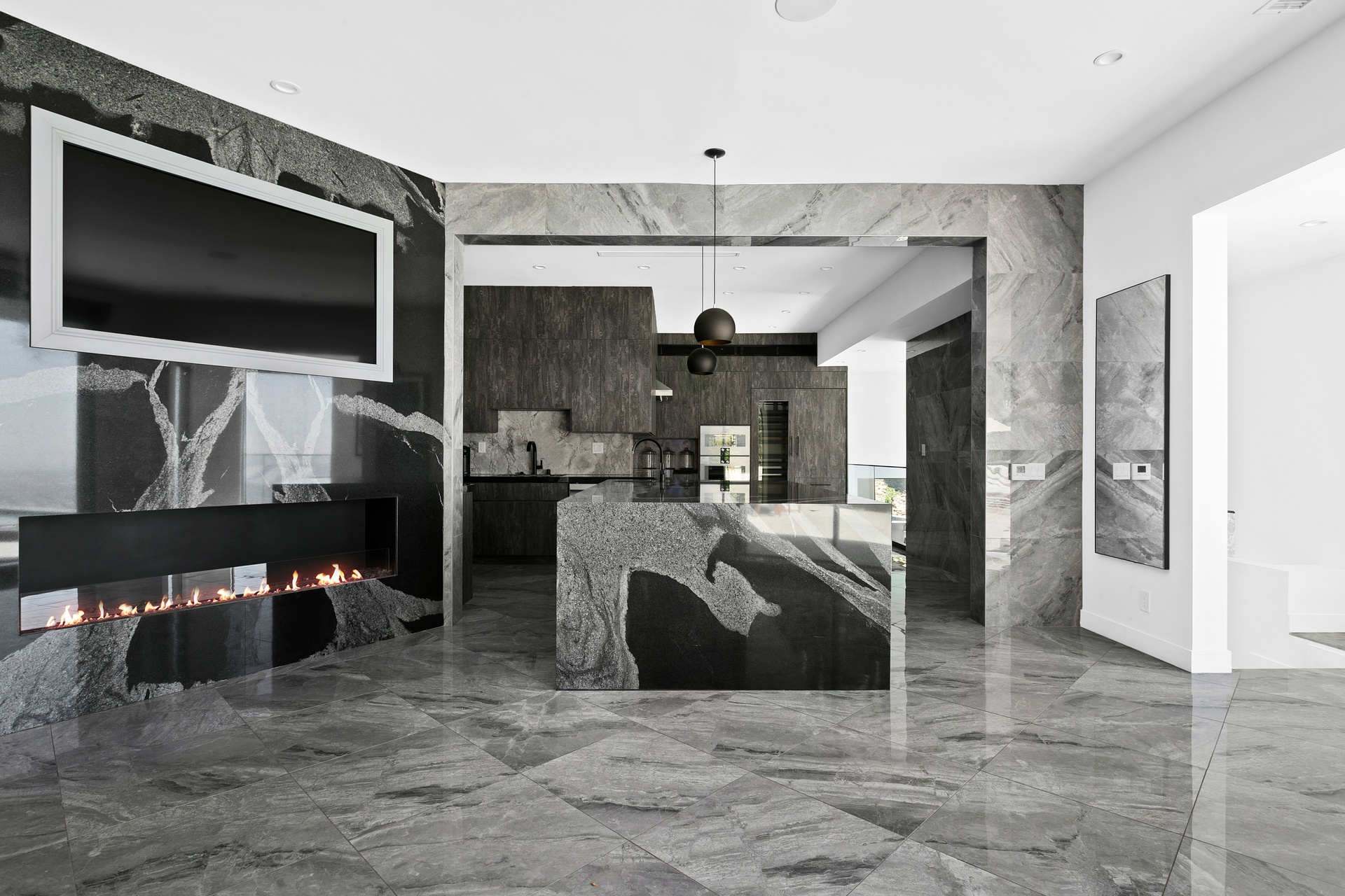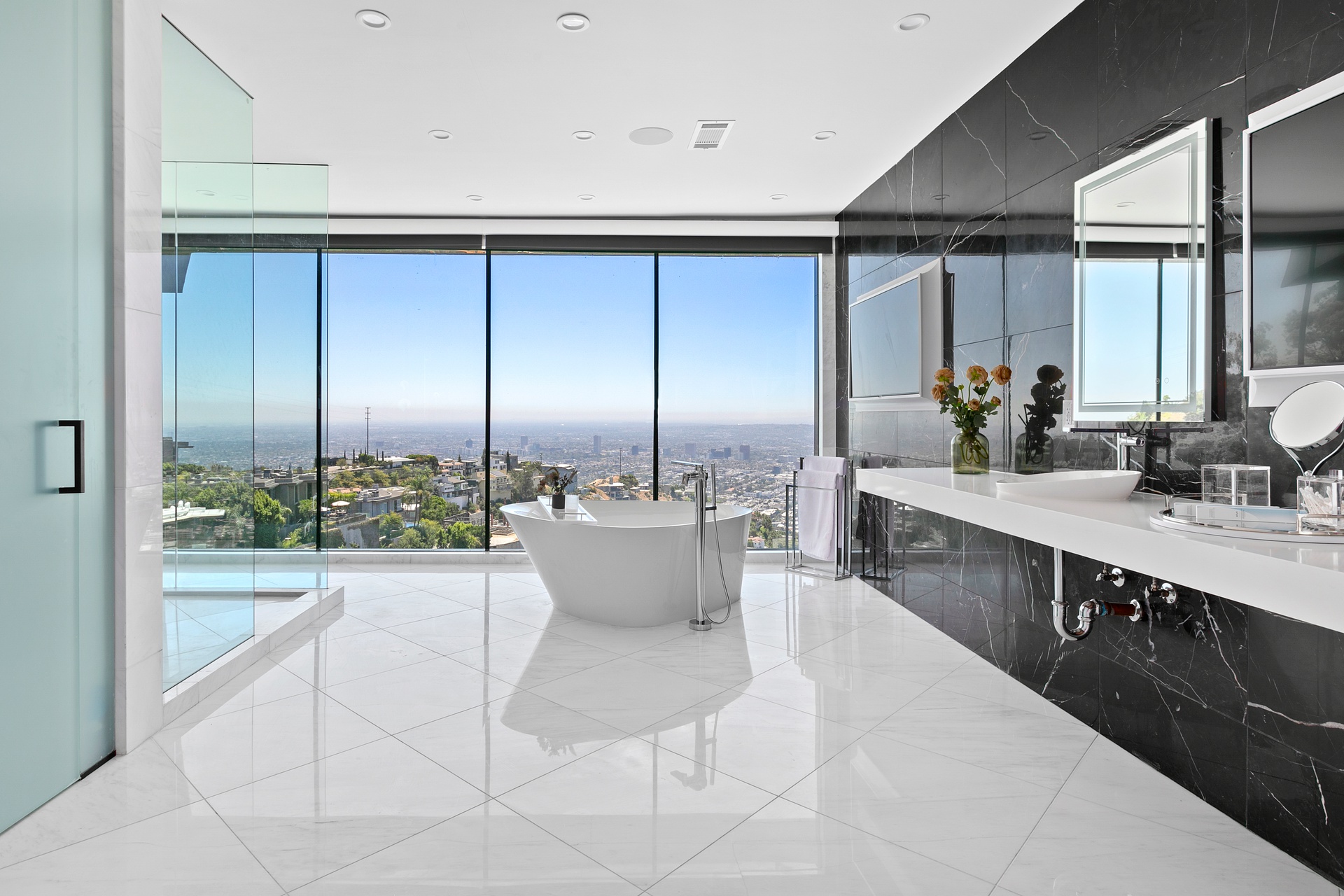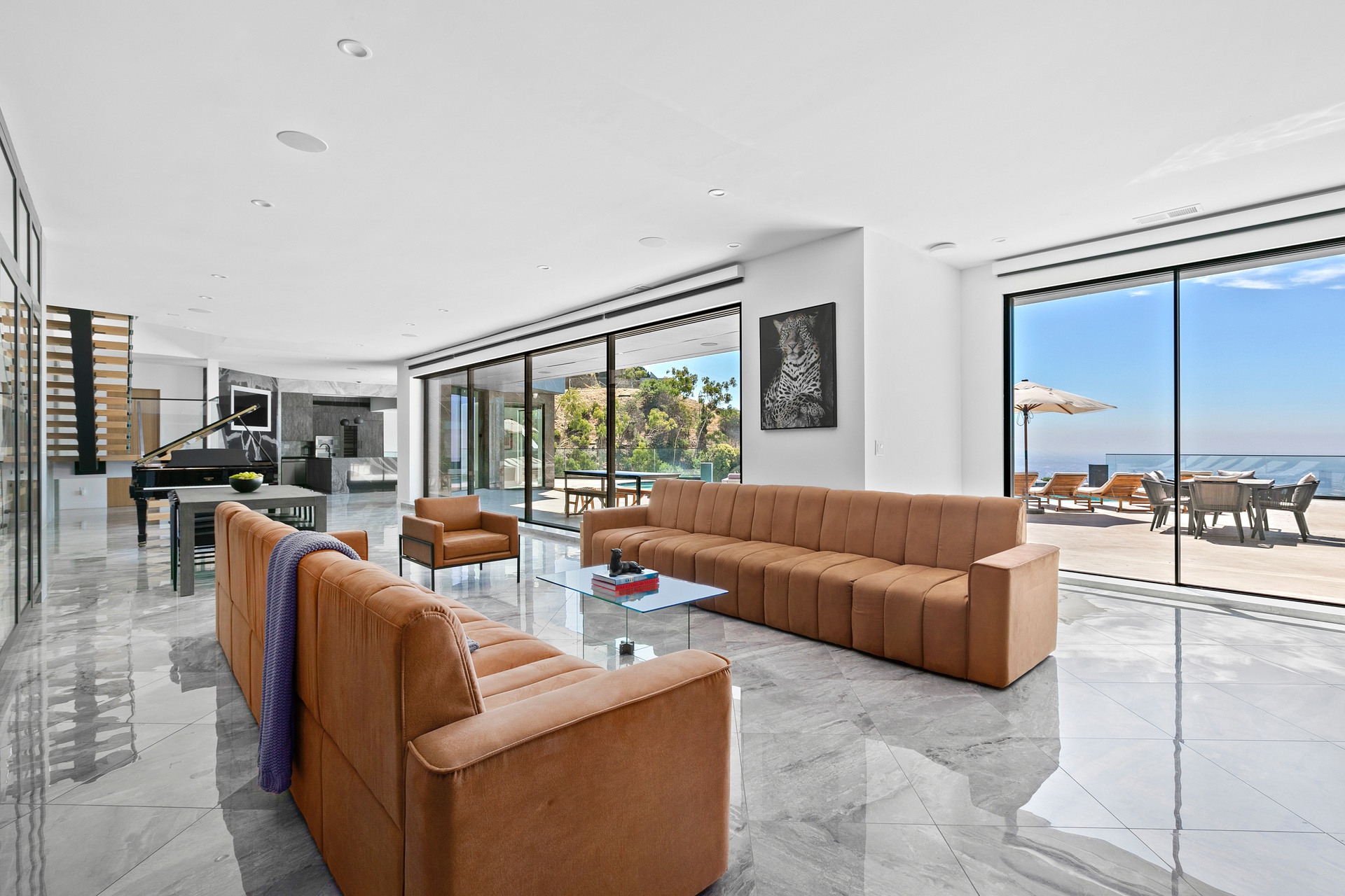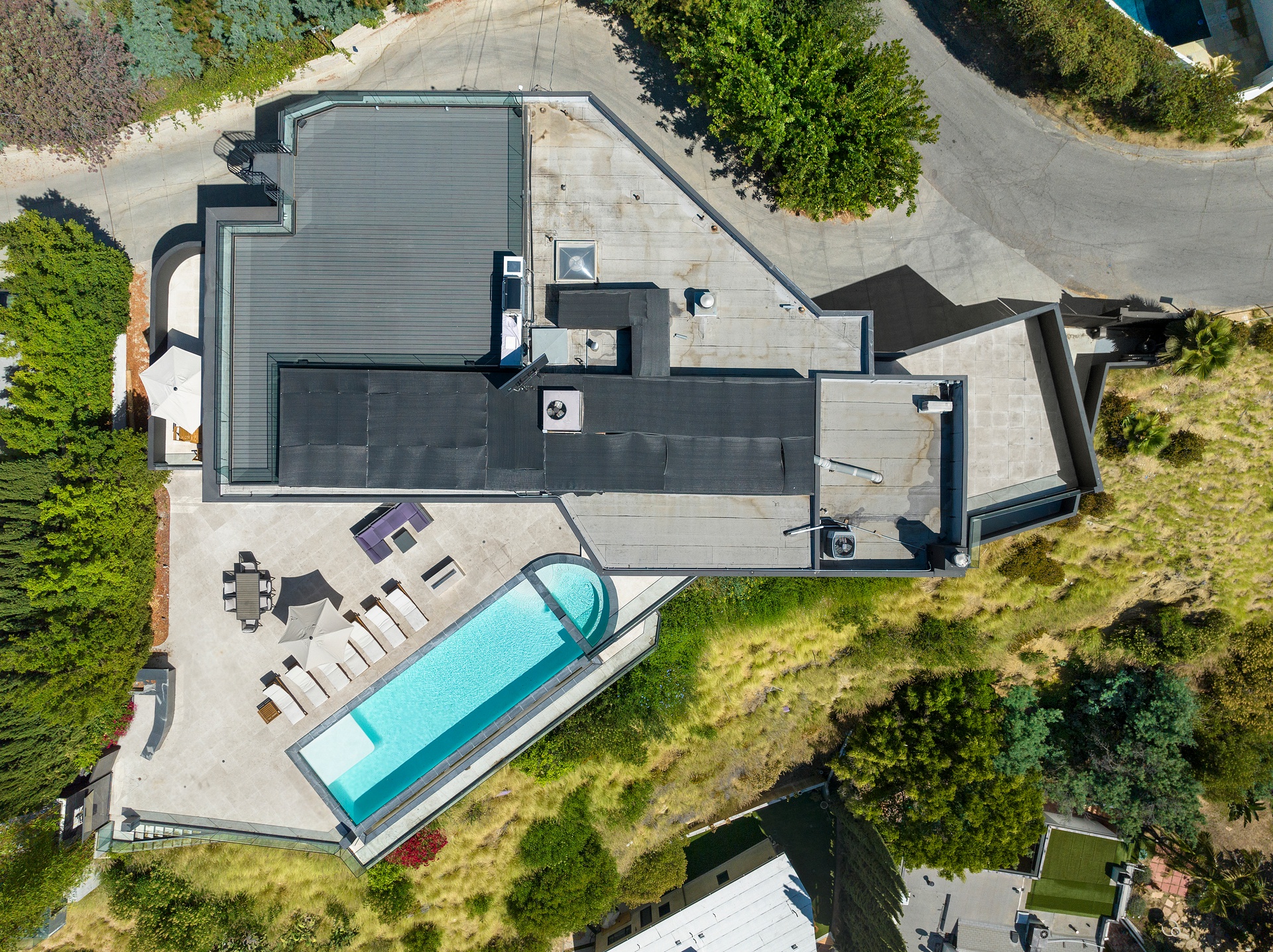 Impeccable Sunset Strip modern with unobstructed views minutes from storied LA nightlife and tucked away on a four home private drive directly off of Sunset Plaza. Enter to a grand main level with sliding walls of glass and a family room with wall length fireplace and a glass wine cabinet. Fully remodeled from the ground up with imported stone, custom appliances and fixtures, this is an entertainer's paradise. Four en suite bedrooms with high ceilings, five bathrooms, a chef's kitchen, a home theater and so much more. Ascend the spiral staircase to the 1000 squarefoot rooftop deck with a luxurious outdoor kitchen and take in the lights of LA. A sprawling outdoor area anchors this residence complete with an oversized infinity pool and spa as well as a wet bar and outdoor TV all backdropped by jetliner views stretching from downtown LA to Catalina Island.