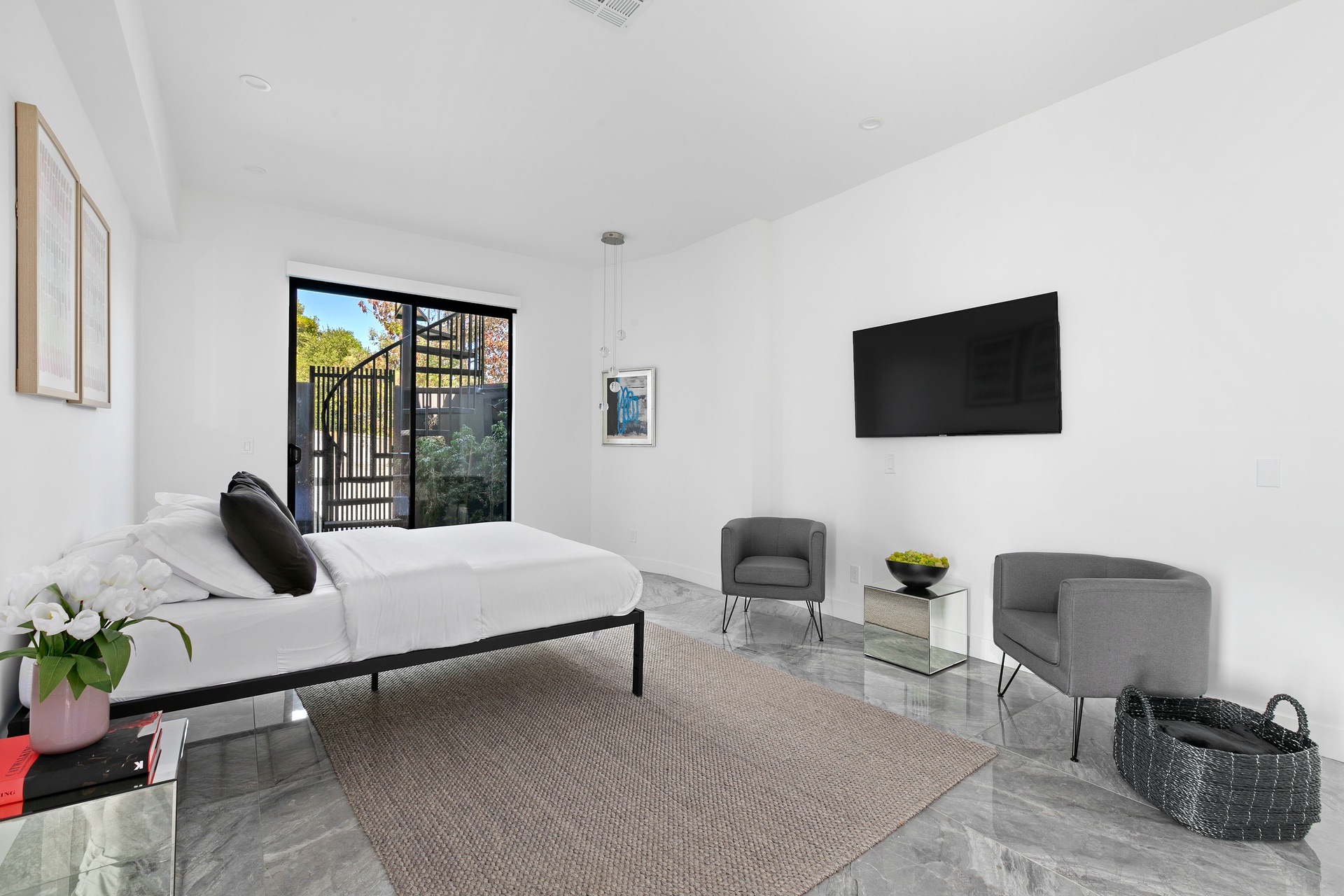 Welcome to 112 South Valley, a newly constructed, modern masterpiece that redefines luxury living. Perfectly positioned on one of Burbanks most coveted cul-de-sacs, this home offers the best of both worlds: the peace of mind that comes with Burbanks exceptional city services, outstanding public safety, and top-rated schools, paired with the prestige, warmth, and community charm of Toluca Lake. The designer thoughtfully curated every detail of this 6, 043 square-foot residence to showcase architectural brilliance and deliver the soul-stirring promise of a life well-lived. From the moment you arrive, the dramatic, solid white oak pivot front door opens to a world of refined elegance. Soaring ceilings and walls of Marvin windows flood the space with natural light, while rich textures, such as Marmorino Italian plaster and Portolan limewash, create an ambiance of sophistication. Whether youre gathering in the expansive living room, relaxing in the family room, or entertaining in the chefs kitchen adorned with custom Shinnoki walnut cabinetry, oversized double faucet sink, Thermador appliances, and a sleek butlers pantry, this home is an experience of flow, function, and flawless beauty. Five en-suite bedrooms, each a private retreat, offer comfort and serenity. The primary suite, situated above the expansive landscaped grounds, features a spa-inspired bath, a custom walnut walk-in closet, and a balcony where you can greet the day with sunshine and the soothing sounds of the morning air. Downstairs, a state-of-the-art theater, rec room, bonus space, and a sleek bar come together to create the ultimate setting for fun and entertainment, whether youre hosting game night, enjoying a movie with family, or simply unwinding with friends in style. Step outside and be transported. The backyard is a sanctuary of its own, featuring a black-bottom saltwater Pebble Tek pool with a Baja shelf and spa, two innovative motorized patio systems, an Ipe wood fire pit bench, and a complete outdoor bath/mudroom. Entertain effortlessly or unwind in total privacy beneath the stars. The home offers the latest in technology and convenience, featuring Control4 smart home automation, a quad-zone Carrier climate control system, an integrated sound system, custom lighting, and sleek Samsung washer/dryers. Additional amenities include fully underground electrical, solar panels for enhanced energy efficiency, and an electric car charger in the spacious garage. Every element from fluted limestone accents to custom linear drain installations reflects the highest standards of design and craftsmanship. However, the true luxury of 112 South Valley lies in the lifestyle it offers. Here, neighbors greet each other by name. Stroll into Toluca Village for your morning coffee, dine al fresco at your favorite local spot, or attend a community event where everyone feels like family. Youre minutes from top-rated schools, major studios, the Lakeside Golf Club, and iconic LA landmarks like Griffith Park and the Hollywood Bowl. 112 South Valley is more than a home, its your place in a vibrant, welcoming community with a rare opportunity to live in modern splendor, in a neighborhood where connection and character matter.