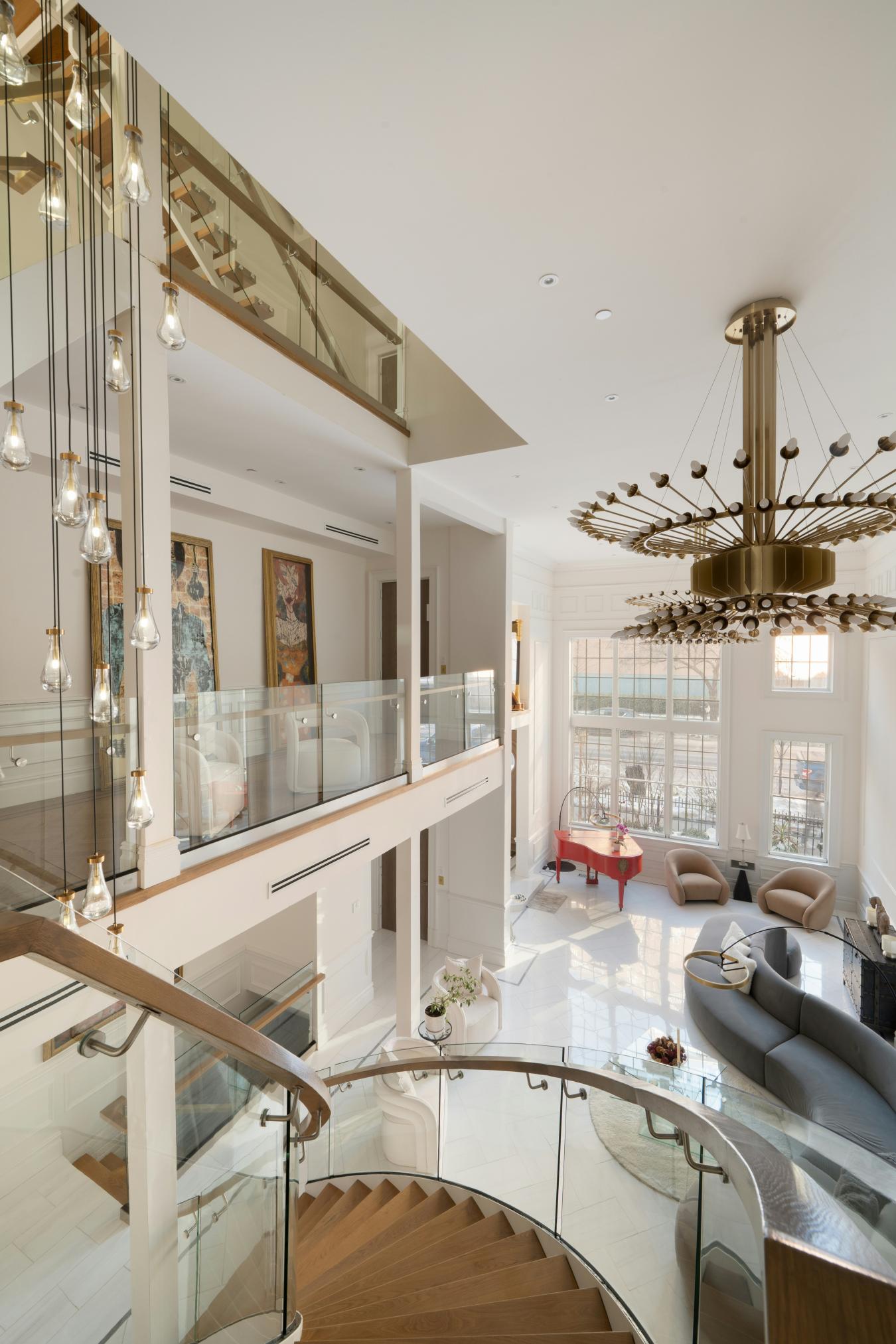 This 25-foot-wide elevator townhouse with 20 foot ceilings stands as a rare offering: a 9,400-square-foot architectural statement masterfully reconstructed over three years to deliver uncompromising scale, privacy, and sophistication. With commercial and residential zoning, this property is a perfect opportunity for commercial, professional or residential use. Originally built in 1819 and now spanning seven floors, the residence has been meticulously restored and expanded with a reverence for its provenance and an eye toward contemporary living. The result seamlessly integrates heritage architecture with modern engineering and bespoke design. Throughout the residence: &bull; Custom elevator servicing all floors &bull; Original fireplace mantels thoughtfully preserved &bull; Imported marble and stonework &bull; California Faucets fixtures &bull; Extensive bespoke millwork &bull; Advanced mechanical systems discreetly integrated A dramatic entry introduces over 20-foot ceilings and an extraordinary sculptural staircase - a sweeping, curved focal point that anchors the home with quiet grandeur. Custom lighting installations and artisan chandeliers create a gallery-like atmosphere throughout, enhancing the volume and architectural symmetry of each floor. Entertaining unfolds effortlessly across expansive formal and informal spaces. The chefs kitchen is both functional and sculptural, anchored by a hand-forged walnut island and appointed with Gaggenau and Thermador appliances. Custom millwork and imported stone elevate the space to a level befitting a private culinary atelier. The penthouse entertaining level offers a bespoke bar and a dramatic great room designed for curated gatherings, private events, or intimate evenings overlooking the city skyline. The Primary Floor The entire third floor is devoted to the primary suite - an extraordinary private retreat. The Calacatta Gold marble bath evokes a five-star European spa, complete with soaking tub and bespoke fittings. A private terrace extends the suite outdoors, offering a tranquil sanctuary above the city. Rooftop Atrium & Terraces At the crown of the home, a luminous glass atrium opens to dual landscaped roof terraces with sweeping skyline views. This rare indoor-outdoor pavilion offers a level of privacy and perspective seldom found in Manhattan - ideal for sunrise reflections or evening receptions under the city lights. Lower Level Flexibility The full-length lower level, with ceilings exceeding nine feet, functions as a private wellness level, screening room, executive office suite, or independent guest quarters. Its scale and finish rival that of a luxury apartment. This is a property for the buyer who values scale, craftsmanship, privacy, and architectural integrity - all in one of Manhattans most culturally vibrant and enduring neighborhoods. A true Chelsea legacy residence.