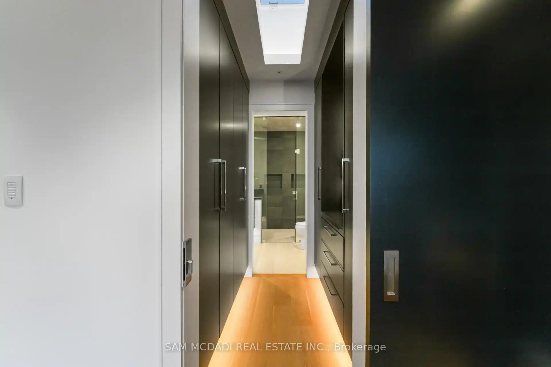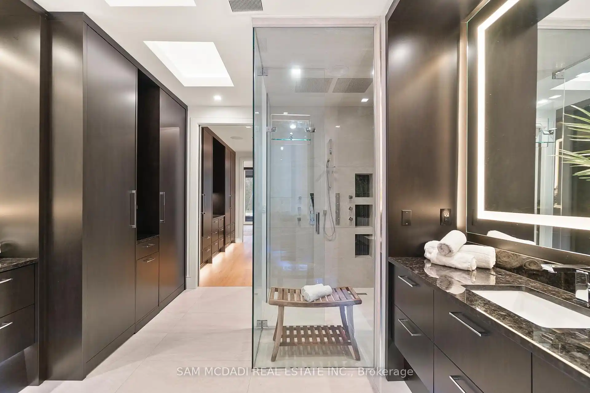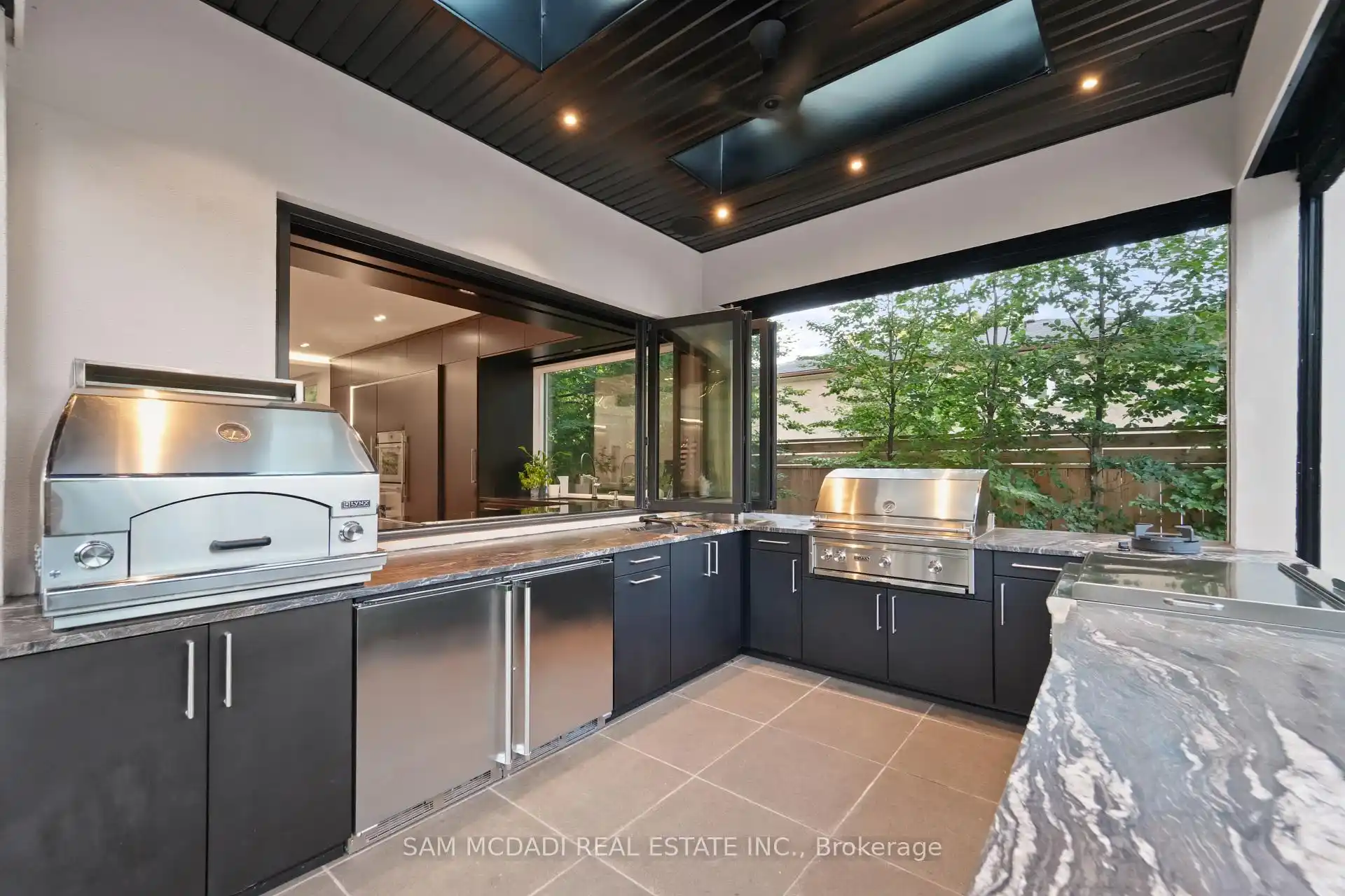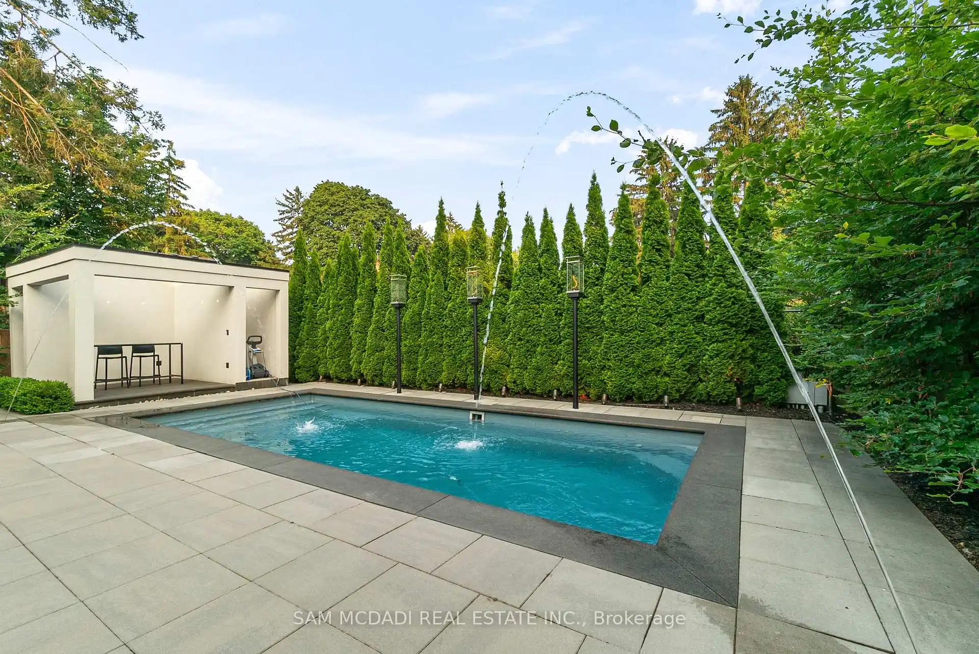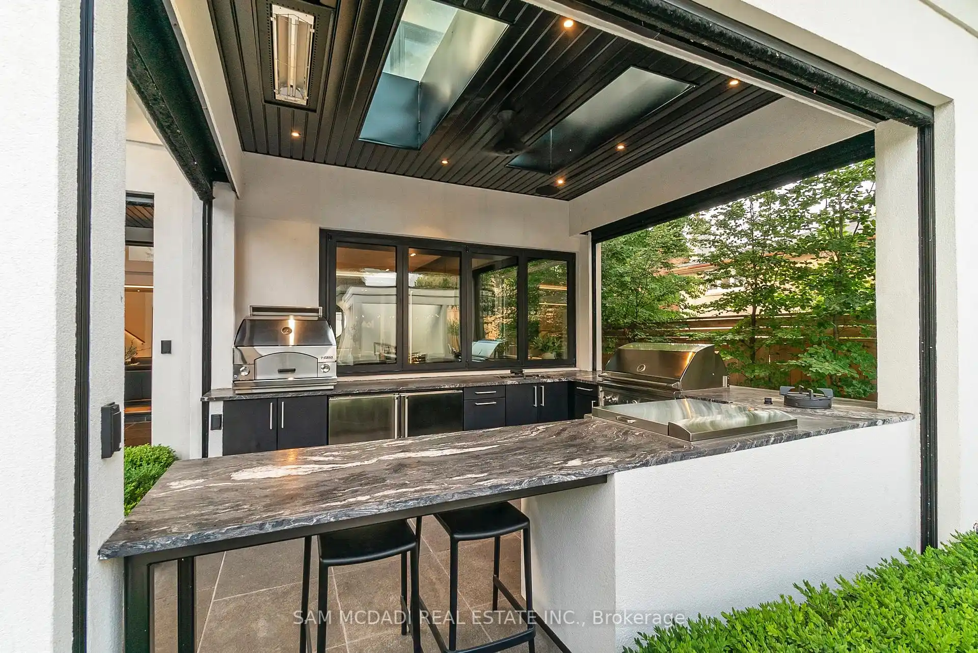 A rare offering, this fully gated, custom-built home blends timeless design with sophisticated modern living, offering over 7,000 square feet of luxurious, well-thought-out space. Designed by Hicks Design, the home showcases exceptional craftsmanship, sleek architectural lines, high-end finishes & natural light throughout, with thoughtfully placed skylights and expansive windows. The grand foyer makes a memorable first impression with soaring ceilings and a dramatic two-storey mirror-finish stainless steel waterfall. At the heart of the home is a well-designed, open-concept floor plan that seamlessly connects the kitchen, living, & dining areas. The custom Cameo chefs kitchen strikes the perfect balance of form and function, showcasing a marble waterfall island, Thermador appliances, custom cabinetry & effortless access to the private backyard retreat through automated Lift and Slide doors. The NanaWall opens to seamlessly connect the indoor and outdoor. The main floor primary suite is a sanctuary, complete with a spacious dressing room, laundry, double vanities, steam shower, and smart circadian rhythm lighting, as well as direct access to the hot tub and backyard. The second floor offers a second primary suite, and two additional bedrooms, each with their own ensuite and a conveniently located secondary laundry area. It doesn't stop there! The basement is every entertainer's dream with a home theatre, gym, spa with steam and sauna, large recreation space, sleek wet bar, and nanny suite. Enjoy resort-style living outdoors with a saltwater pool, hot tub, outdoor kitchen, and a three season covered porch with infrared heaters and retractable screens for year-round enjoyment. Additional highlights include an elevator, wide doorways, radiant heated floors, intelligent glass with UV/security film, Control4 technology, and integrated sound system. A rare blend of comfort, design, and luxury, expertly curated for modern living & refined entertaining. Truly one-of-a-kind!