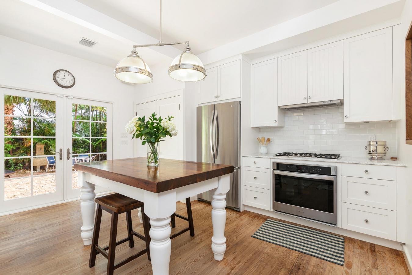 Welcome to 1503 Johnson St, a luxurious Key West retreat now offered for salea turnkey residence that truly embodies style, comfort, and effortless island living. This elegant three-bedroom, three-bathroom furnished home is situated on a fully fenced corner lot, offering exceptional privacy while keeping you close to everything the island has to offer. Located just four blocks from the Atlantic Ocean and moments from the vibrant energy of Duval Street, it provides the perfect blend of tranquility and convenience. Inside, an inviting open-concept living space features beautiful bone tile flooring and soaring cathedral ceilings that fill the home with light and openness. Designer upgradesincluding new ceiling fans, beaded chandeliers, and soft LED lightingenhance the warm, sophisticated ambiance. French doors in the primary suite, guest bedrooms, living room, and dining area create seamless indoor-outdoor flow and allow refreshing tropical breezes to circulate throughout the home. The well-designed split-floor plan places the primary suite on one side, creating a private retreat complete with a luxurious en-suite bath. Two guest bedrooms are located on the opposite side, accompanied by a stylish bath with a unique telescope skylight, plus an additional full bath with a tub in the laundry room. All bedrooms feature custom California Closets for elevated storage. A covered outdoor dining area extends your living and entertaining space. The thoughtfully updated U-shaped kitchen boasts quartz countertops and backsplash, Mother of pearl brass kitchen cabinet hardware, a deep stainless-steel sink, under-cabinet lighting, and brand-new Caf appliances, making it ideal for both everyday living and entertaining. Outside, enjoy a spacious concrete wrap-around patio with shaded dining areas and a heated/chilled pool featuring a tranquil water featureyour own private oasis. Modern comforts include a whole-house generator, remote-controlled blinds, new roof.