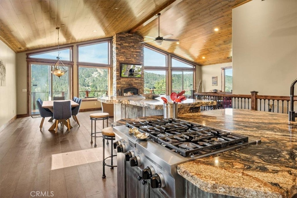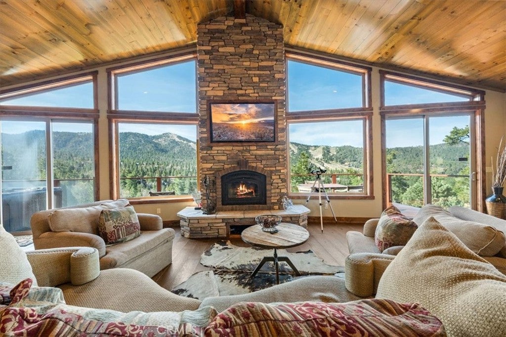 SPECTACULAR SKI SLOPE VIEWS!!!!!! Experience breathtaking, up-close ski slope views that truly make you feel like you can reach out and touch the runs. Enjoy panoramic views from multiple areas throughout the home, filling the space with natural light while preserving that warm mountain cabin feel. Convenient level parking and easy entry welcome you into a spacious open floor plan featuring soaring vaulted T&G wood ceilings, rich wood accents, and expansive windows designed to showcase the incredible scenery. The chefs kitchen is a standout, complete with high-end custom soft-close cabinetry, a massive center island, and plenty of space to cook and entertainall while taking in the stunning views. On the main level, youll find: Expansive decking perfect for soaking in the scenery, an impressive floor-to-ceiling rock fireplace, a primary bedroom suite, a powder room, a functional mudroom with abundant storage. The lower level is built for entertainment and comfort, featuring: A spacious game room with ski slope views and its own fireplace, a wet bar area with access to a view-filled lower deck, direct access to a large backyard, dedicated co-working space, an ensuite bedroom plus two additional bedrooms with a shared bath, a versatile storage room .This home truly has it allviews, space, and mountain charm. Dont miss this rare opportunity!