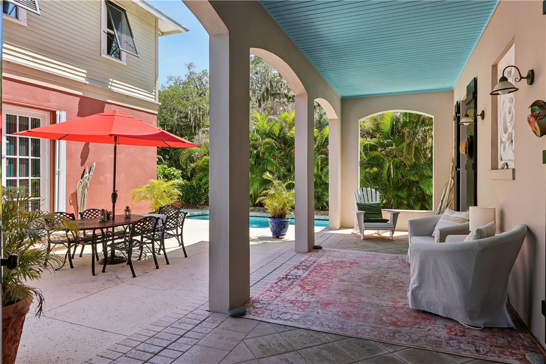 This Coastal inspired Colonial offers elegance, charm and size; designed by Architect Peter Moor with the Windsor aesthetic. High ceilings, wood floors, multiple in/outside living areas plus a 44 ft Primary Suite across the front 2nd story are truly beautiful and unique. Situated under the oaks on a quiet road next to the charming VB City Marina - perfect for boaters and families who treasure both land and water activities; walkable to the grade school, Museum, Theater, Ocean Drive shops & restaurants. With 4BD/3.5BA plus a studio over the garage there is space for family, leisure and work.