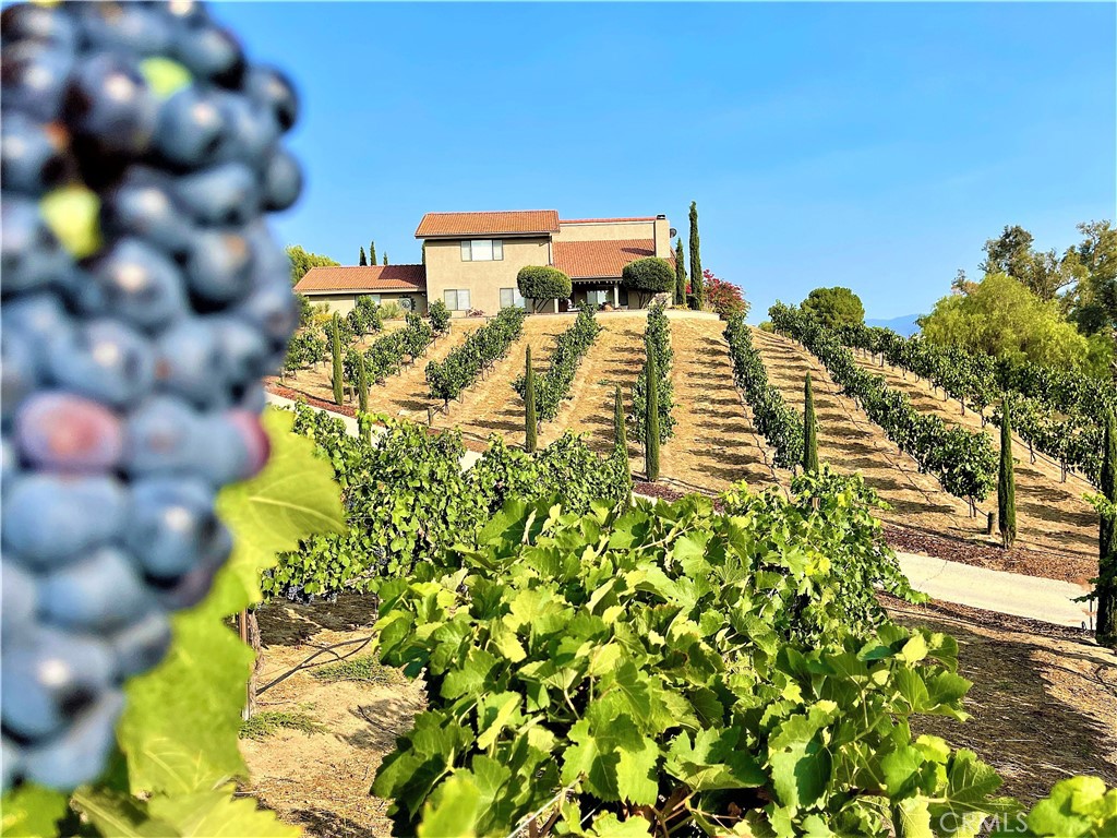 Experience the dream of living among the vineyards in Temecula Valley Wine Country! This stunning property offers everything you could want in a luxury estate, including a separate guest house/ADU and an active, income-producing vineyard.The main residence spans approximately 2,400 sq ft and features a thoughtfully designed two-story layout. Downstairs, you'll find two bedrooms and a full bathroom—perfect for guests or multigenerational living. Upstairs, the private primary suite includes a full bathroom, loft, and dedicated office space, all complemented by breathtaking vineyard and valley views.Soaring ceilings on the main level create an open, airy feel, enhancing the spacious living room and dining area. French doors lead to an expansive patio, seamlessly blending indoor and outdoor living.Step outside to your entertainer's paradise. The beautifully designed outdoor space includes a built-in BBQ with bar seating, a cozy fire pit conversation area, and multiple dining spaces illuminated by charming market lights. Tucked away for privacy, a spa retreat with a pub table provides the perfect setting to unwind under the stars while taking in sweeping vineyard views.The approximately 1,100 sq ft guest house offers incredible flexibility, featuring 3 bedrooms, 2 full bathrooms, its own covered patio, private yard, and a detached 2-car garage—ideal for extended family, guests, or as a fully self-sufficient, income-producing ADU.Between the main home and guest house, a resort-style oasis awaits. Enjoy a sparkling pool, covered pergola, gazebo, and even a private putting green—perfect for relaxing, entertaining, or enjoying time with family and friends.This property also features a producing vineyard with Syrah grapes currently harvested and sold to local wineries. Continue generating income, or take it a step further by creating your own private label and embracing the full wine country lifestyle.With endless possibilities and unmatched charm, this exceptional property is ready to become your dream home.