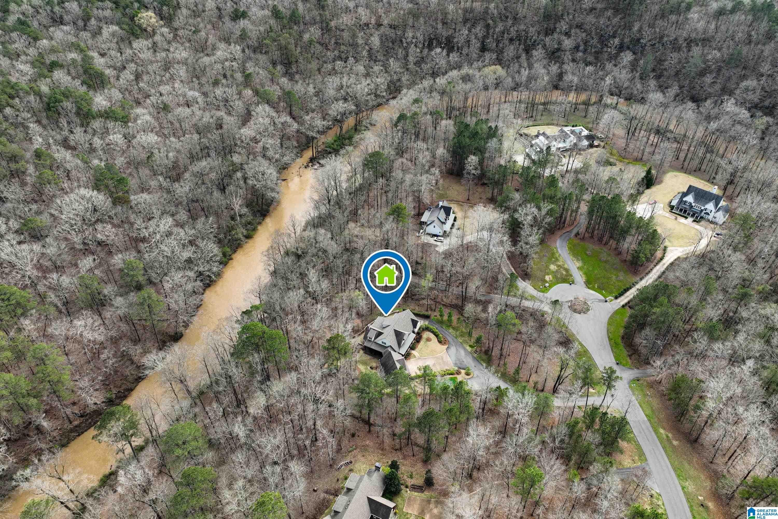 Rare estate on nearly two private acres with 312 of Cahaba River frontage on a gated cul-de-sac; exceptionally located and custom built home offers 6,000 sq ft & shows like new! The floor plan features 5 bedrooms, 4 full baths & 2 half baths. The main level includes a private primary suite, office, dining room, and oversized laundry/mudroom w/ dog wash. A chefs kitchen designed for entertaining opens to a large screened porch with sweeping river views. Upstairs offers 3 bedrooms & loft. The daylight terrace level includes a full in-law suite with kitchen, bedroom, spa bath, living room, office, laundry & safe room. Outdoor living features a grilling deck with built-ins, fenced backyard, firepit, custom chicken coop, and putting green w/ tee boxes & 60-yard practice area. Additional highlights: 4 XL garages, tons of parking, walk-in attic stubbed for expansion, spray foam insulation, wired security & sound. Luxury riverfront living w/ space, privacy & only 15 minutes to downtown!