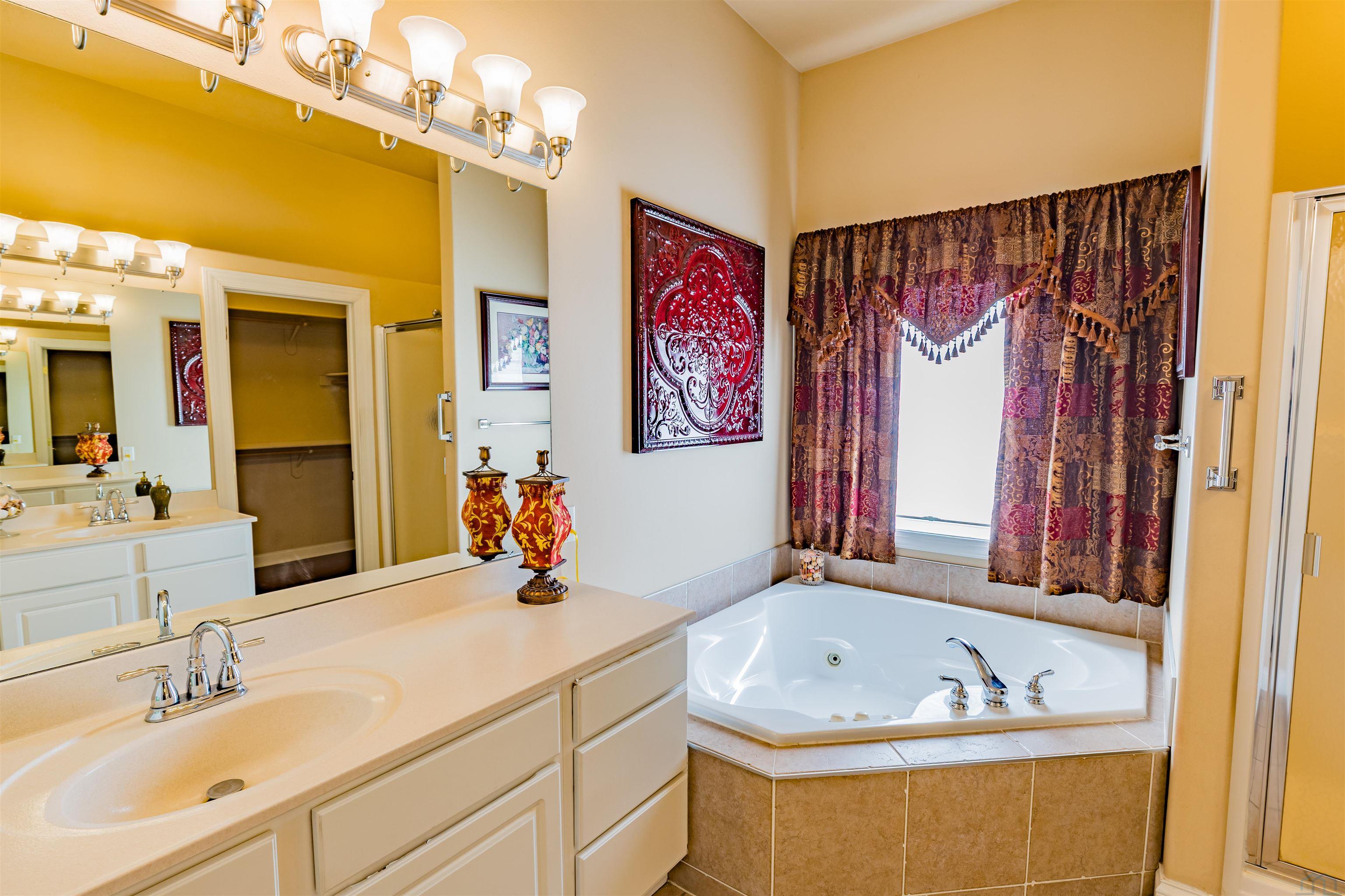 Welcome to this beautifully updated home in the desirable Miraggio subdivision of Patterson. Featuring an open-concept design, the spacious living and dining areas are anchored by a cozy gas fireplace and flow effortlessly into the heart of the home, the kitchen creating the perfect space for both everyday living and entertaining. The recently updated kitchen offers freshly painted white cabinetry, recessed lighting, warm granite countertops, and abundant storage, including an island with pull-out drawers. Equipped with a double oven, electric glass cooktop, and vented microwave, it is as functional as it is inviting. A charming breakfast nook and extended bar seating for 56 people provide additional space for casual dining and gatherings. All four bedrooms are generously sized with large closets, while the expansive primary suite comfortably accommodates a California King bed with room to spare. The upgraded walk-in closet offers enhanced storage, and the ensuite bath features a private shower and commode area separated from the vanity for added convenience. Additional highlights include new vinyl plank flooring throughout, an indoor laundry room with overhead cabinetry, and thoughtful updates that make this home truly move-in ready. Step outside to enjoy the freshly landscaped backyard with new grass, two side access gates, and a pergola that creates the perfect setting for outdoor relaxation or entertaining. This home offers the ideal blend of modern updates, spacious living, and a prime location ready for its next owner to enjoy.